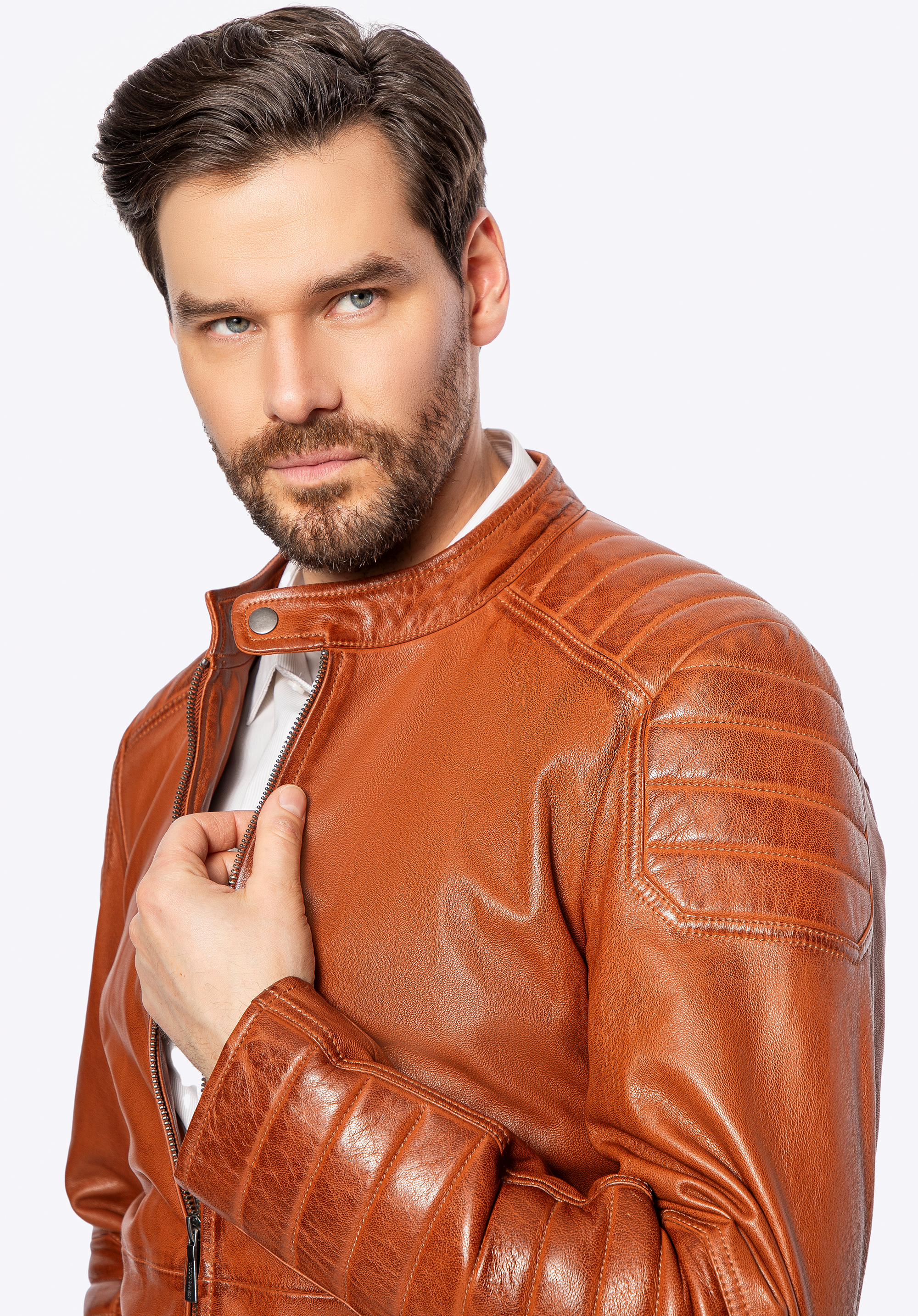 - Przeszycia na ramionach, rękawach i plecach: Nadają kurtce dynamicznego, męskiego charakteru i optycznie modelują sylwetkę.