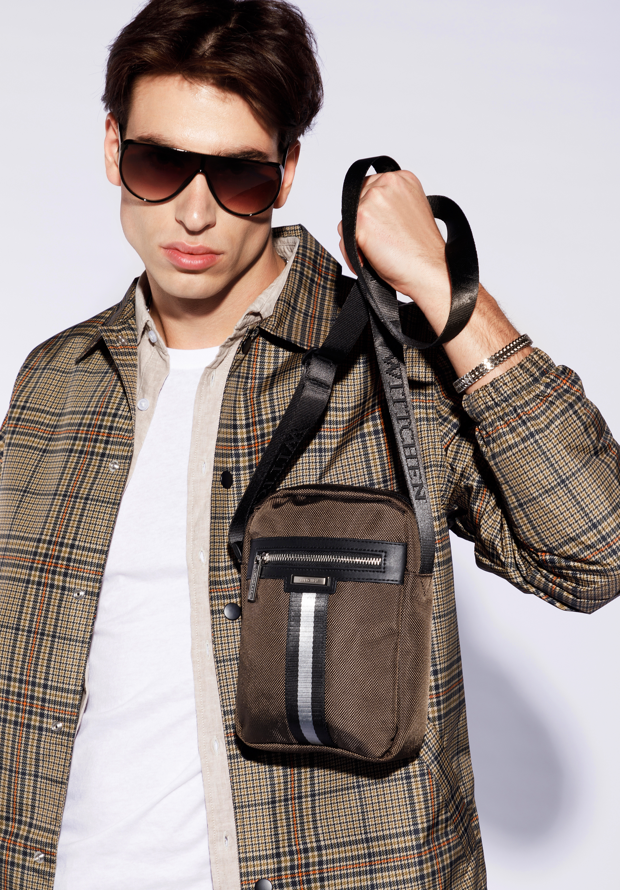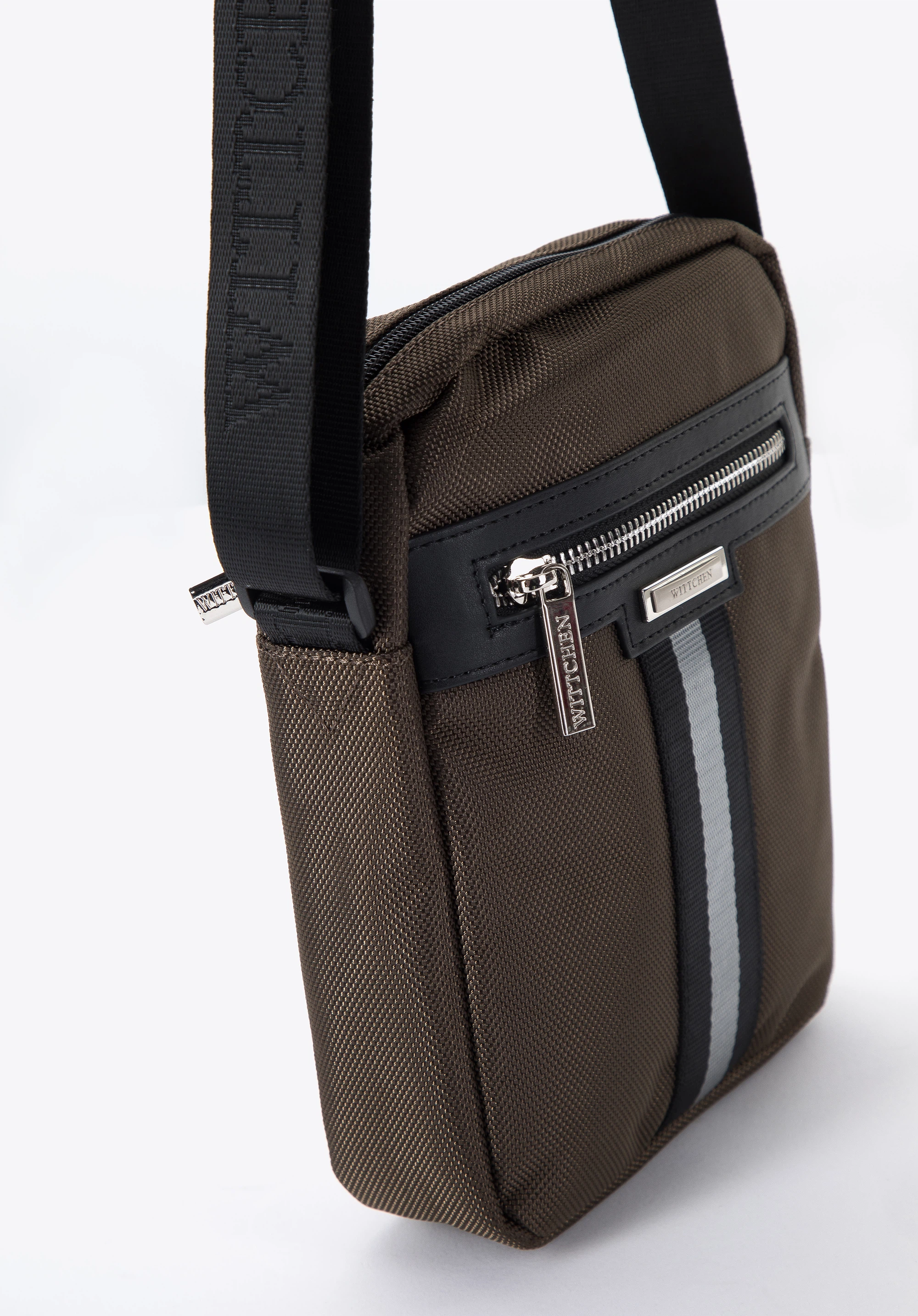 Męska listonoszka z tasiemką mała oliwkowa