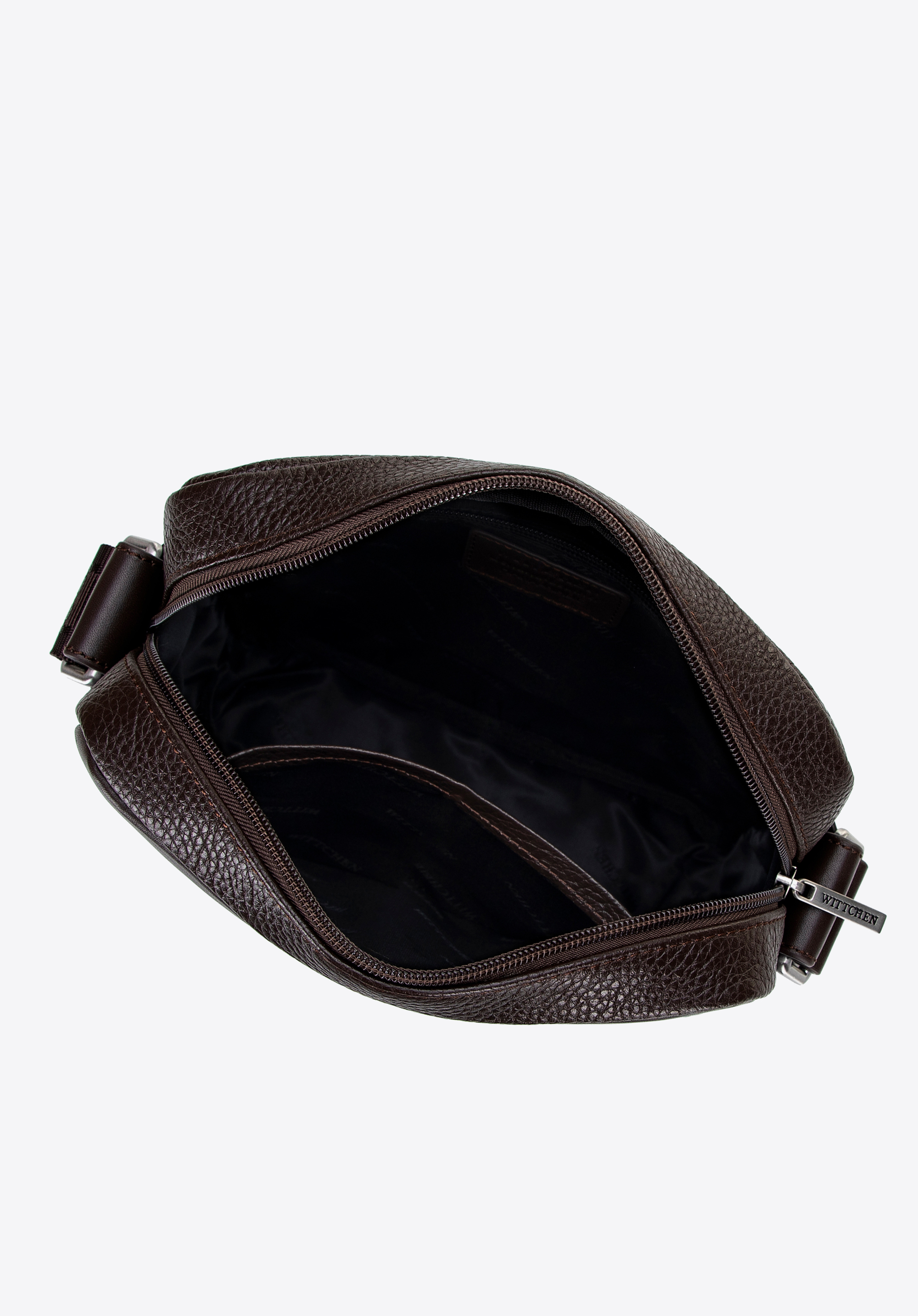 - Materiał: Wykonana ze skóry naturalnej o groszkowej i matowej fakturze, listonoszka wygląda elegancko i jest łatwa w pielęgnacji.