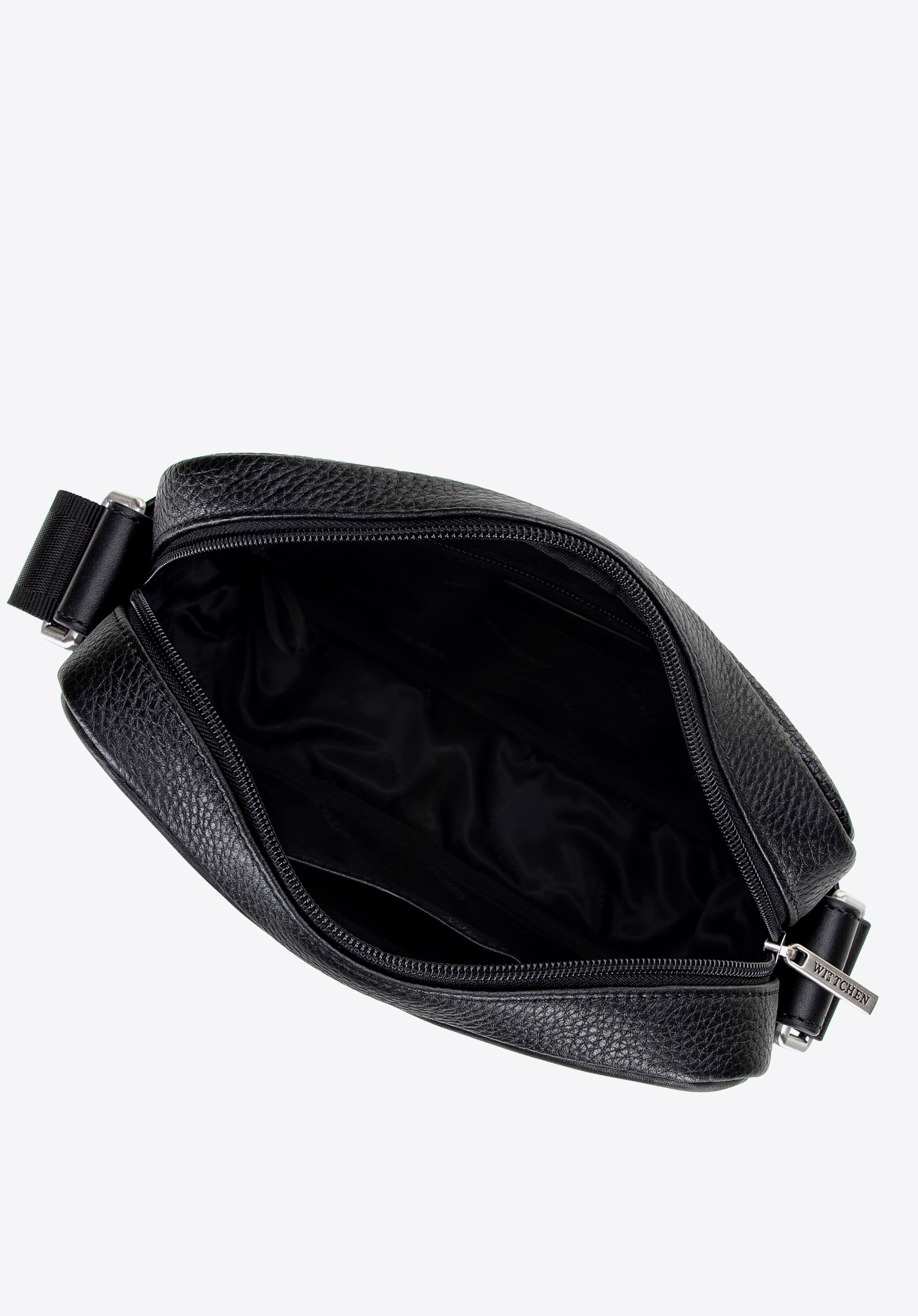 - Materiał: Wykonana ze skóry naturalnej o groszkowej i matowej fakturze, listonoszka wygląda elegancko i jest łatwa w pielęgnacji.