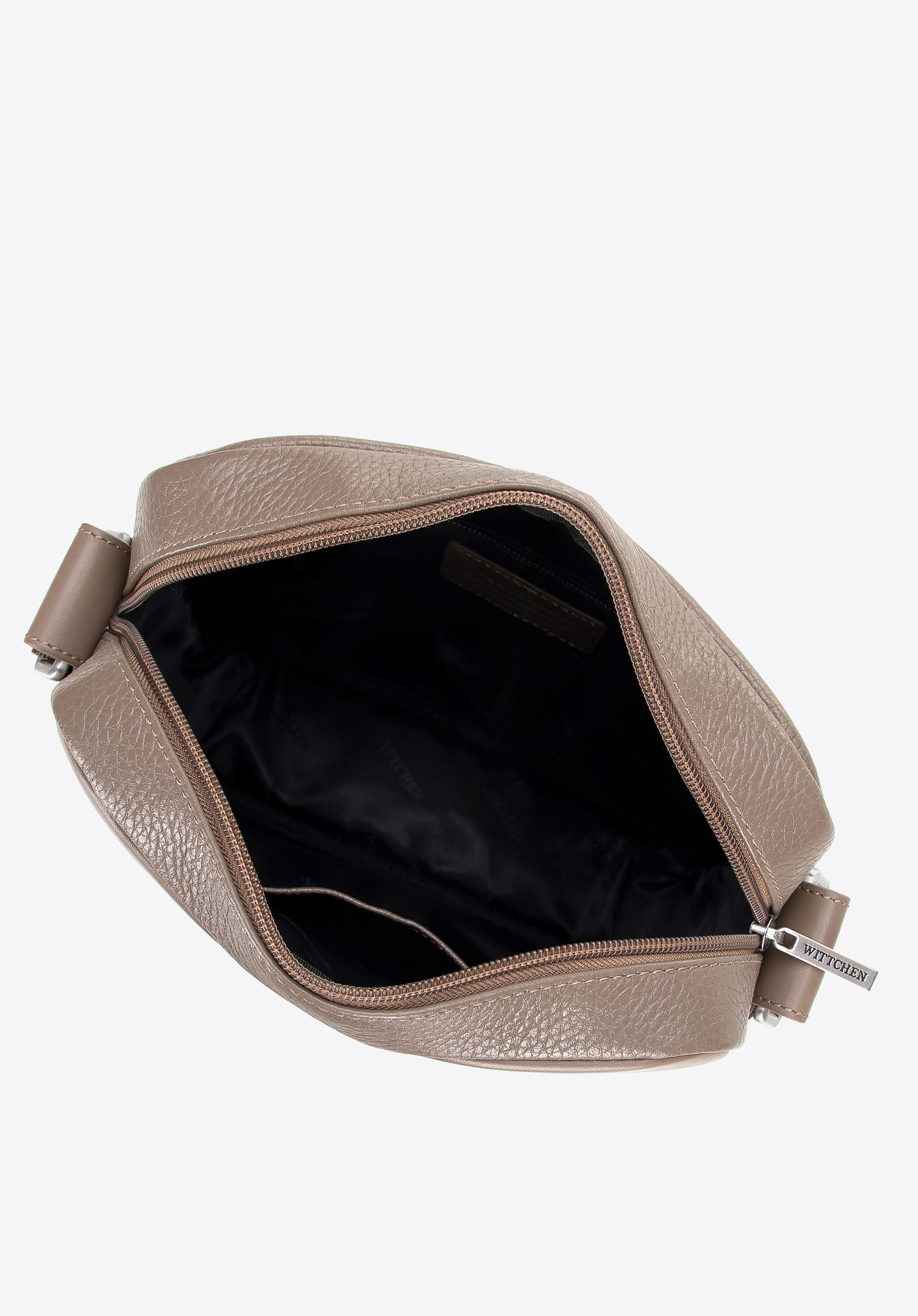 - Materiał: Wykonana ze skóry naturalnej o groszkowej i matowej fakturze, listonoszka wygląda elegancko i jest łatwa w pielęgnacji.