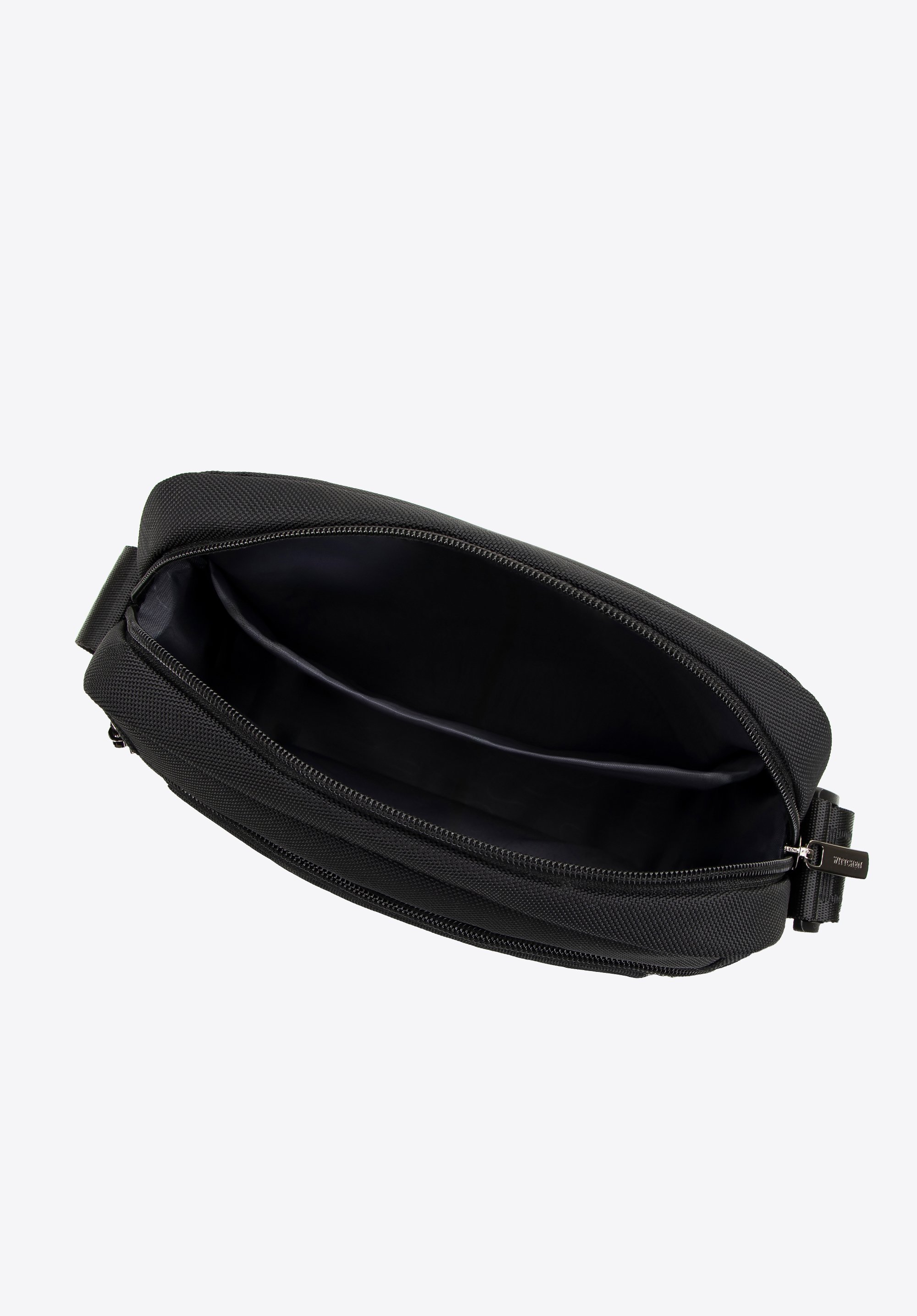 - Wnętrze: Torba wyposażona jest w jedną otwartą kieszeń, która idealnie nadaje się do przechowywania drobnych przedmiotów, takich jak notatnik, długopis czy karta dostępu.