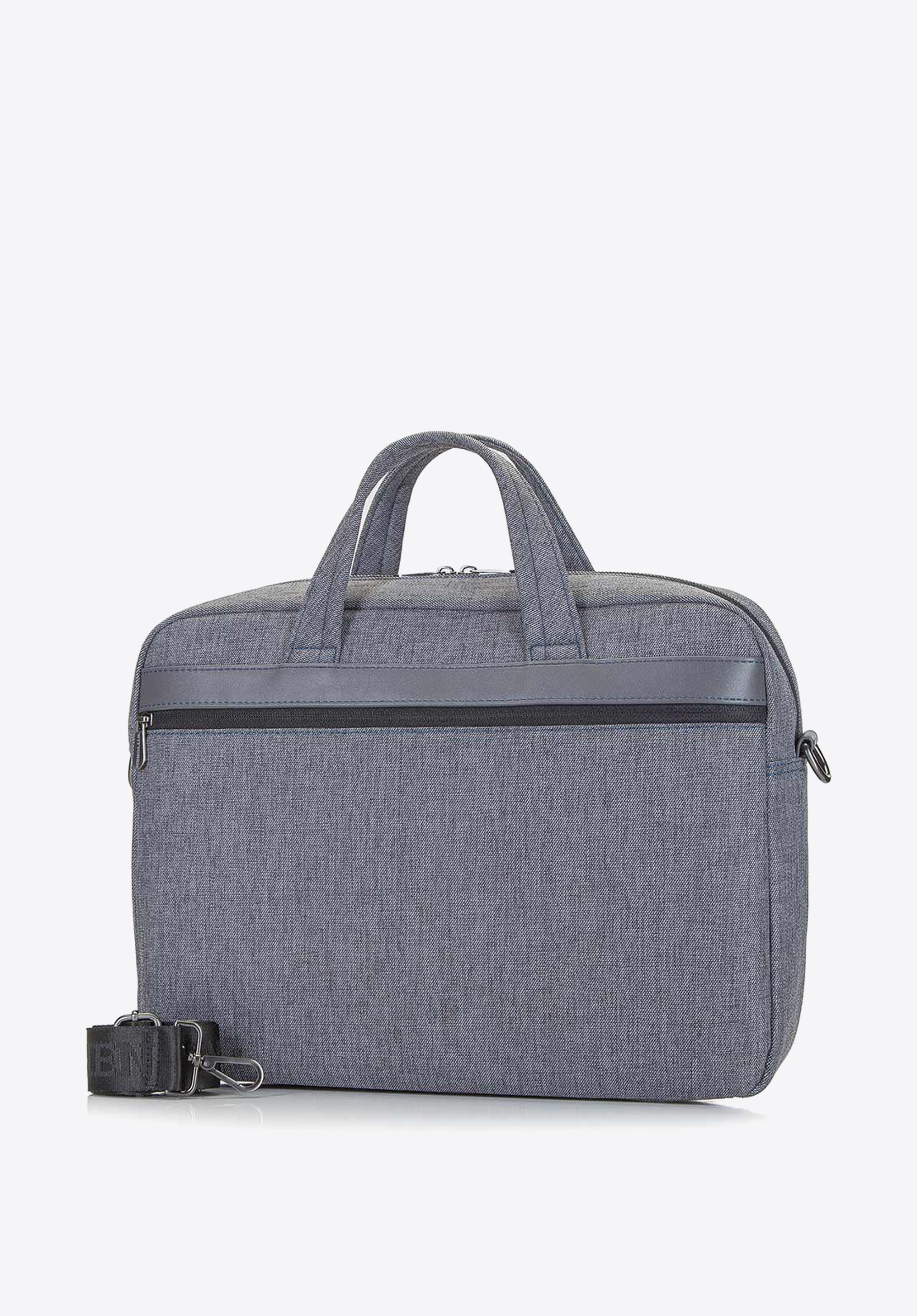 Duża torba na laptopa z eleganckim wykończeniem ze skóry ekologicznej dopełni Twoje biznesowe stylizacje. Jest to niezastąpiony męski dodatek do pracy, ale i nie tylko. Możesz ją nosić wygodnie w ręku za grube uchwyty lub przewiesić przez ramię na doczepianym pasku. Od frontu oraz z tyłu ma dwie, praktyczne kieszenie na suwak. W jednej z nich ukryty jest dodatkowy uchwyt – zaczepisz go o rączkę walizki. W środku ma osobną, miękko wyściełaną kieszeń na laptopa 15,6 cala lub mniejszego oraz dwie kieszenie. Poza sprzętem komputerowym, zmieścisz do środka również dokumenty i teczki w formacie A4. Ta męska torba na laptopa z panelem z ekoskóry ma klasyczny, prosty krój, który doskonale sprawdzi się na co dzień.