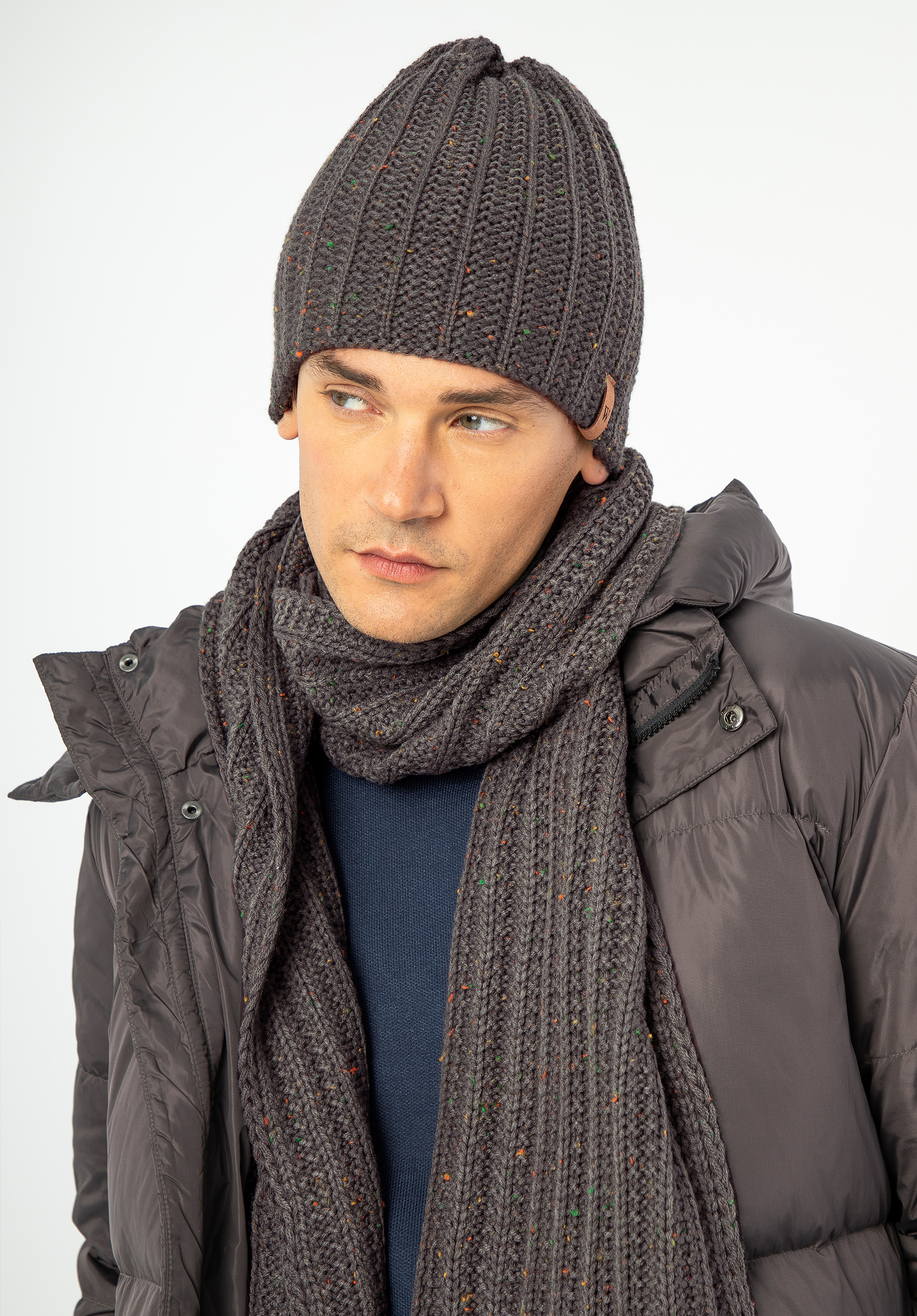 Męski komplet zimowy w drobny wzór najlepiej sprawdzi się podczas zimowych spacerów, dojazdów i weekendowych wyjazdów, kiedy liczy się ciepło w stylowym wydaniu. Gęsty splot akrylu przyjemnie otula, a drobny wzór dodaje charakteru i pozwala łatwo ożywić stonowane okrycie wierzchnie.