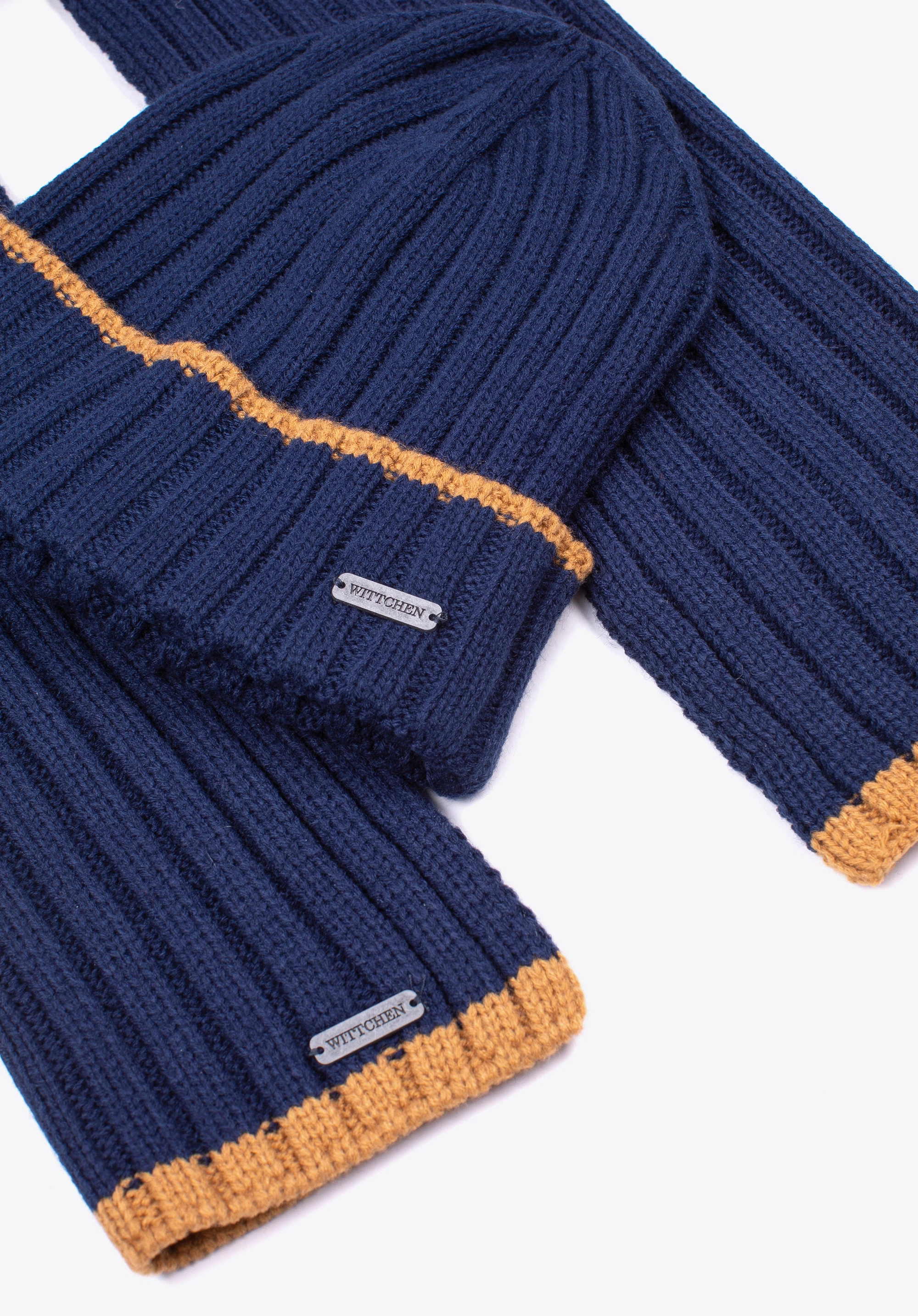 Najlepszy zestaw na mrozy? Męski komplet zimowy od WITTCHEN! Składa się z długiego szalika oraz czapki w stylu beanie z mankietem. Oba elementy zostały wykonane z prążkowanej dzianiny, wykończonej cienkim, kontrastowym paskiem. Klasyczny design to jednak nie wszystko – ten zestaw jest również praktyczny. Doskonale podkreśli Twój indywidualny styl niezależnie od okazji. Możesz nosić go i do sportowych, i do casualowych, a nawet do eleganckich ubrań. Szukasz czegoś do zimowego wełnianego płaszcza? Męski komplet zimowy z kolorowym paskiem będzie idealny! To po prostu najbardziej stylowe akcesorium, w jakie możesz się zaopatrzyć tej zimy.