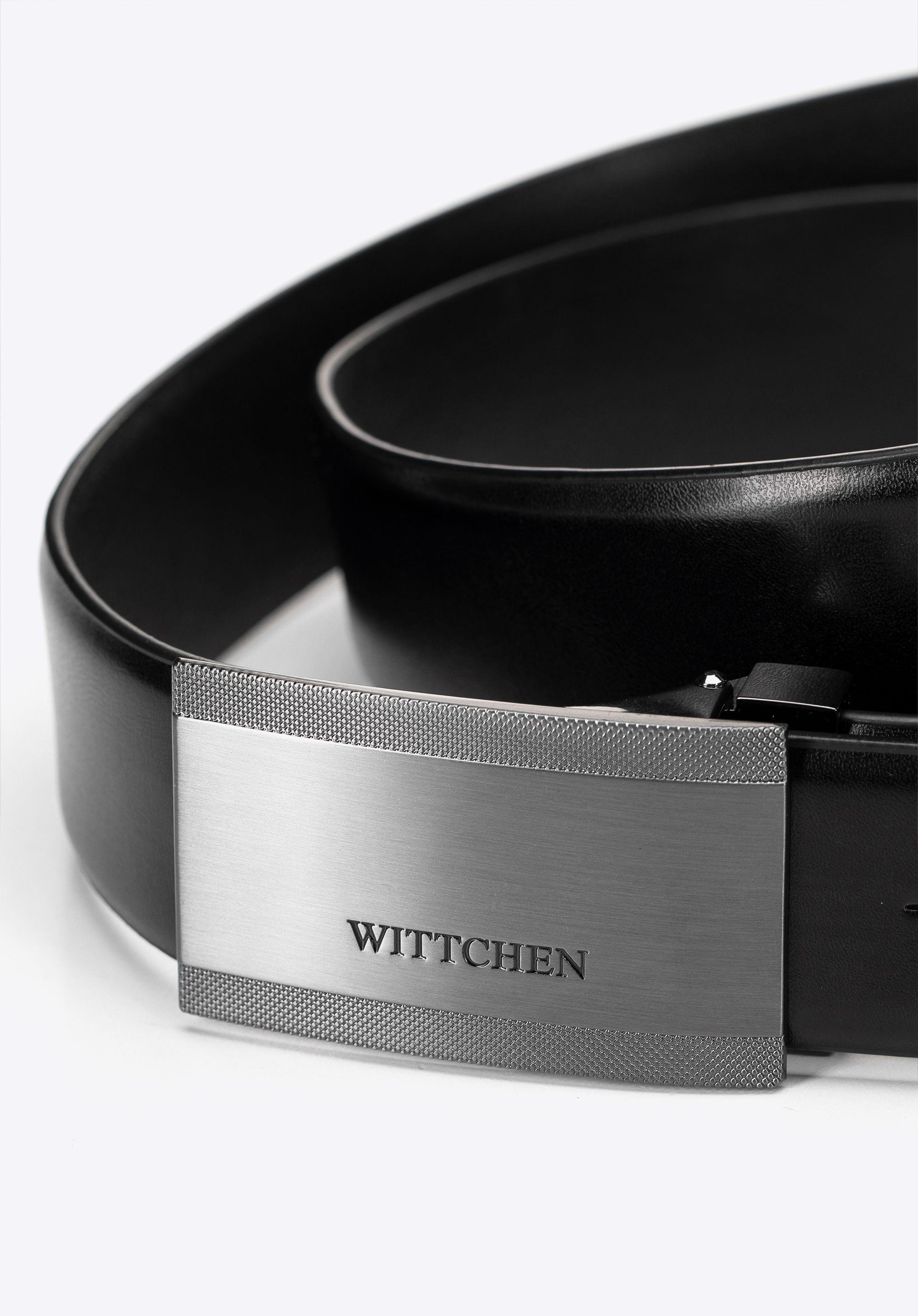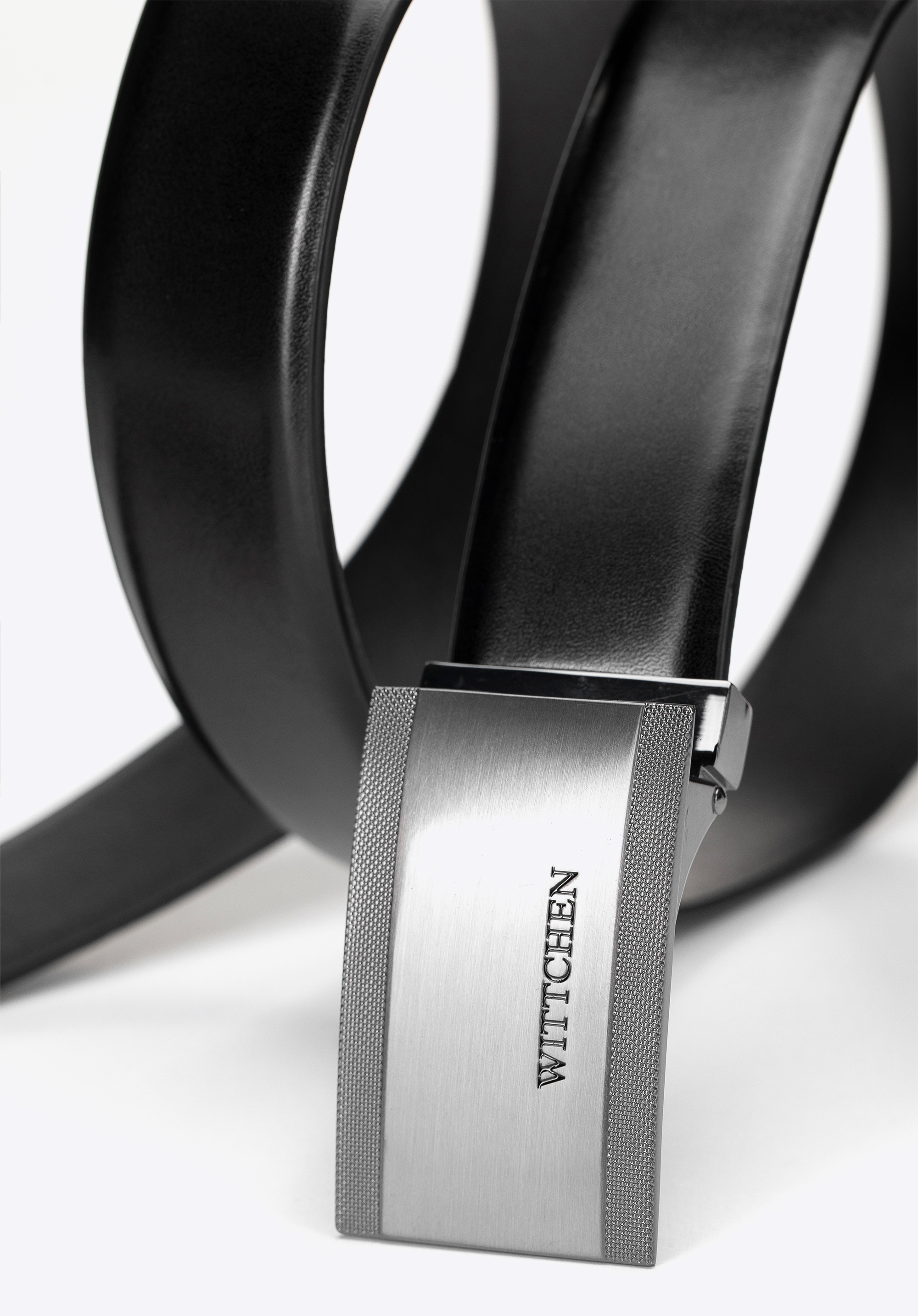 Styl, który przyciąga spojrzenia. Ten męski pasek został wykonany z wysokogatunkowej, gładkiej skóry naturalnej, która łączy trwałość z eleganckim wykończeniem. Na pierwszy plan wysuwa się pełna, błyszcząca klamra – nowoczesna, solidna i efektowna. Logo producenta umieszczone na klamrze podkreśla prestiż modelu i świadczy o jego oryginalności. Gładka powierzchnia paska i minimalistyczne detale czynią go idealnym dodatkiem do stylizacji formalnych i półformalnych – od garnituru po zestawy smart casual. Pasek można łatwo skrócić, dopasowując go perfekcyjnie do swojej sylwetki.