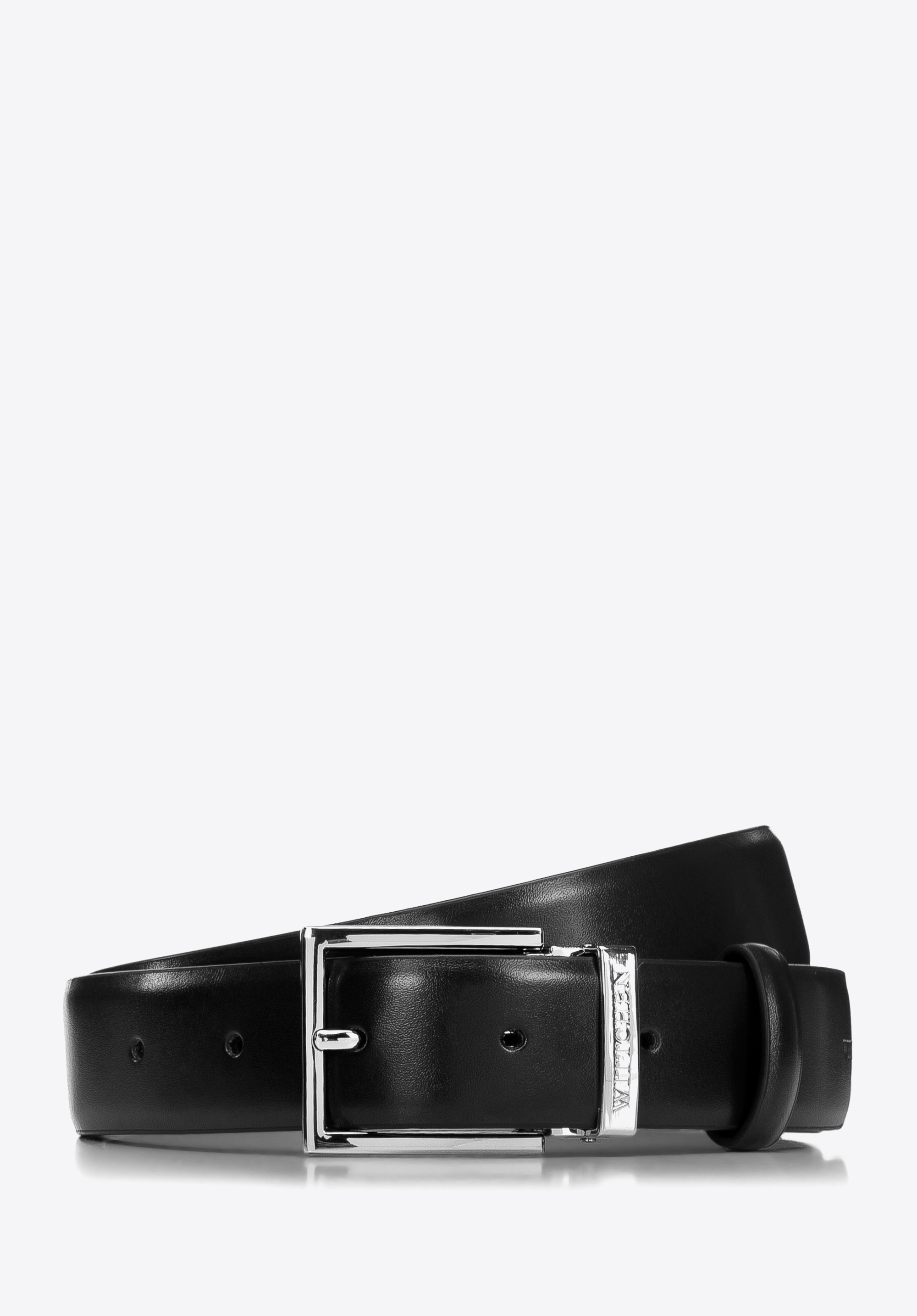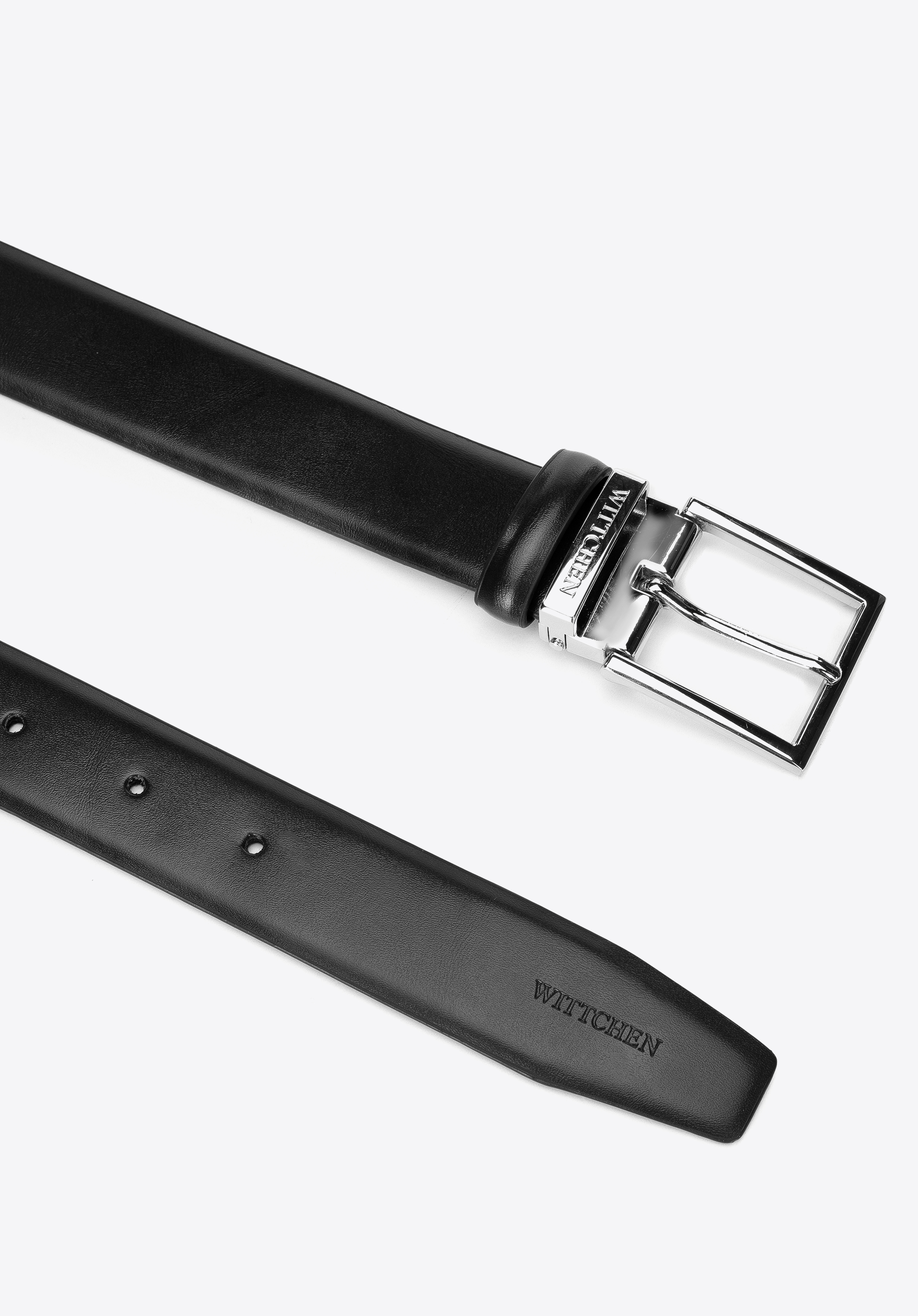 klasyczna, prostokątna klamra z metalową szlufką, która ma wytłoczone logo WITTCHEN. Ten model paska pasuje do każdego stroju: dżinsów, swobodnego garnituru do pracy, jak i eleganckiego garnituru na szczególne okazje. Męski pasek z matowej skóry prosty jest stylowym dodatkiem, który będzie świetnie wyglądał przez lata.