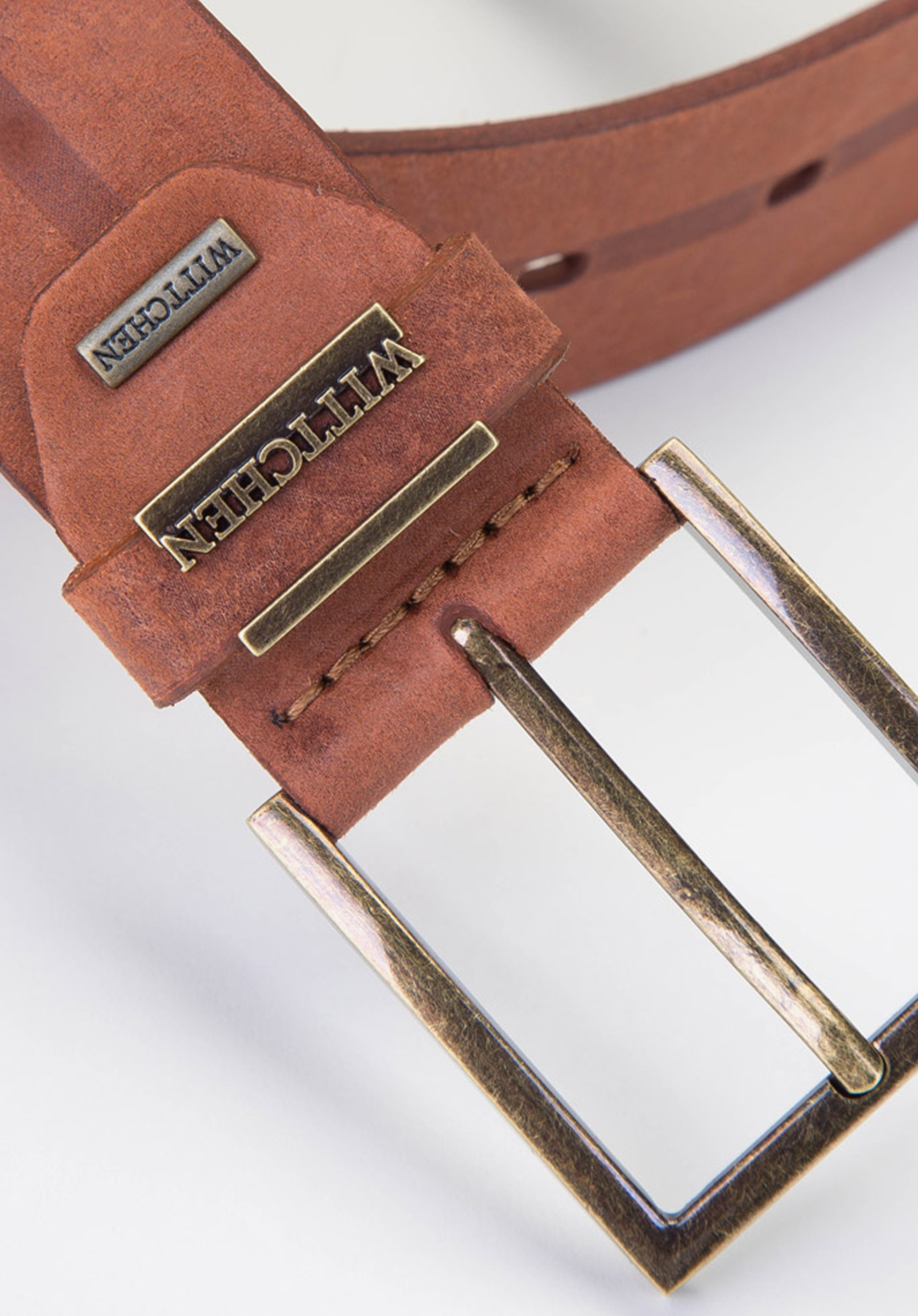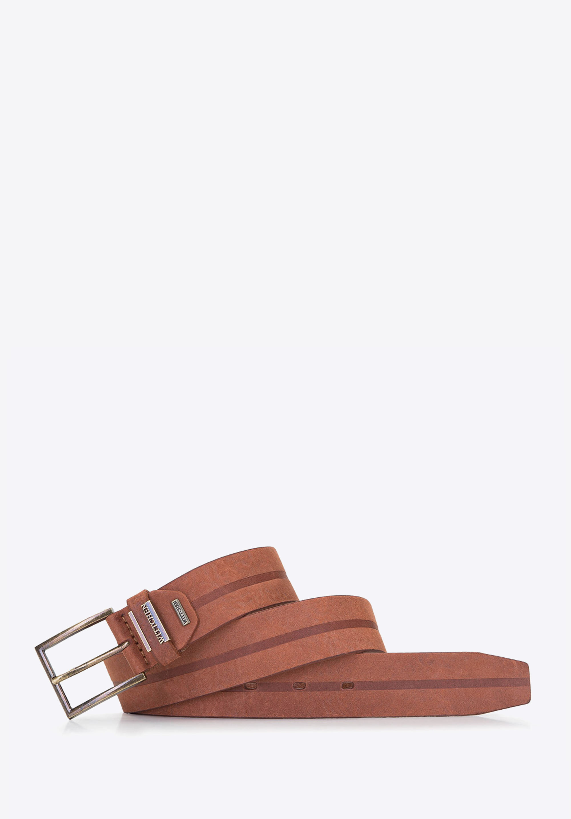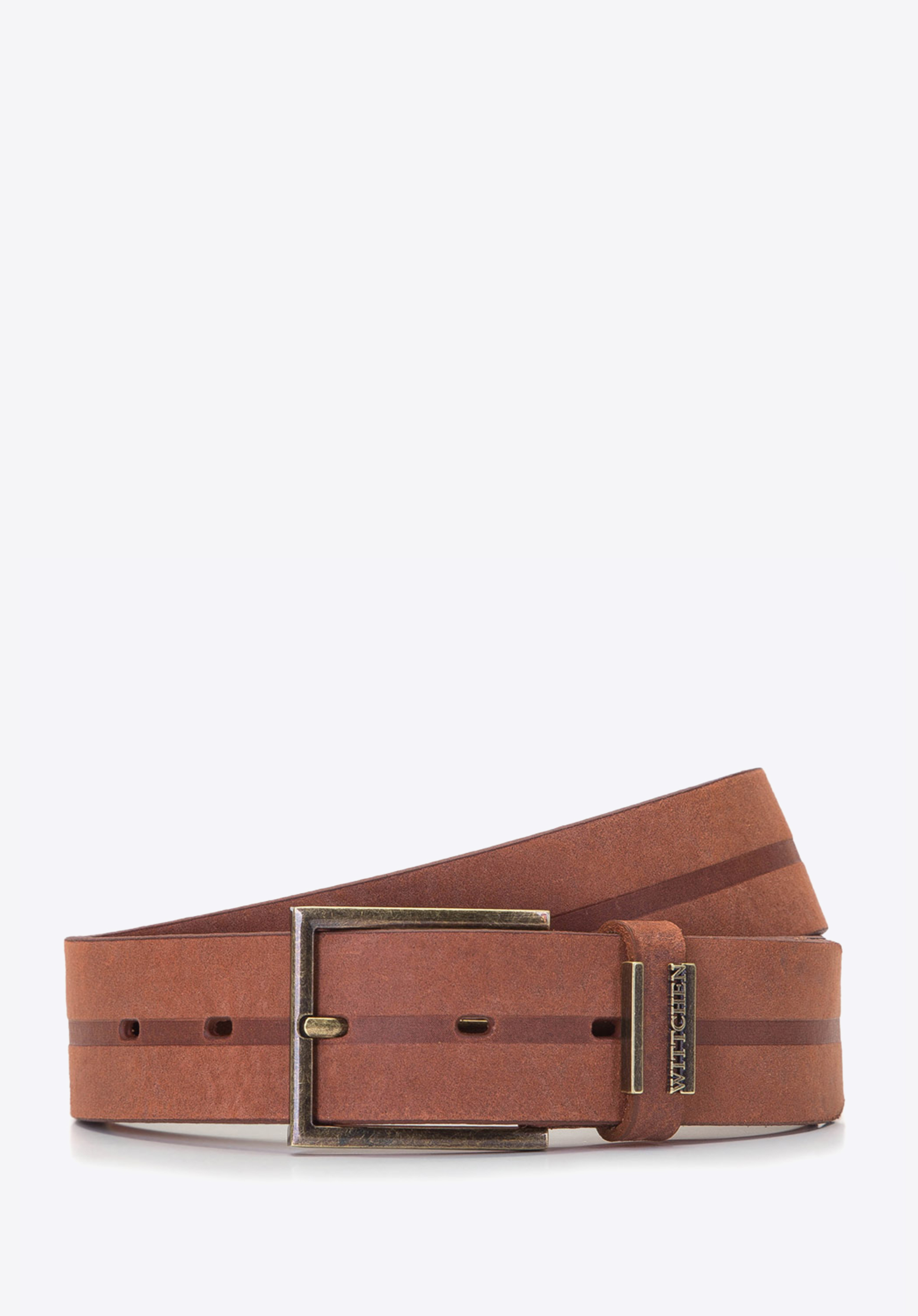 Męski pasek z nubuku z tłoczoną linią brązowy