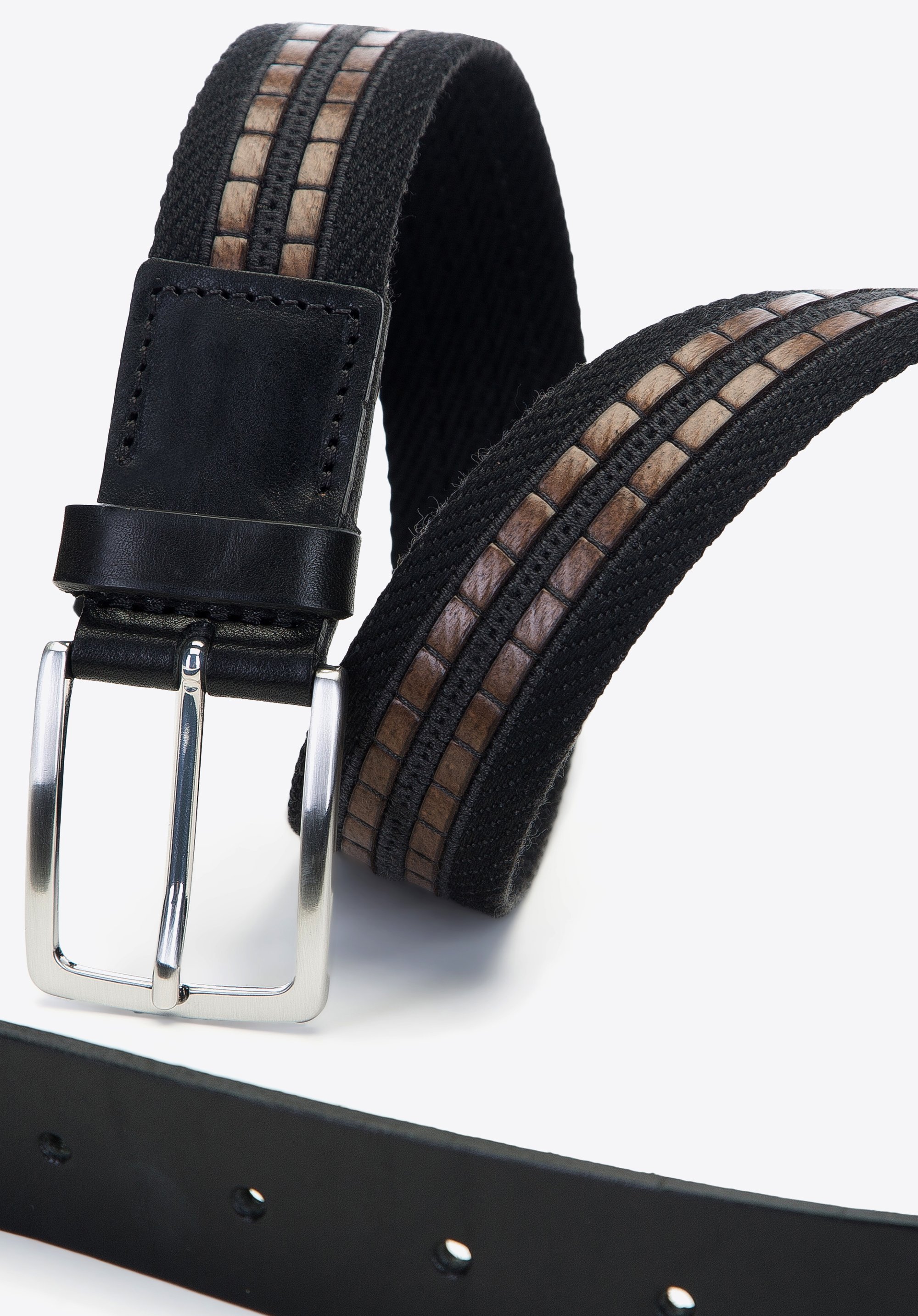 Nieformalny męski pasek z tkaninyze wstawkami ze skóry doda sportowego szyku do Twojego stroju. Będzie odpowiedni na każdą porę roku i do wielu rodzajów spodni – chinosów, sztruksów czy dżinsów, z wyjątkiem jedynie spodni garniturowych. Jest wykonany z trwałej tkaniny z wplecioną skórzaną wstawką. Ma skórzane końcówki i prostą srebrną klamrę. Dzięki wysokiej jakości wykonania i ponadczasowemu stylowi ten pasek będzie cieszył oko przez wiele lat. To również doskonały pomysł na prezent dla mężczyzny lubiącego dobrze wyglądać.