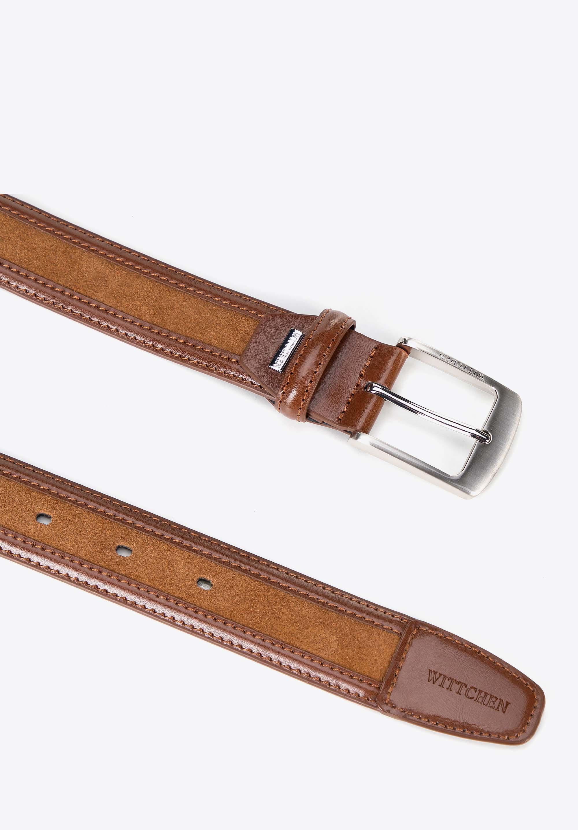 Wysoka jakość, wyjątkowa elegancja i subtelny nowoczesny detal – oto nasz pasek, który z pewnością wzbogaci Twoją garderobę. Wykonany z najwyższej jakości skóry naturalnej, ten pasek to połączenie klasyki z odrobiną świeżości. Jego charakterystycznym elementem jest podwójne stębnowanie w kolorze brązowym, które nadaje mu elegancji i wyróżnia go na tle innych. Dodatkowo pasek łączy dwie faktury skóry – zamszową i gładką, co sprawia, że staje się wyjątkowy.