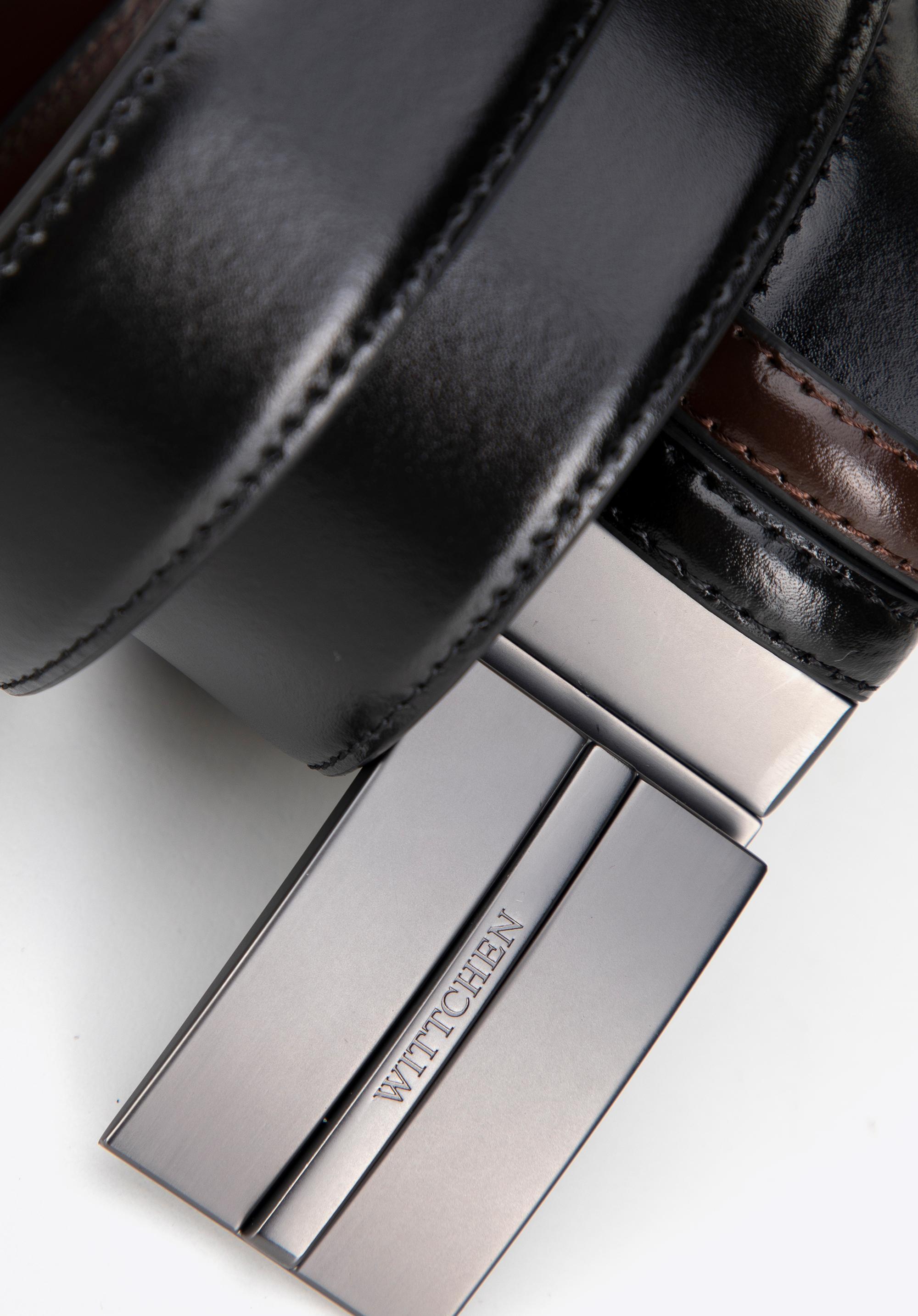 - Praktyczne detale: Dwie skórzane szlufki zapewniają idealne dopasowanie i porządek, a przy tym zwiększają funkcjonalność paska.