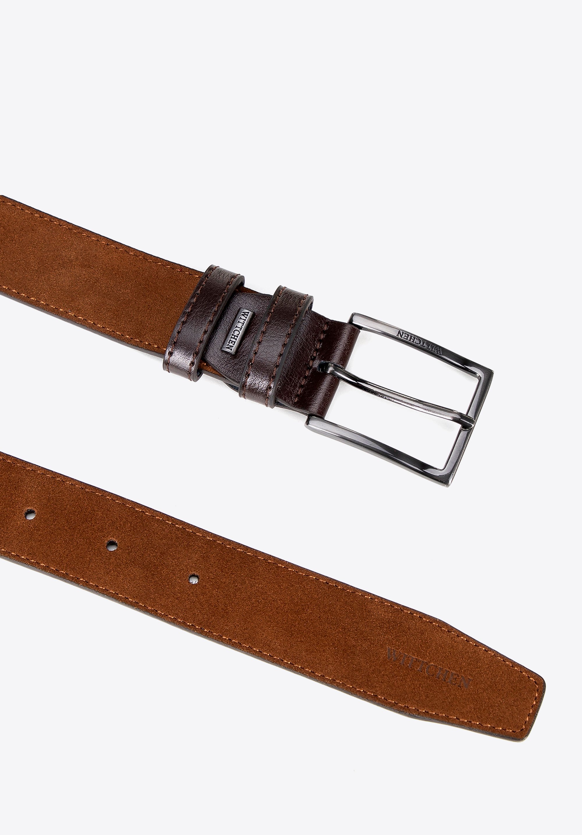 Ten wyjątkowy męski pasek łączy ponadczasowy styl z nowoczesnymi detalami, które przyciągają wzrok. Wykonany z wysokiej jakości skóry naturalnej o aksamitnej, zamszowej fakturze, zachwyca miękkością i głębokim kolorem, który z upływem czasu nabiera jeszcze większej klasy. Metalowa prostokątna klamra dodaje współczesnego sznytu, podkreślając elegancki, ale zarazem surowy charakter całości.