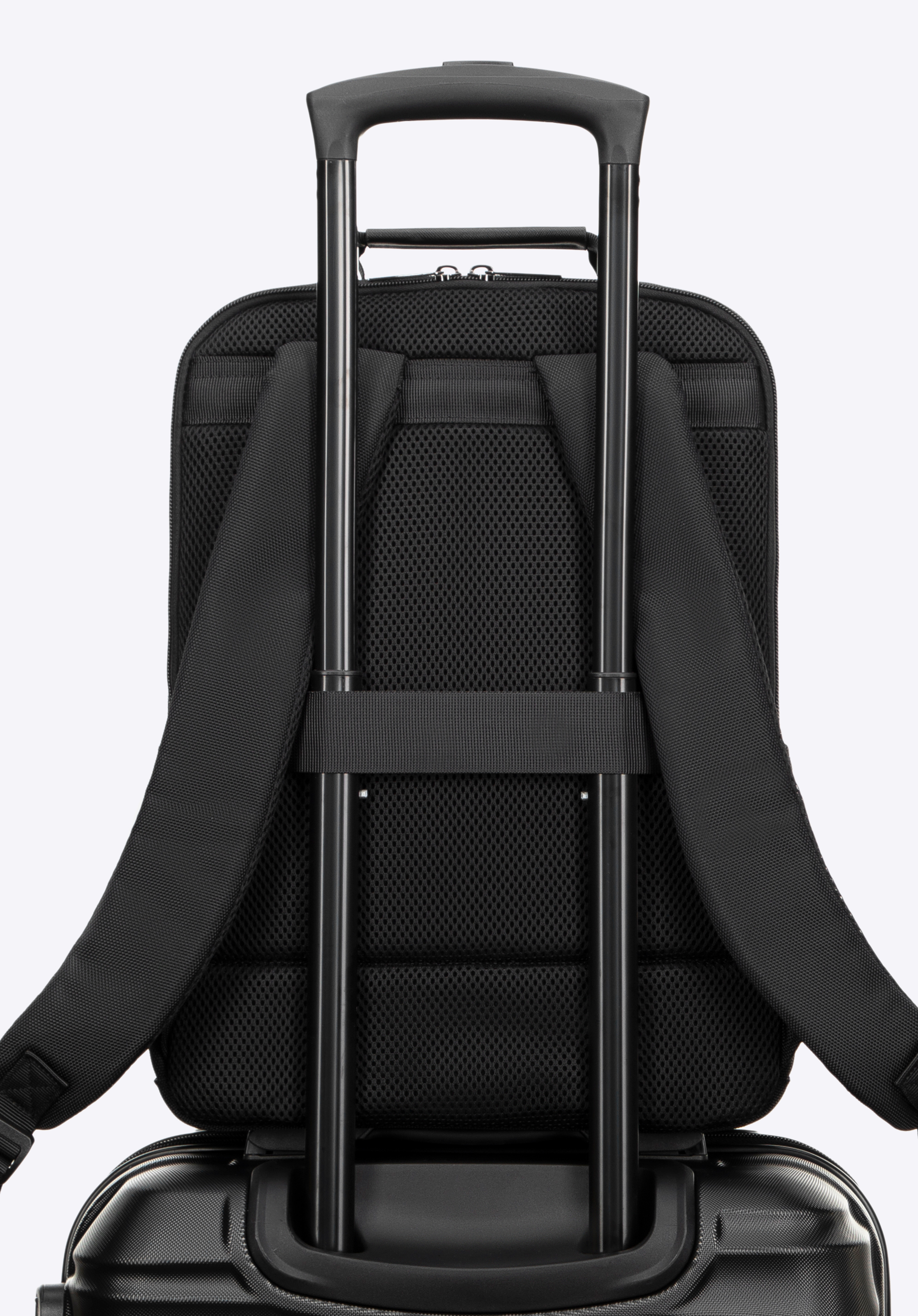 - Uchwyt na walizkę umożliwia łatwe mocowanie do rączki bagażu podróżnego, co ułatwia poruszanie się po lotnisku.