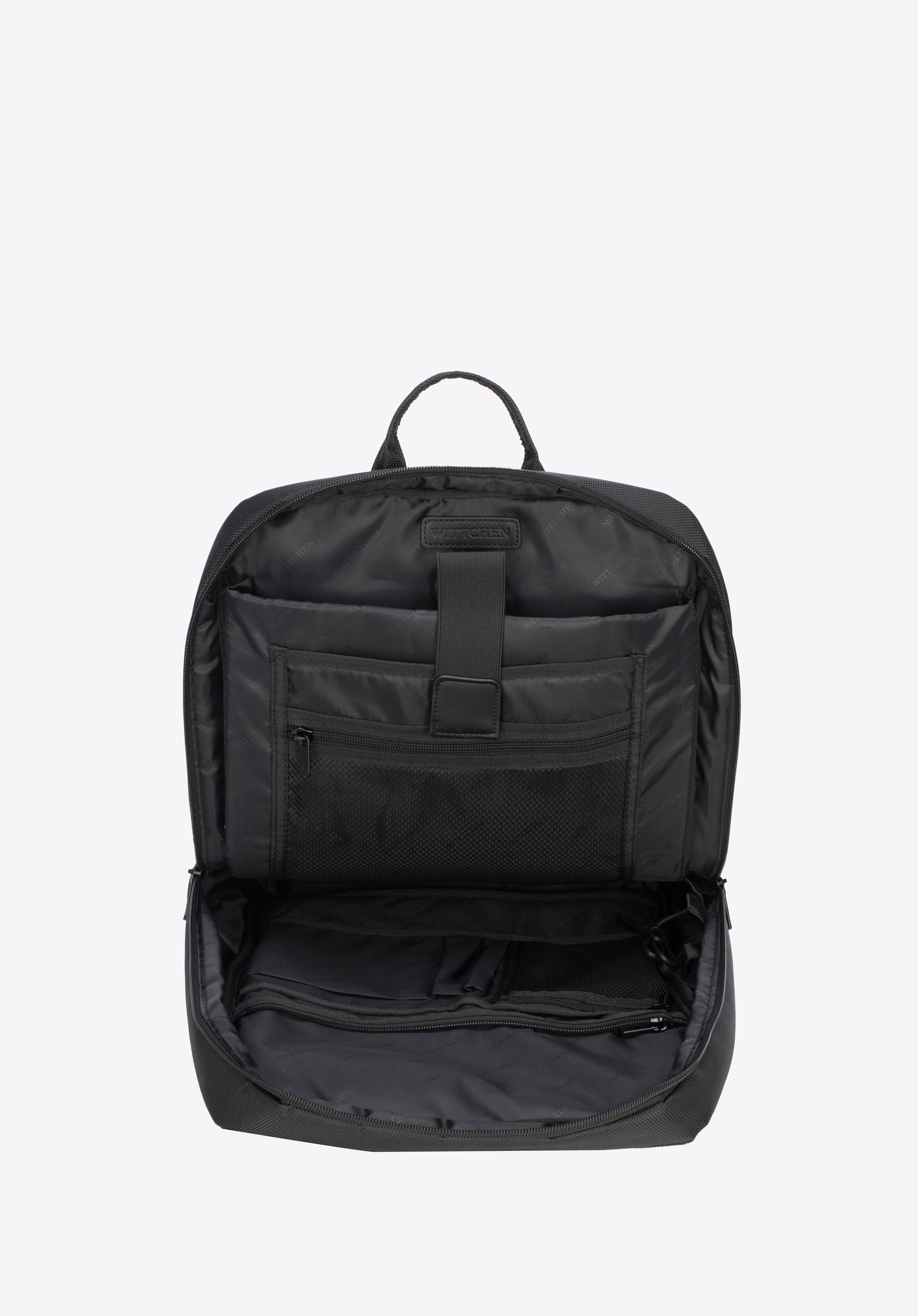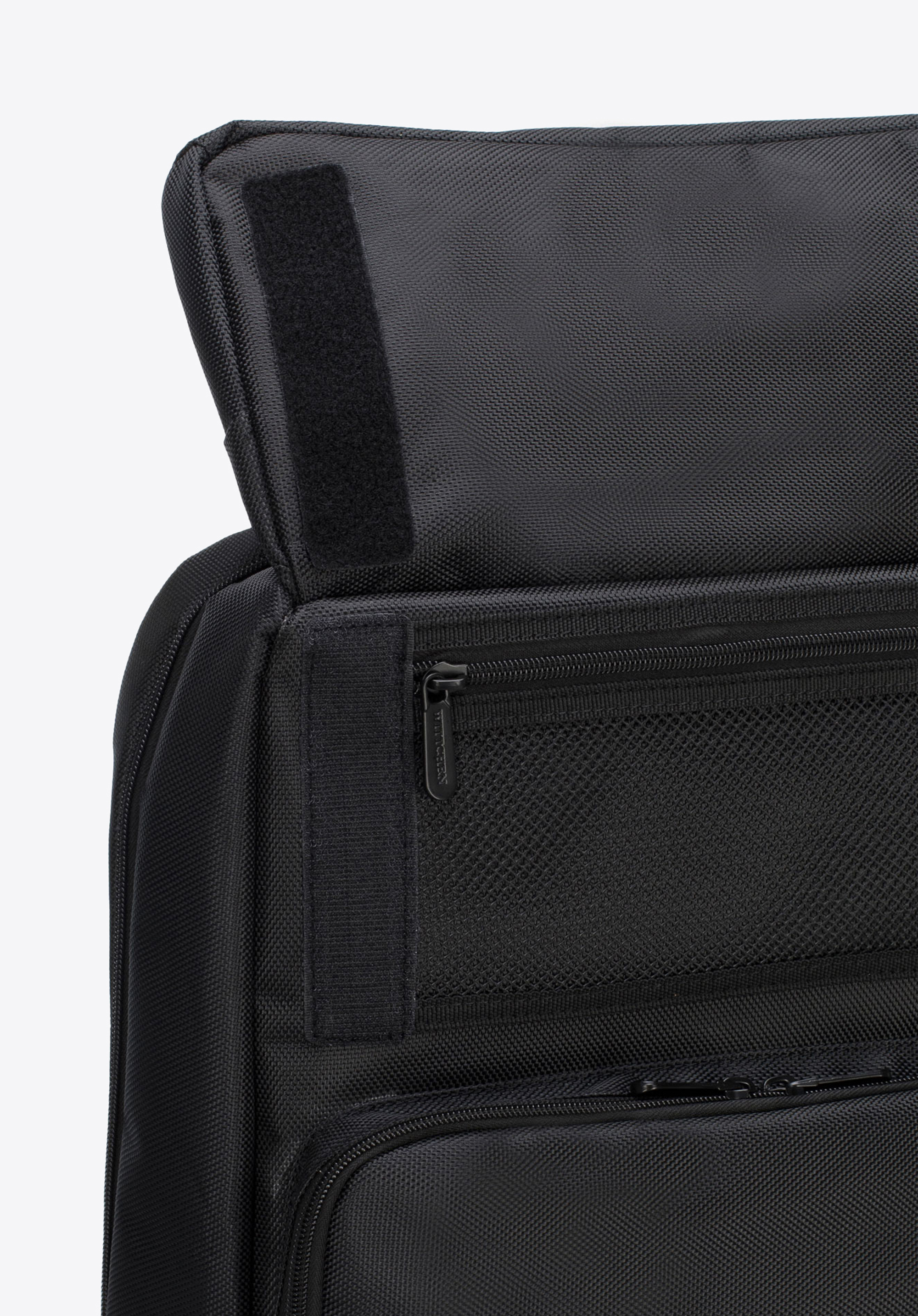 - trzy otwarte kieszenie, 2 miejsca na długopisy oraz 3 kieszenie zamykane na suwak, w tym dwie z siatki;