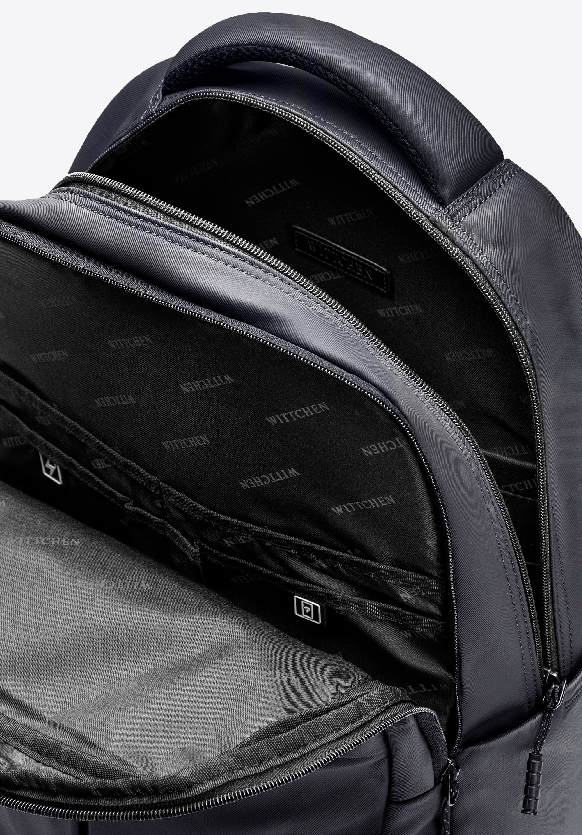 - Praktyczna organizacja wewnętrzna: Cztery otwarte kieszenie, w tym jedna z ochroną RFID, oraz dwie przegródki na długopisy pomagają utrzymać porządek i zapewniają szybki dostęp do najważniejszych przedmiotów.