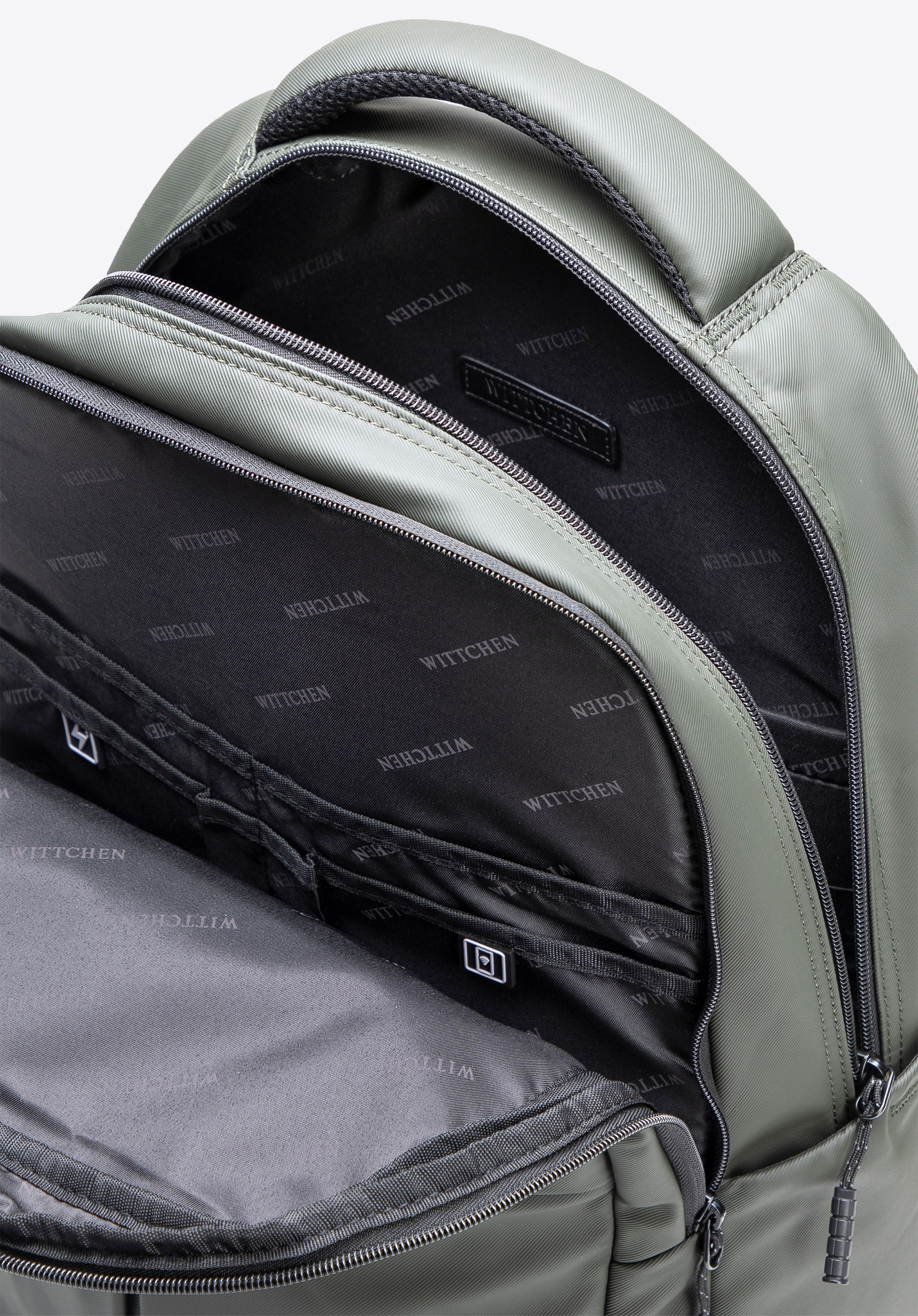 - Praktyczna organizacja wewnętrzna: Cztery otwarte kieszenie, w tym jedna z ochroną RFID, oraz dwie przegródki na długopisy pomagają utrzymać porządek i zapewniają szybki dostęp do najważniejszych przedmiotów.