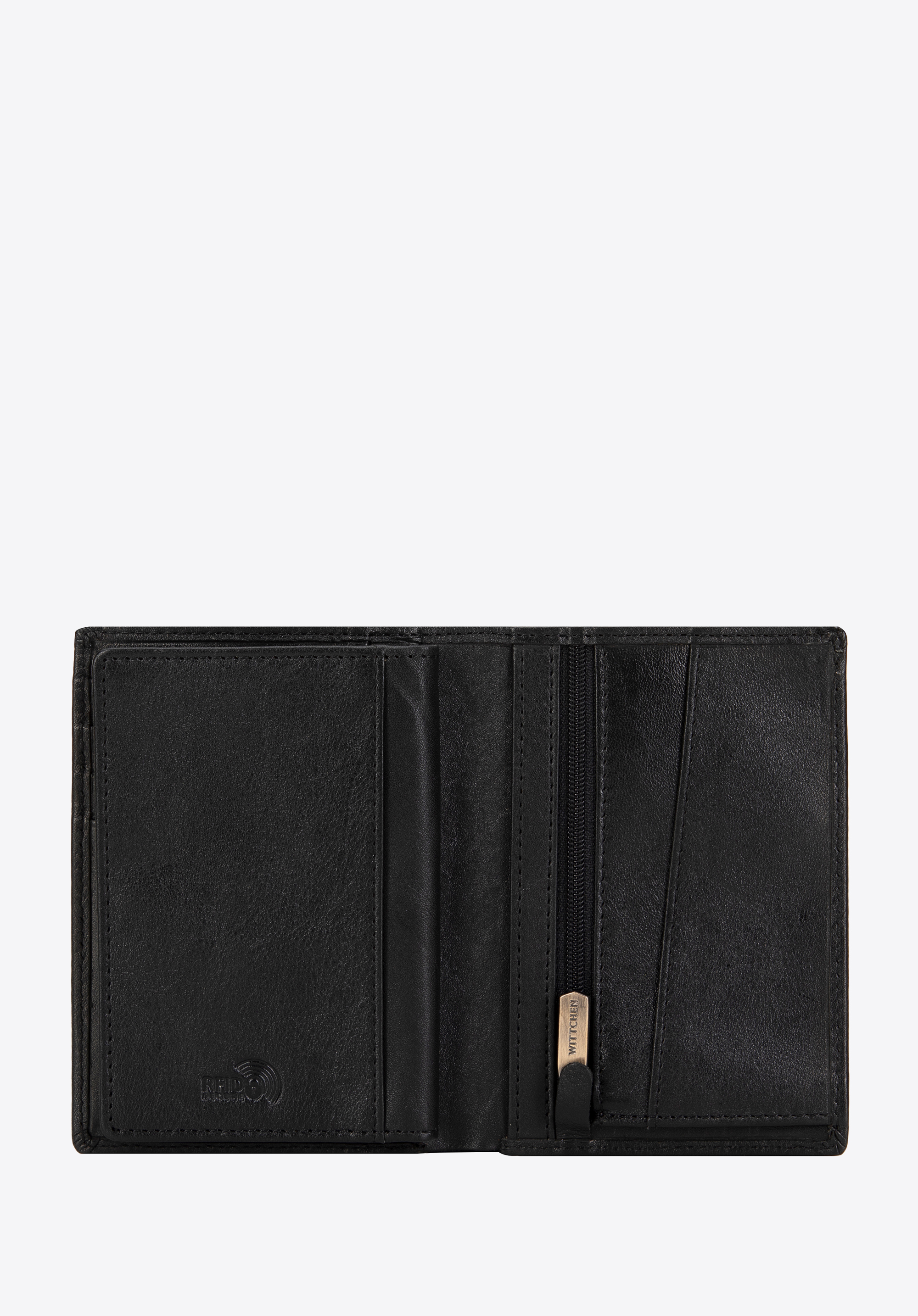 - Bezpieczeństwo: Miejsce na bilon zamykane na suwak, zapewniające bezpieczeństwo przechowywanych monet.