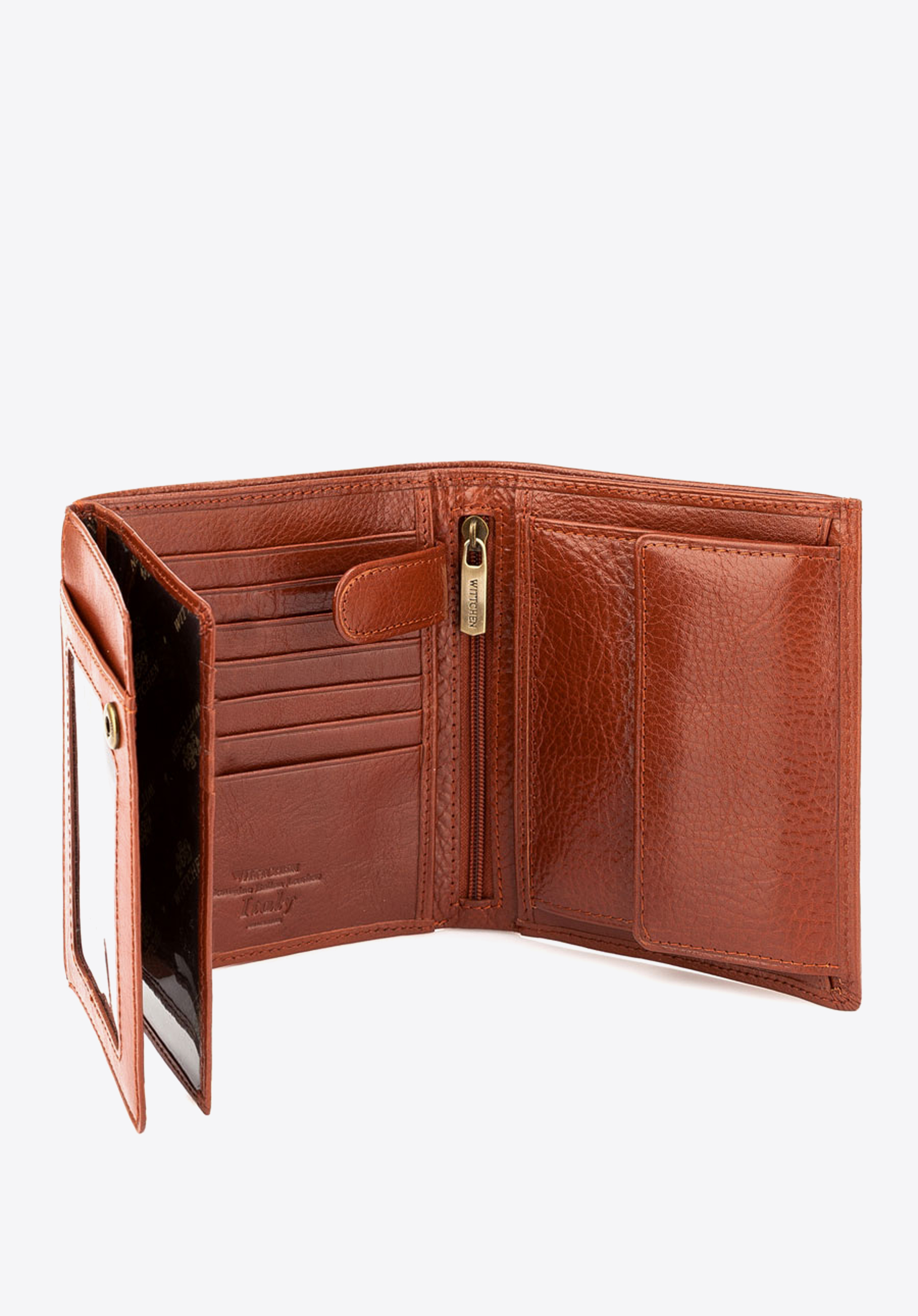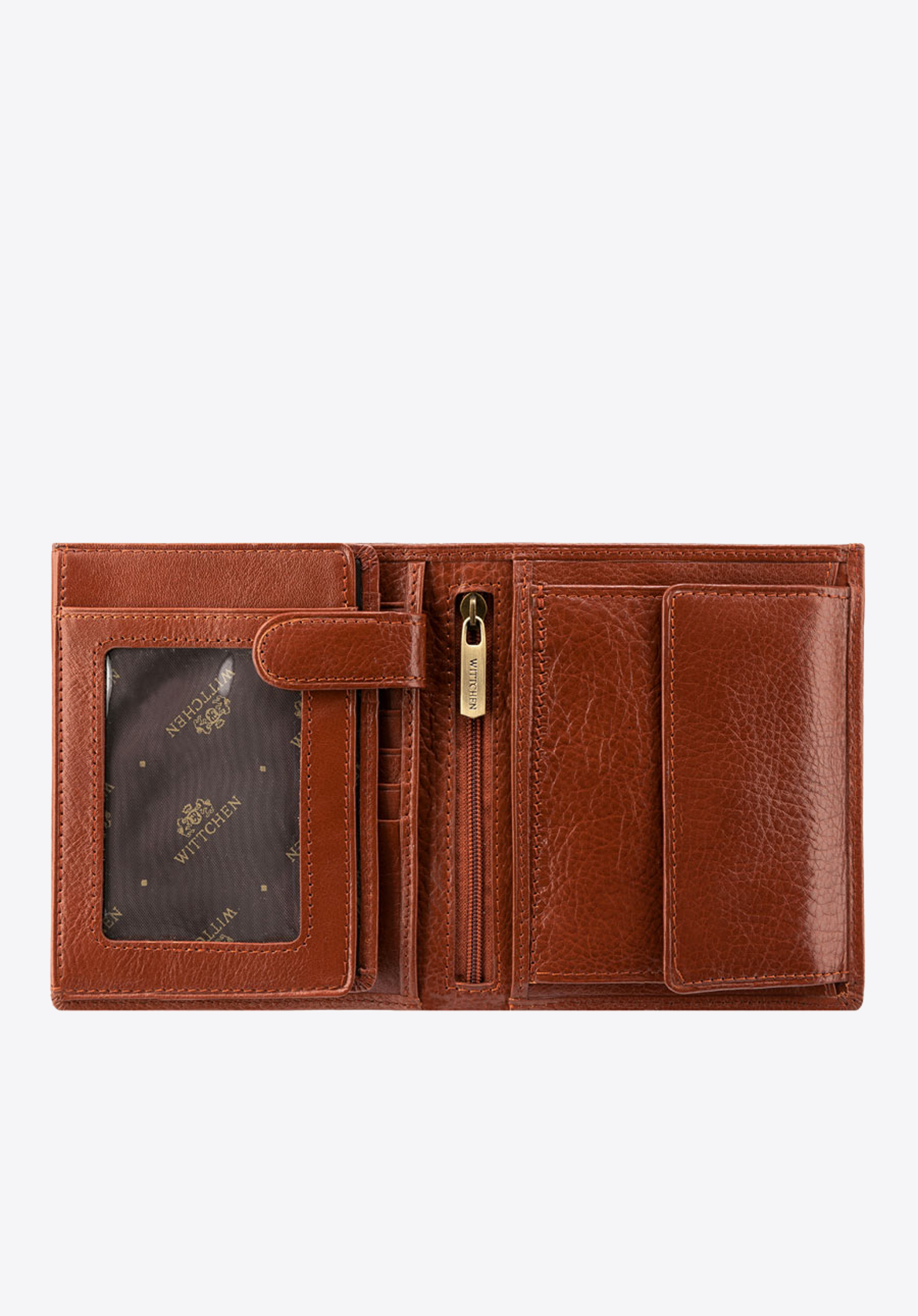 Stylowy skórzany portfel wyposażony w miejsce na bilon, ozdobiony tłoczonym herbem WITTCHEN. Duża liczba kieszeni czyni portfel bardzo pojemnym i funkcjonalnym. Bestseller wśród portfeli!