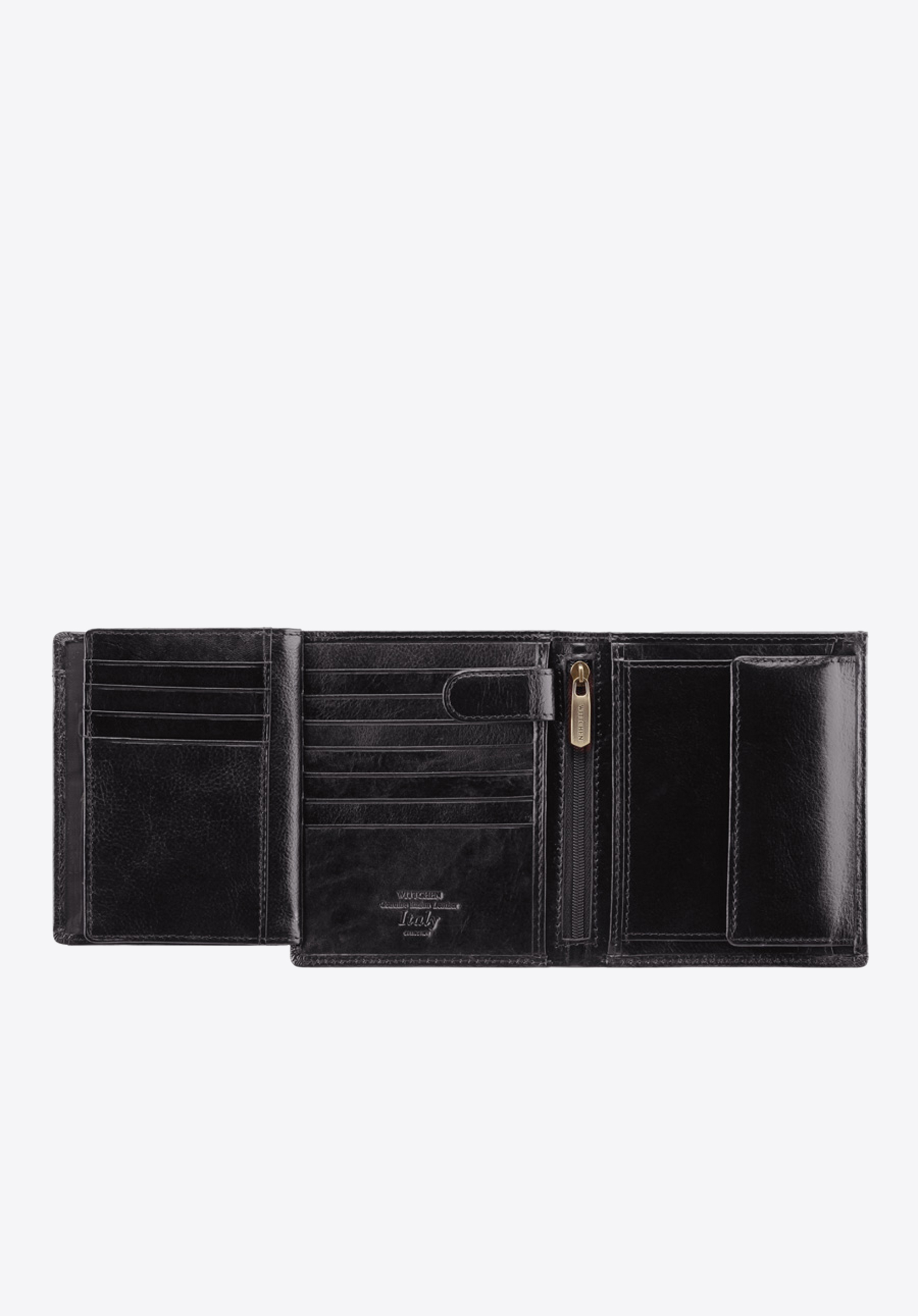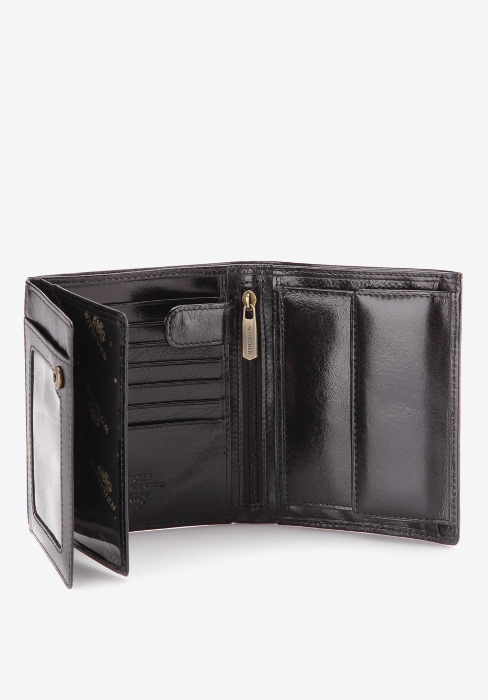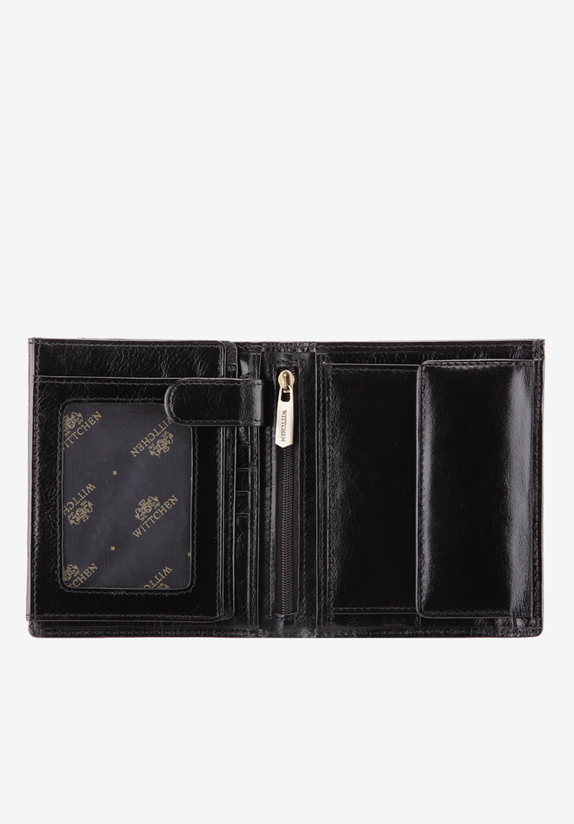 Stylowy skórzany portfel wyposażony w miejsce na bilon, ozdobiony tłoczonym herbem WITTCHEN. Duża liczba kieszeni czyni portfel bardzo pojemnym i funkcjonalnym. Bestseller wśród portfeli!
