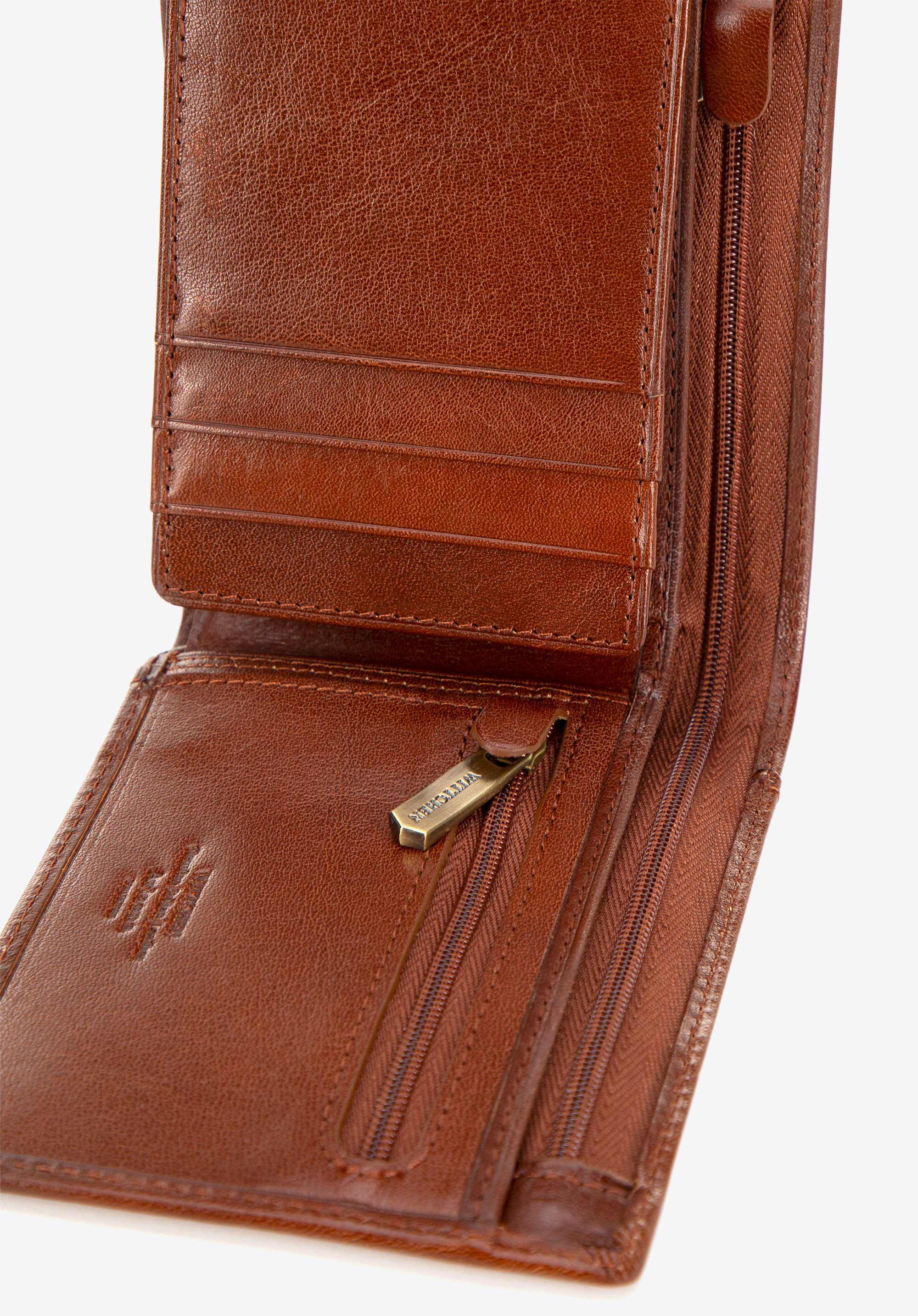 - Detale: Metalowa blaszka z herbem WITTCHEN w kolorze starego złota dodaje elegancji i podkreśla wysoką jakość wykonania, czyniąc portfel idealnym na każdą okazję.