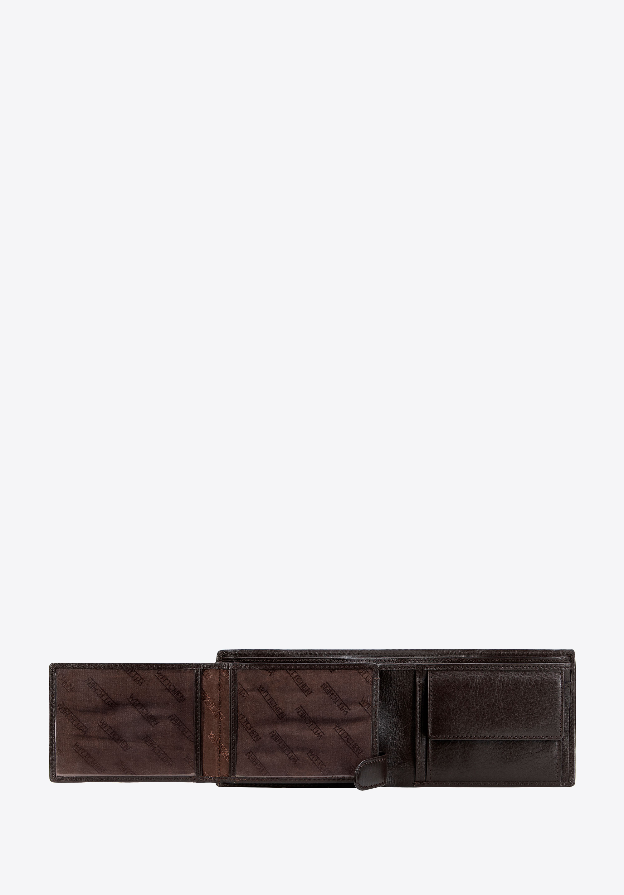 - Kieszeń na bilon: Zapinana na napę, zapewnia bezpieczne przechowywanie monet i szybki dostęp do drobnych.