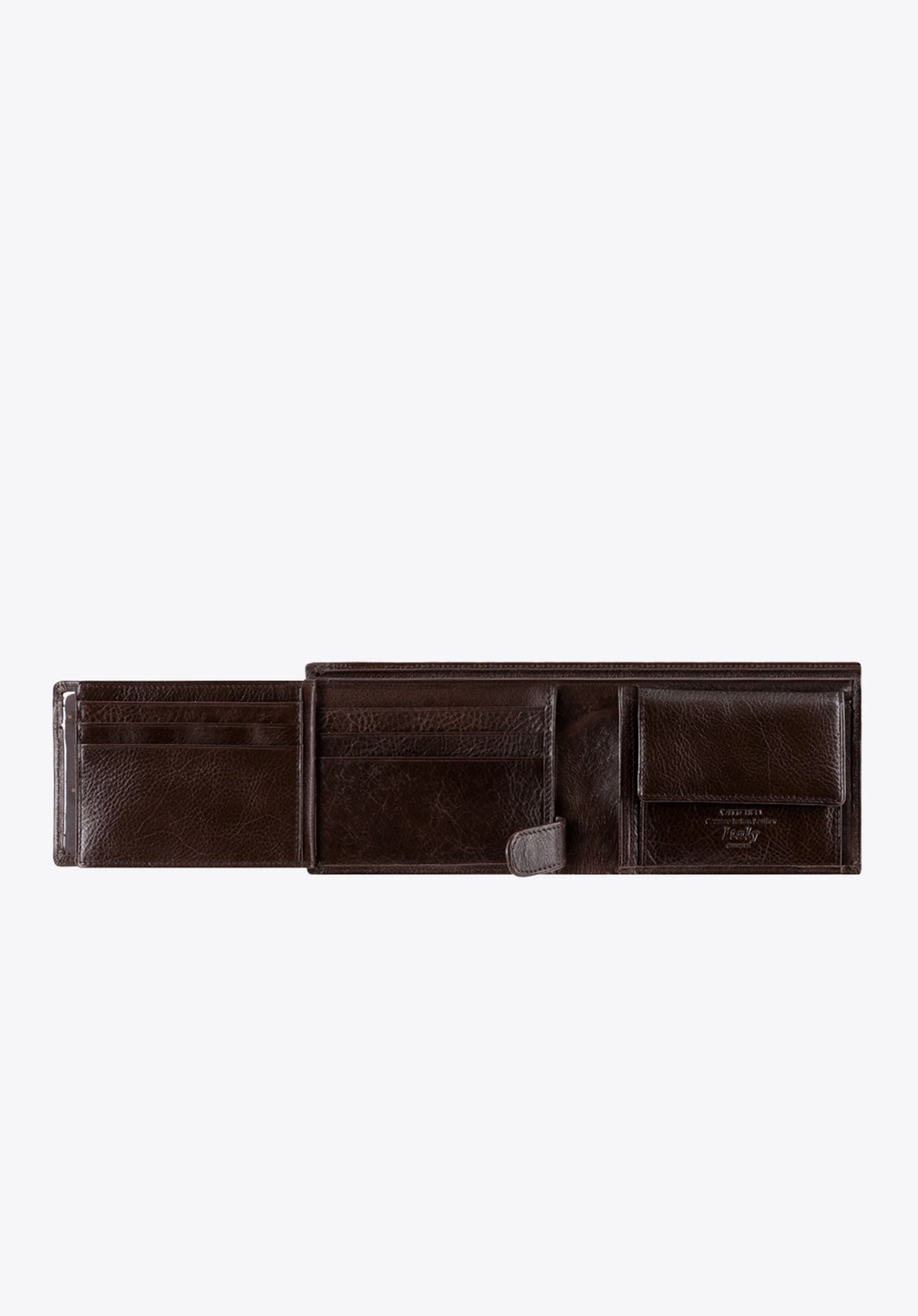 Duży portfel o klasycznym kroju - praktyczny i elegancki, pasuje do każdej stylizacji. Struktura skóry sprawia, że model charakteryzuje się zwiększoną odpornością na zarysowania i zachowuje przez długi czas nieskazitelny wygląd.