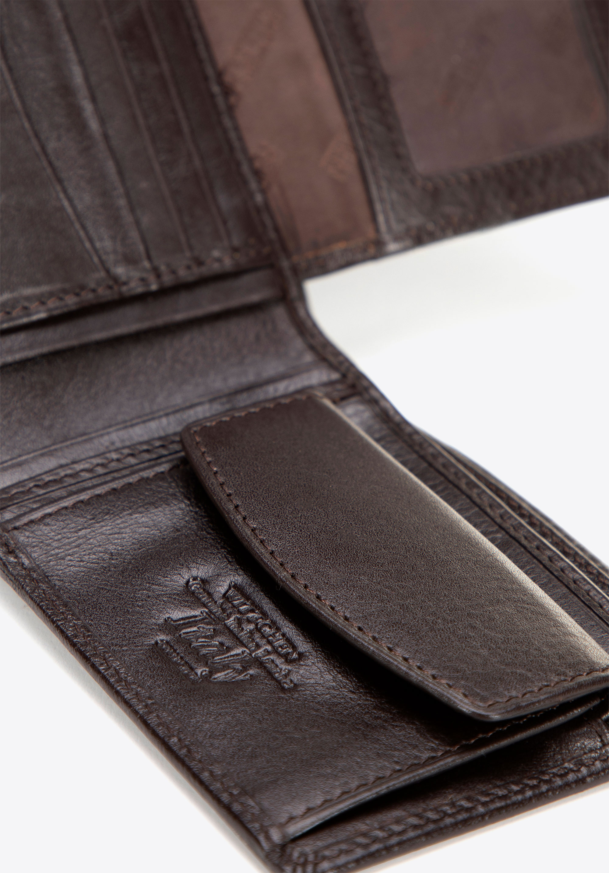 - Kieszeń na bilon zamykana na zatrzask: Gwarantuje bezpieczne przechowywanie drobnych, eliminując ryzyko ich wypadnięcia.