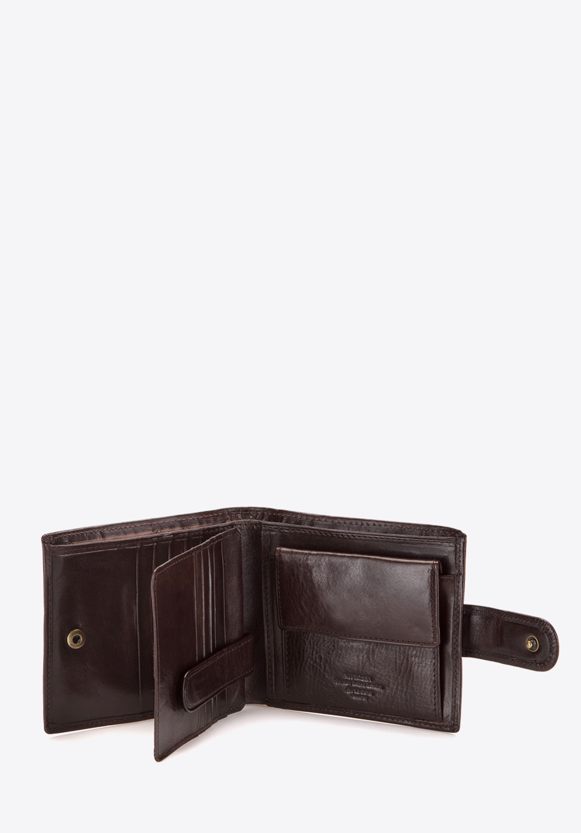 Męski portfel skórzany zapinany to praktyczne rozwiązanie dla mężczyzn prowadzących aktywny tryb życia, którzy chcą mieć wszystko pod kontrolą. Zapięcie zabezpieczające, liczne miejsca na karty i kompaktowy format ułatwiają organizację i bezpieczne przechowywanie zawartości.