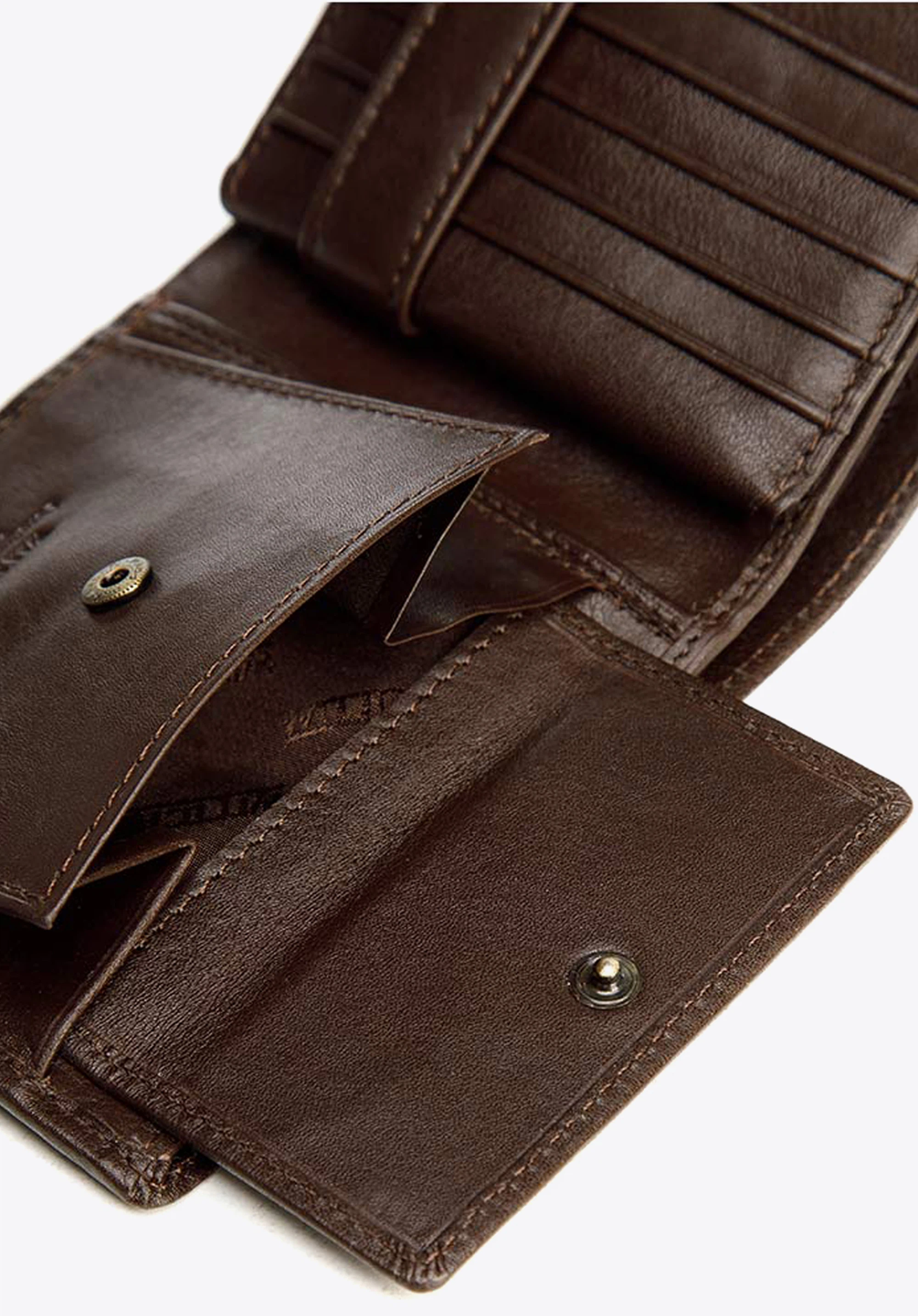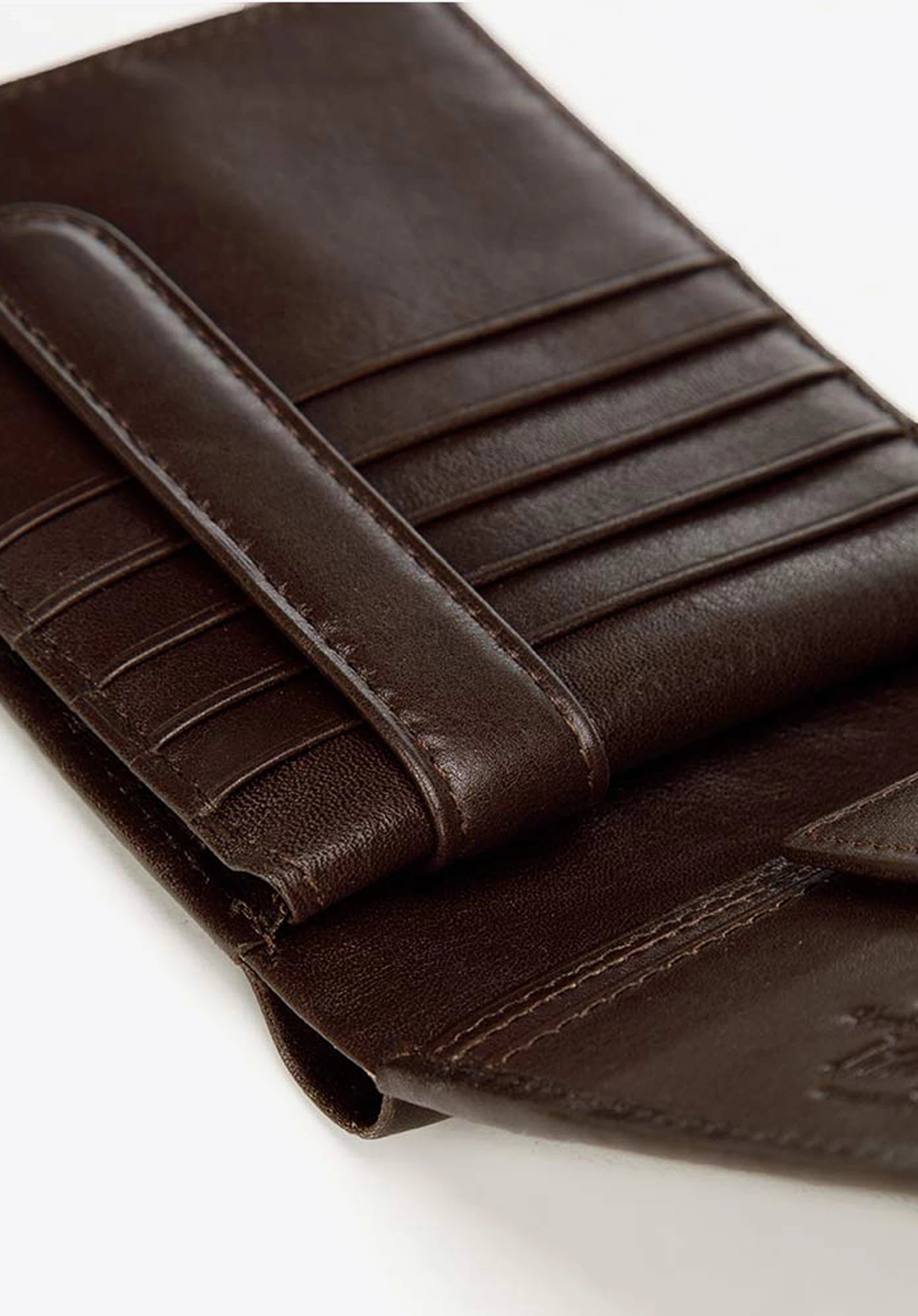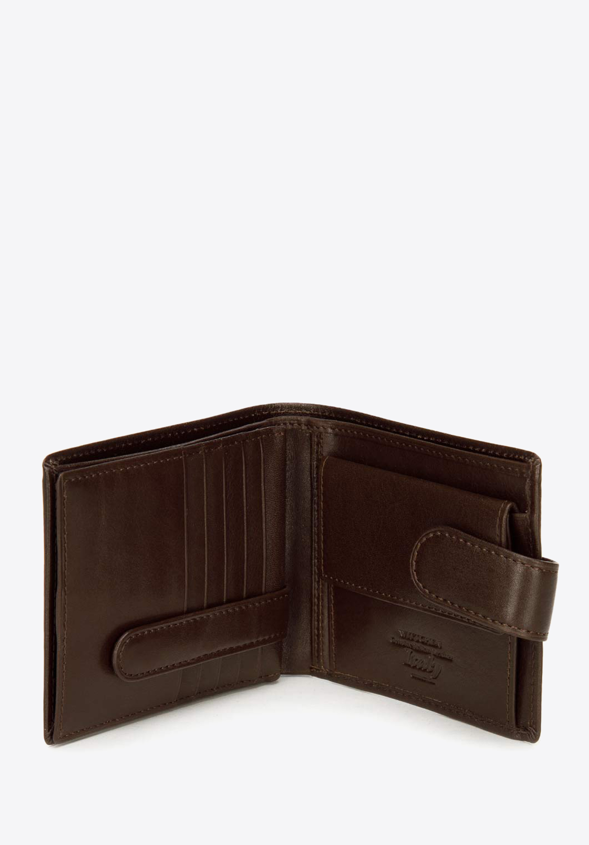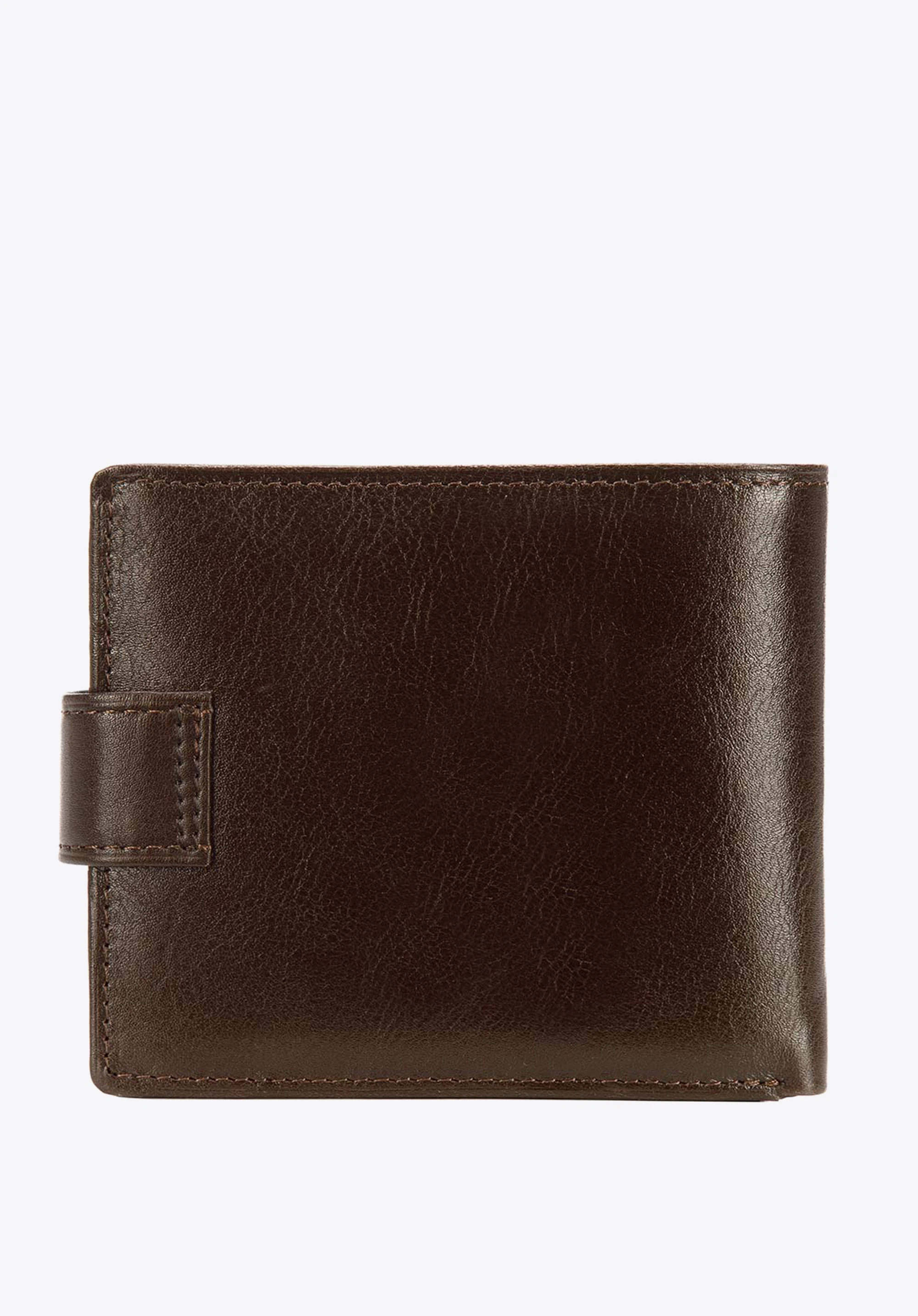 Ten klasycznie skrojony skórzany męski portfel to praktyczny drobiazg, który przyjemnie będzie używać co dzień. Zwraca uwagę prostotą formy i niezwykle starannym wykończeniem. W środku ma dwie kieszenie na banknoty, zamykaną na napę kieszeń na bilon, dziesięć przegródek na karty – zamykanych wspólnie na napę oraz pięć dodatkowych kieszeni, w tym jedną przezroczystą – idealną na zdjęcia najbliższych. Tak duża ilość zabezpieczeń sprawia, że cała jego zawartość zawsze pozostanie na swoim miejscu. W środku ma podszewkę z technologią RFID, która chroni przed sczytywaniem danych z kart.