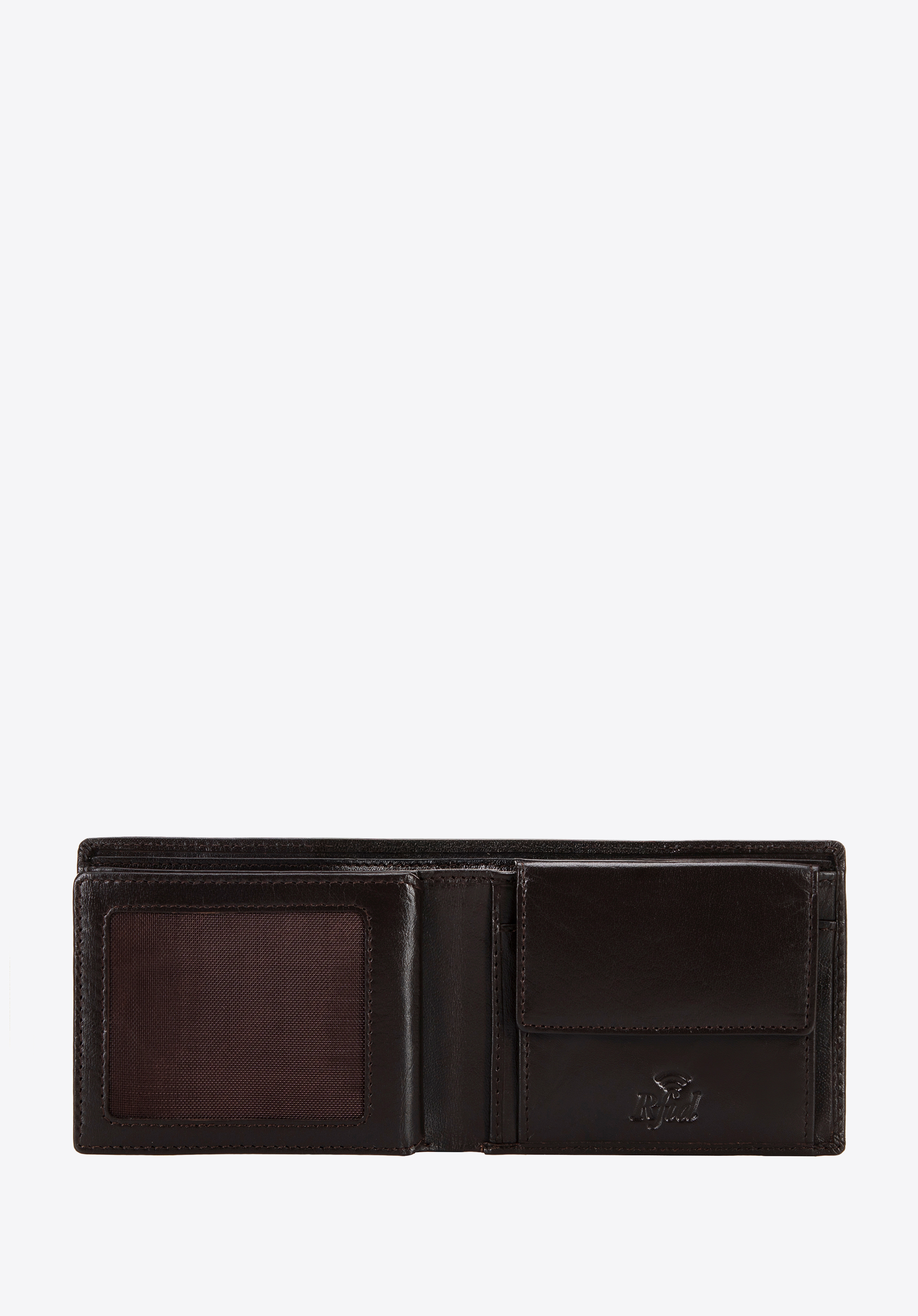 - Praktyczna organizacja: Wyposażony w 2 przestronne kieszenie na banknoty oraz kieszeń na bilon zapinaną na napę, która zabezpiecza monety przed wypadnięciem.