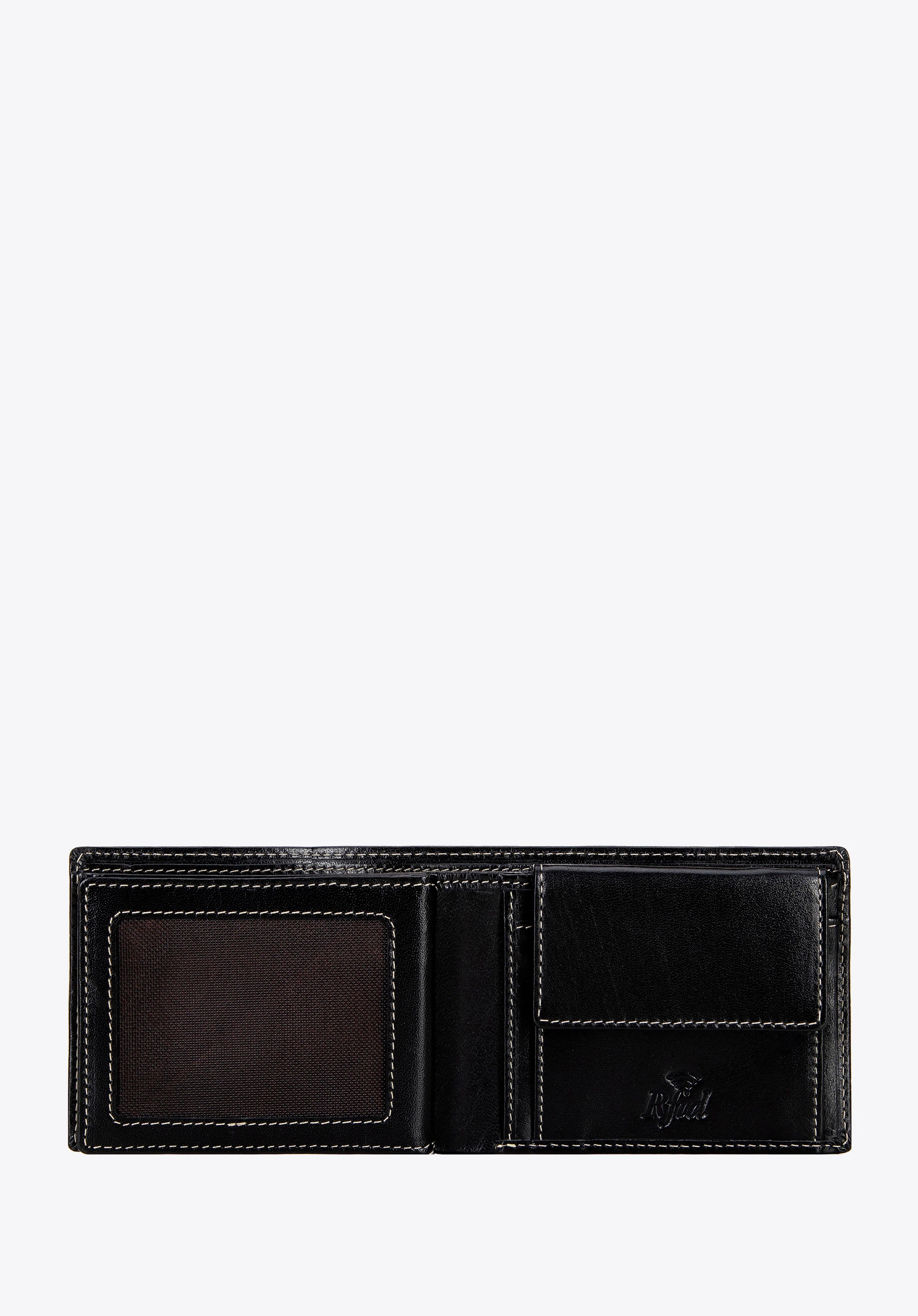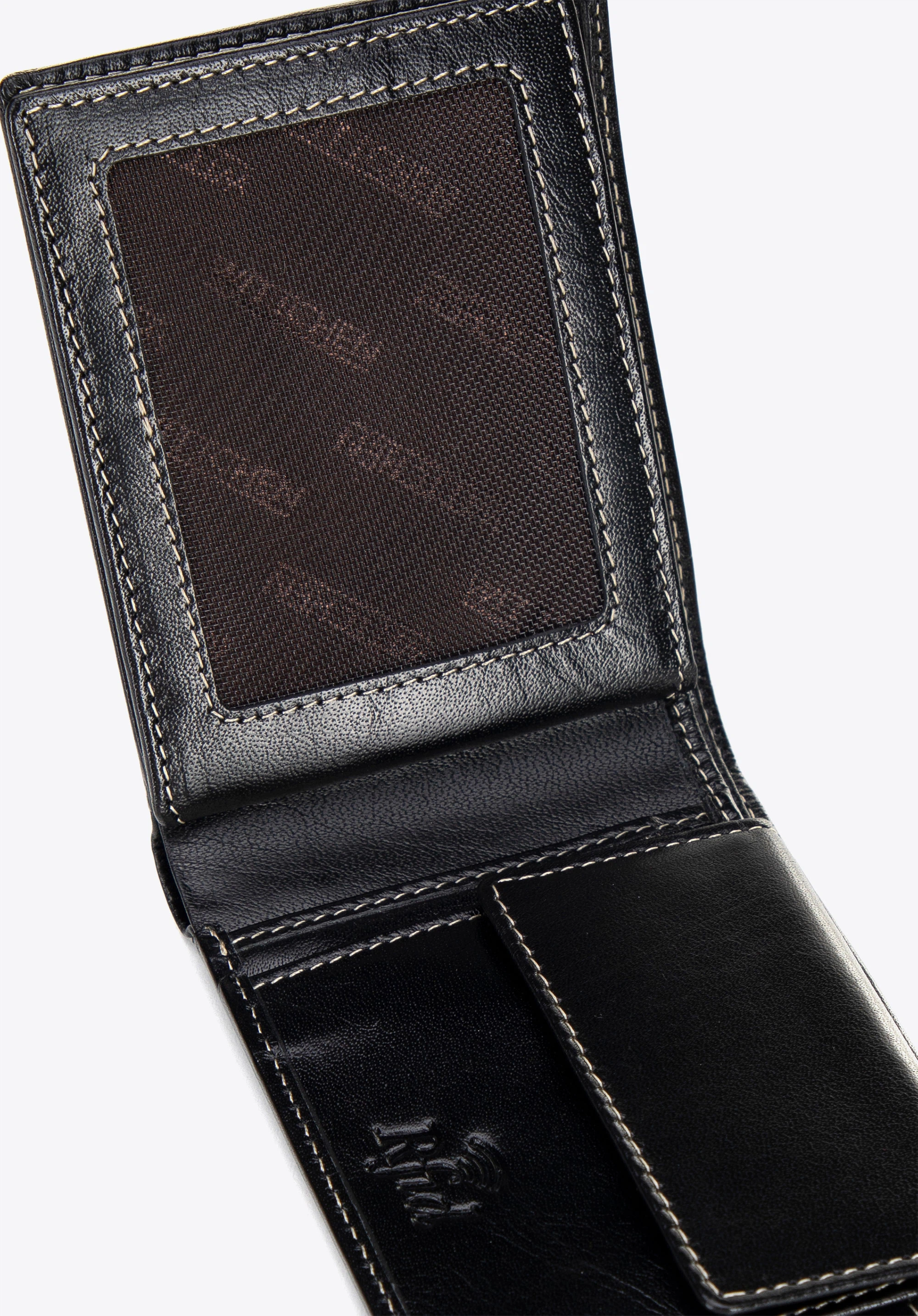 - Praktyczna organizacja: Wyposażony w 2 przestronne kieszenie na banknoty oraz kieszeń na bilon zapinaną na napę, która zabezpiecza monety przed wypadnięciem.