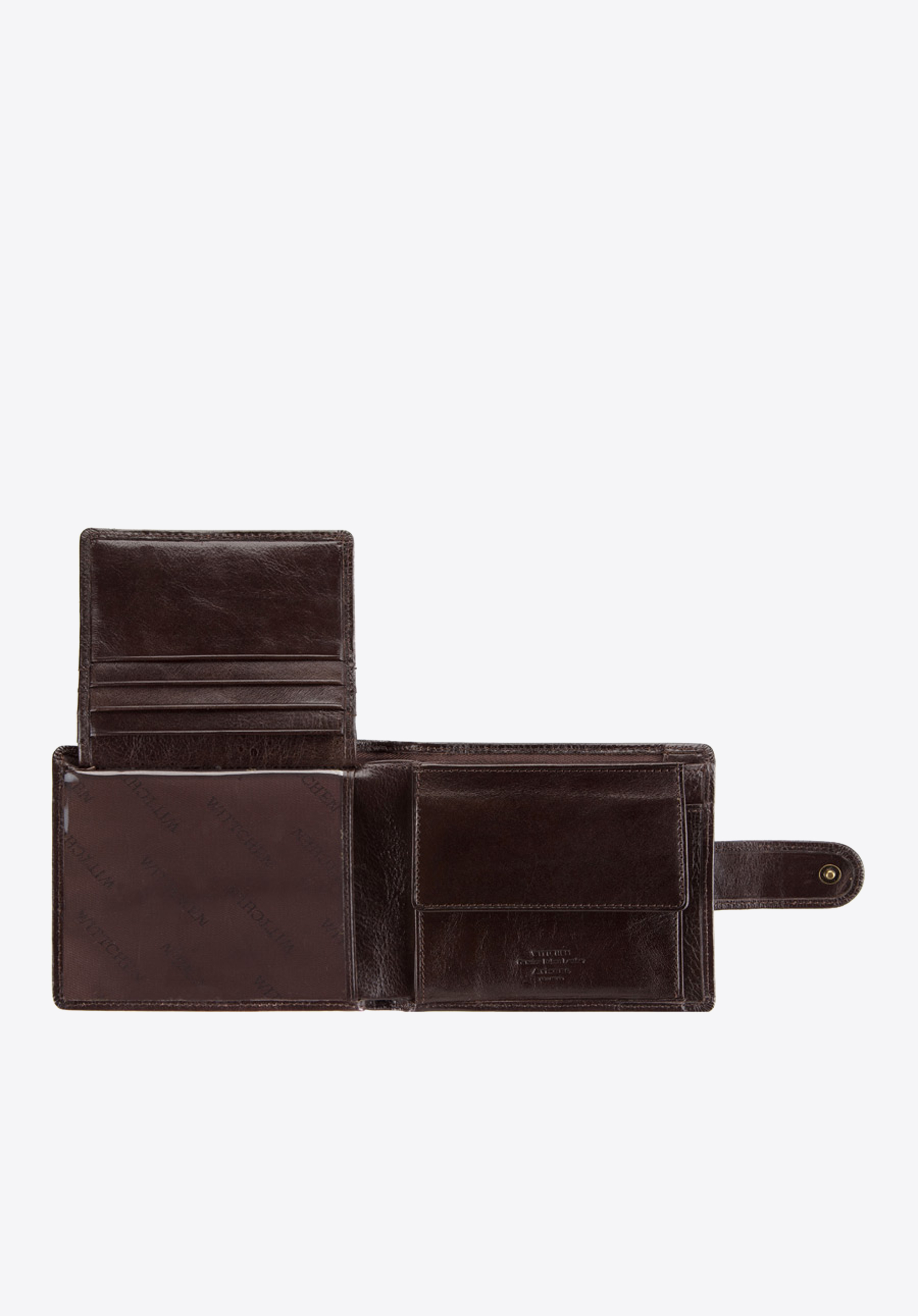 Elegancki portfel z kolekcji Arizona ozdobiony herbem WITTCHEN w kolorze starego złota to wyjątkowy dodatek, który z pewnością przyciągnie uwagę. Dzięki estetyce oraz dbałości o każdy szczegół wykonania, ten skórzany portfel doskonale sprawdzi się w rękach mężczyzn, którzy cenią elegancję i styl.