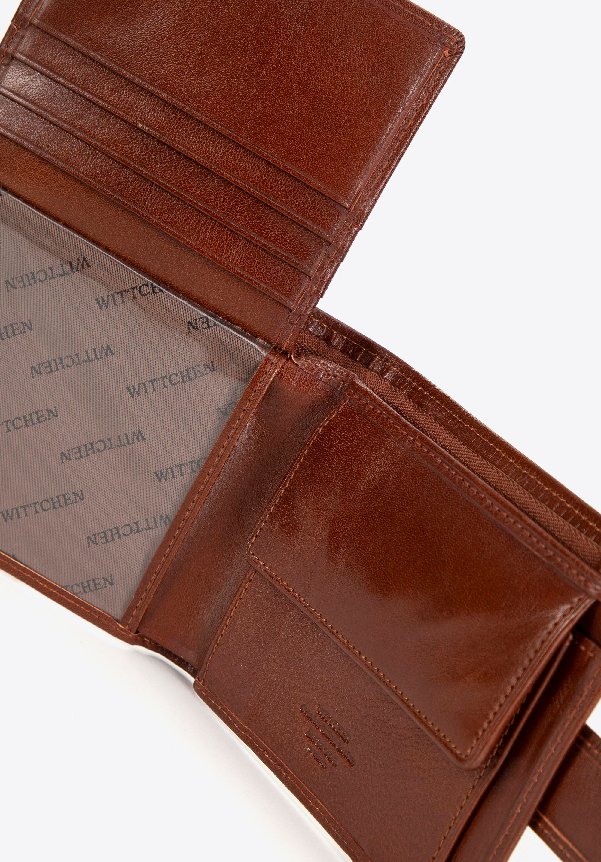 Elegancki portfel z kolekcji Arizona ozdobiony herbem WITTCHEN w kolorze starego złota to wyjątkowy dodatek, który z pewnością przyciągnie uwagę. Dzięki estetyce oraz dbałości o każdy szczegół wykonania, ten skórzany portfel doskonale sprawdzi się w rękach mężczyzn, którzy cenią elegancję i styl.