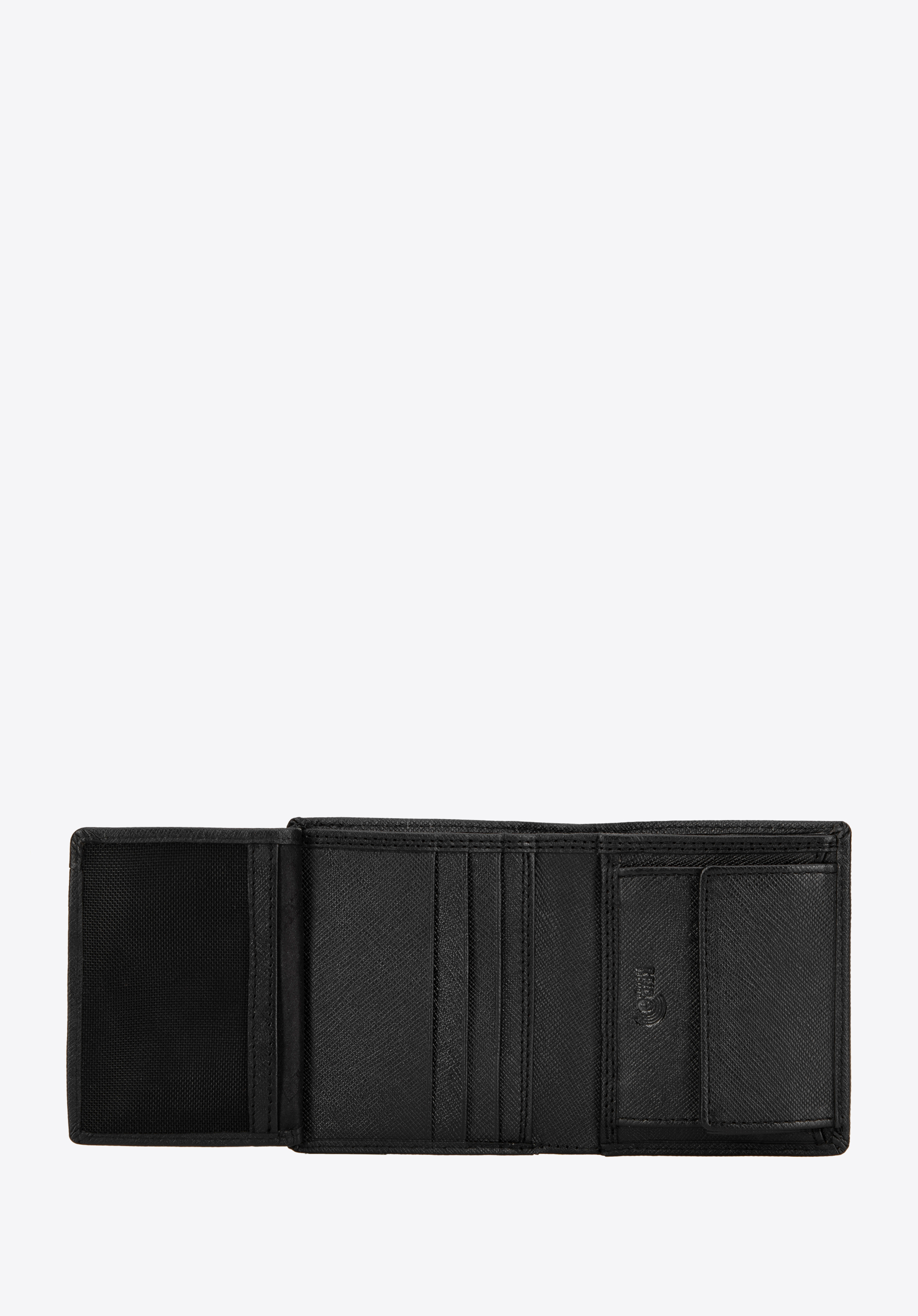 - Przemyślana organizacja: Portfel zawiera dwie kieszenie na banknoty, zapewniając wygodę i porządek, miejsce na bilon zapinane na napę; 5 miejsc na karty kredytowe oraz 3 otwarte kieszenie, w tym jedna z siatki – idealne na dodatkowe dokumenty czy wizytówki.