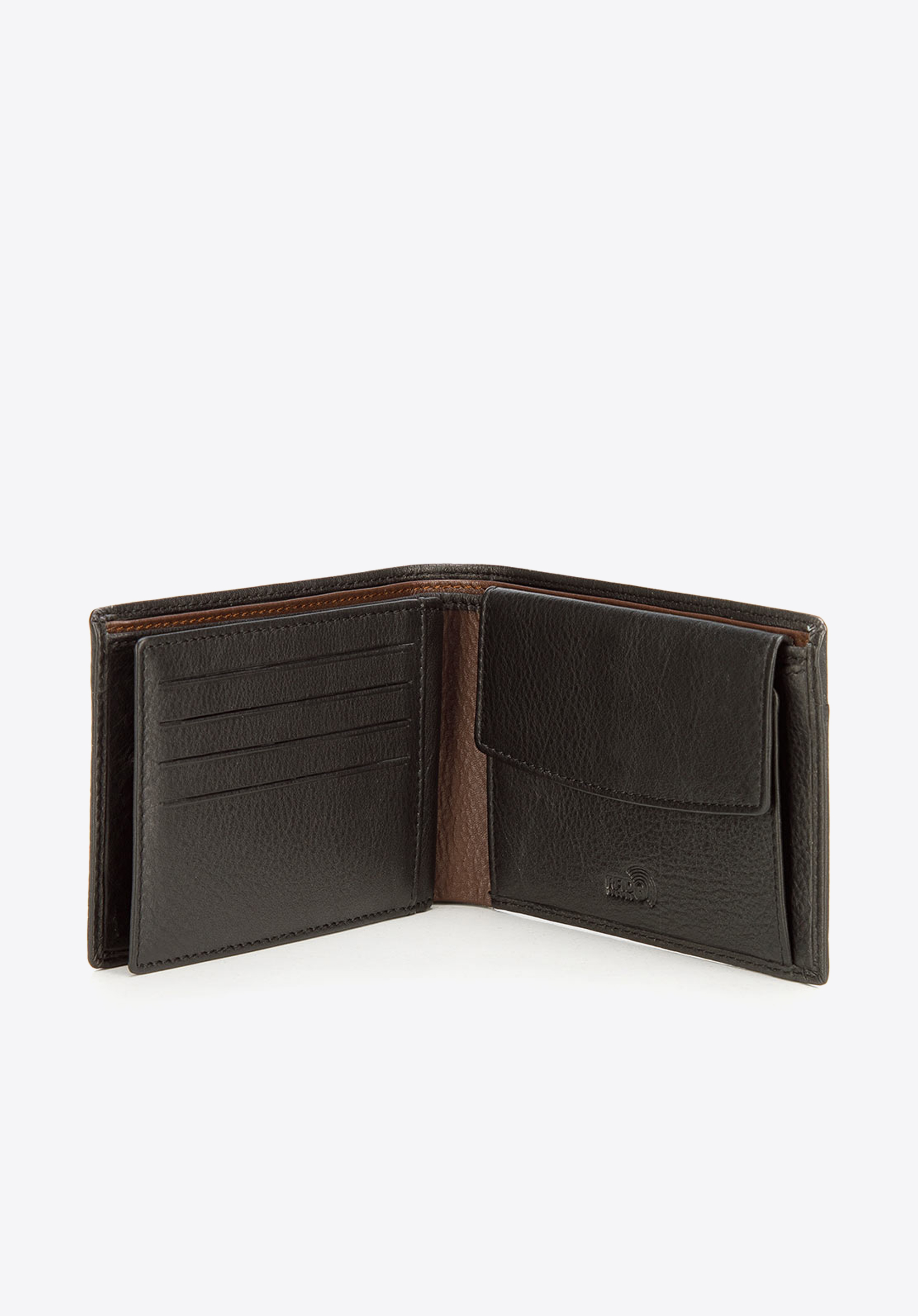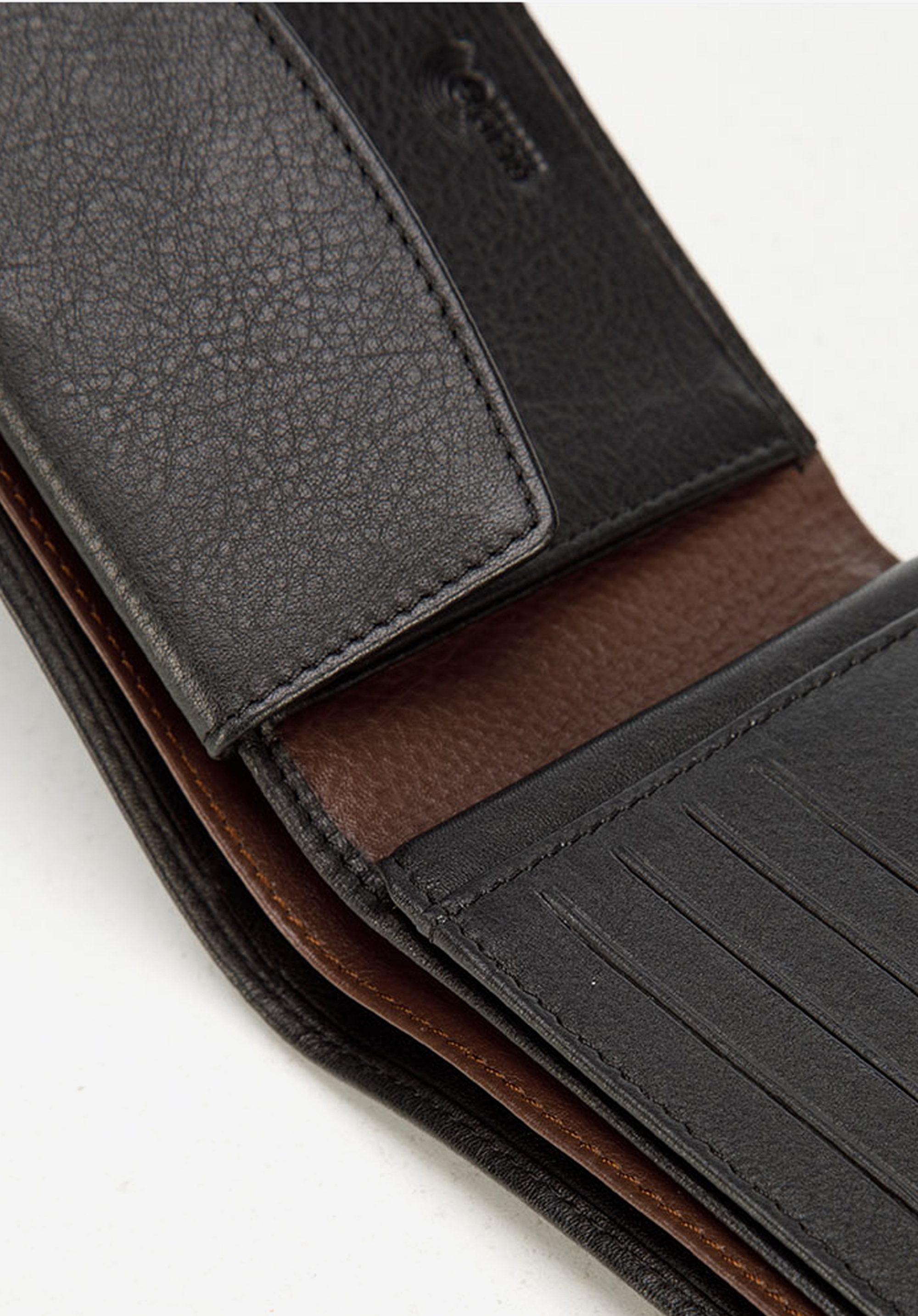 - kolorowe przeszycie i wykończenie wewnątrz portfela;