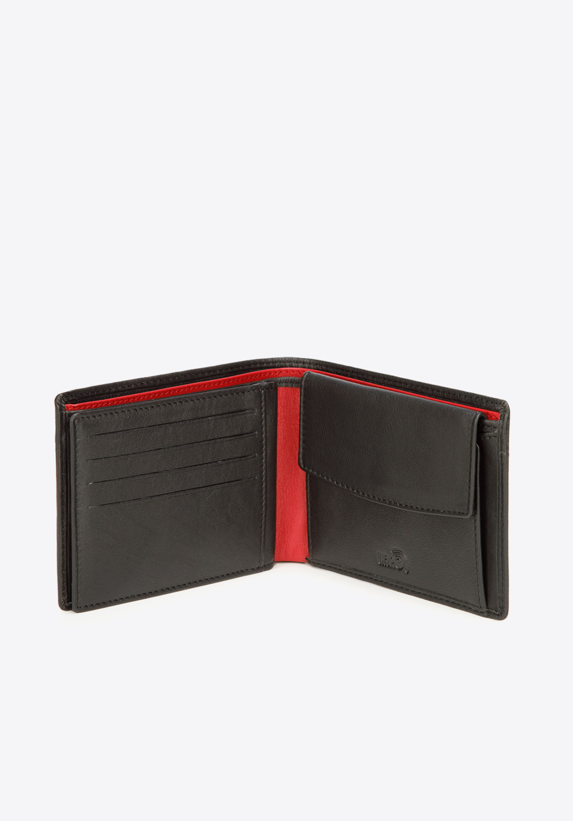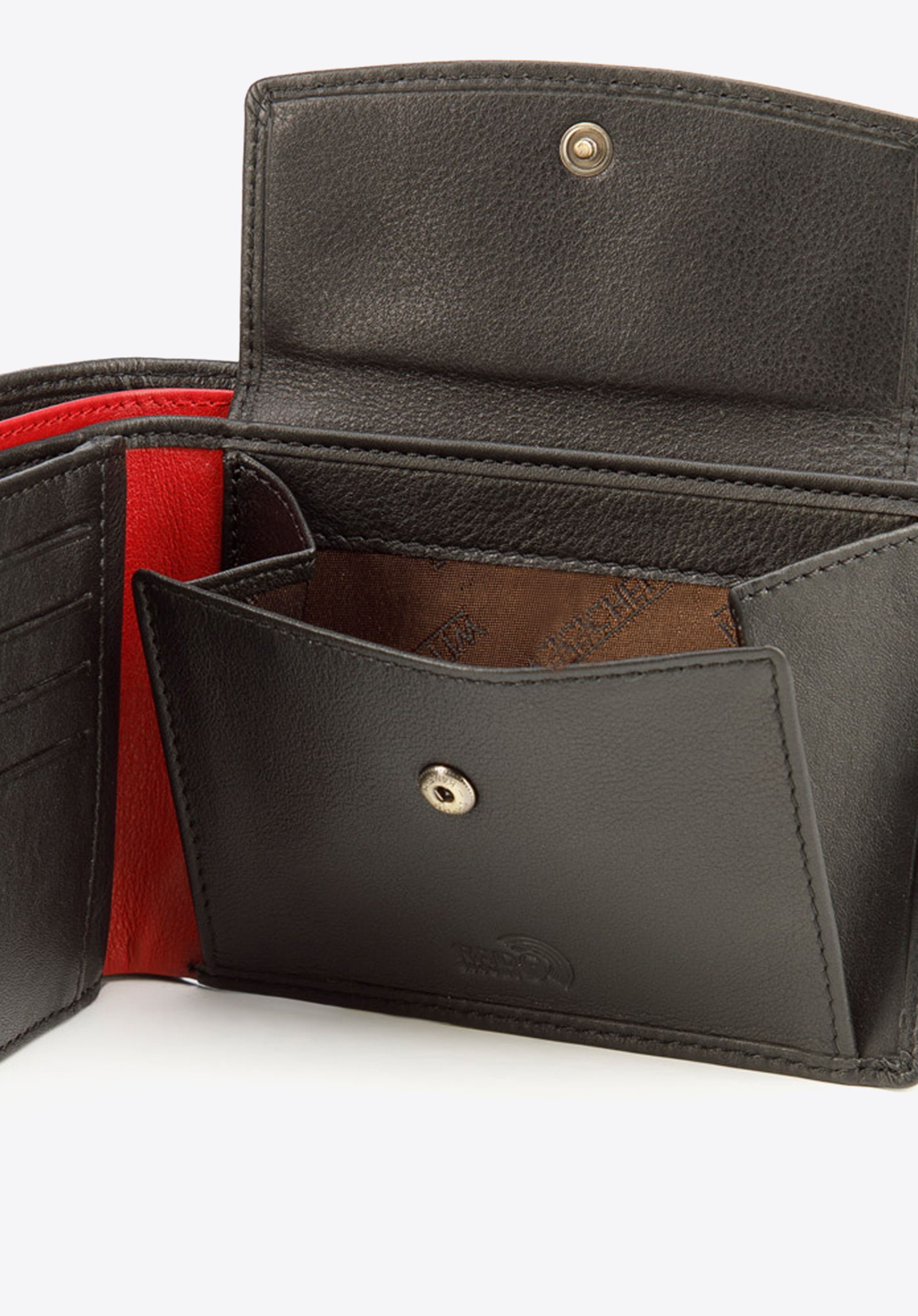 - kolorowe przeszycie i wykończenie wewnątrz portfela;