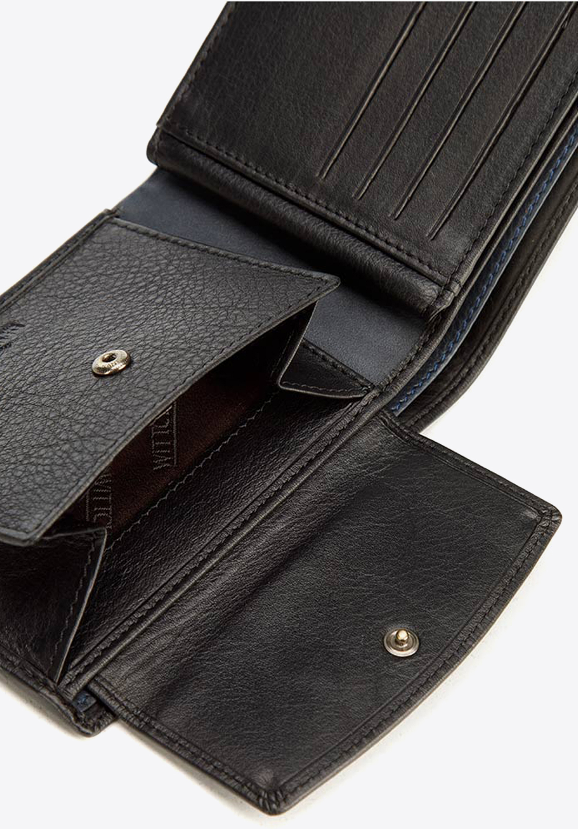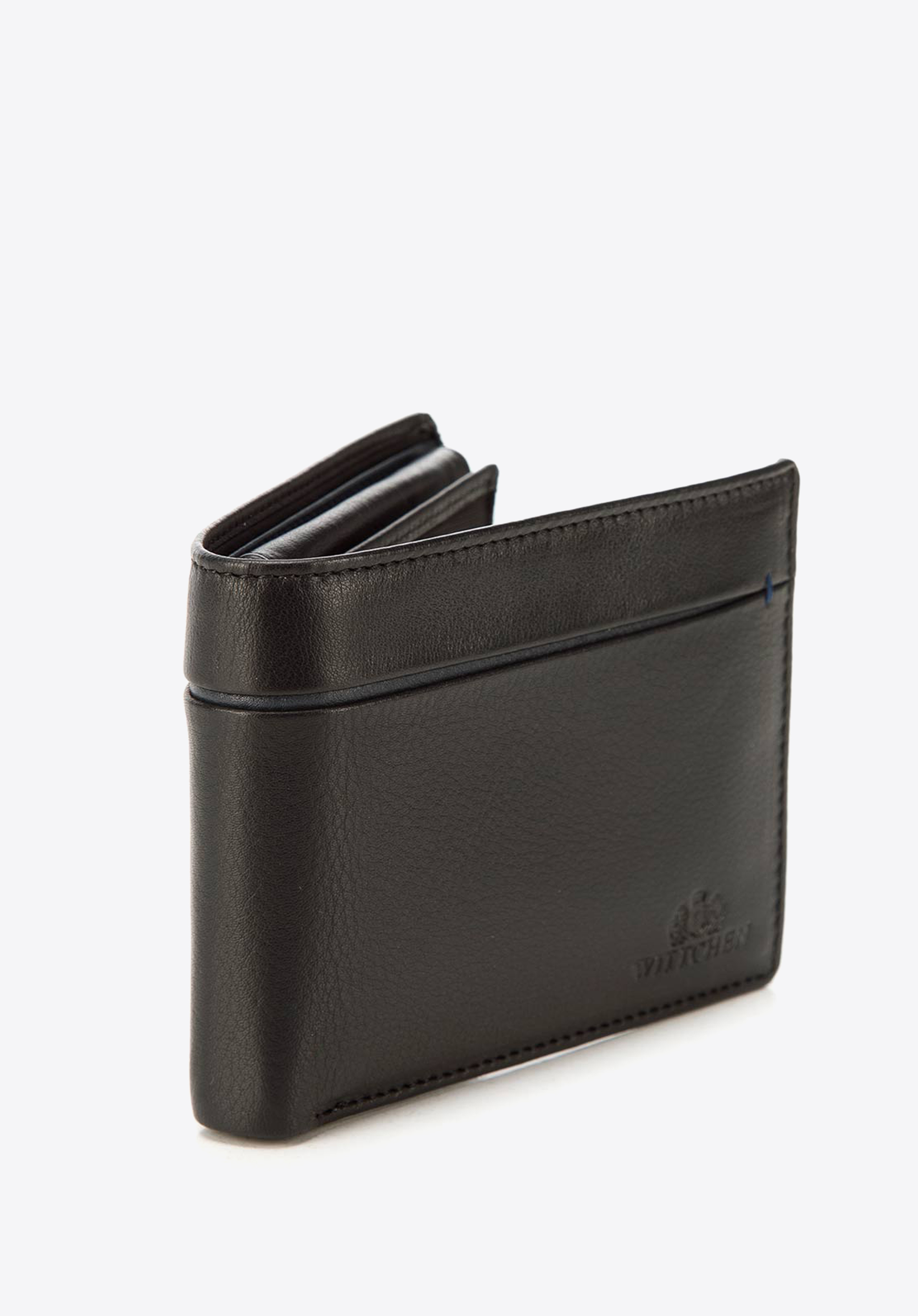 - kolorowe przeszycie i wykończenie wewnątrz portfela;
