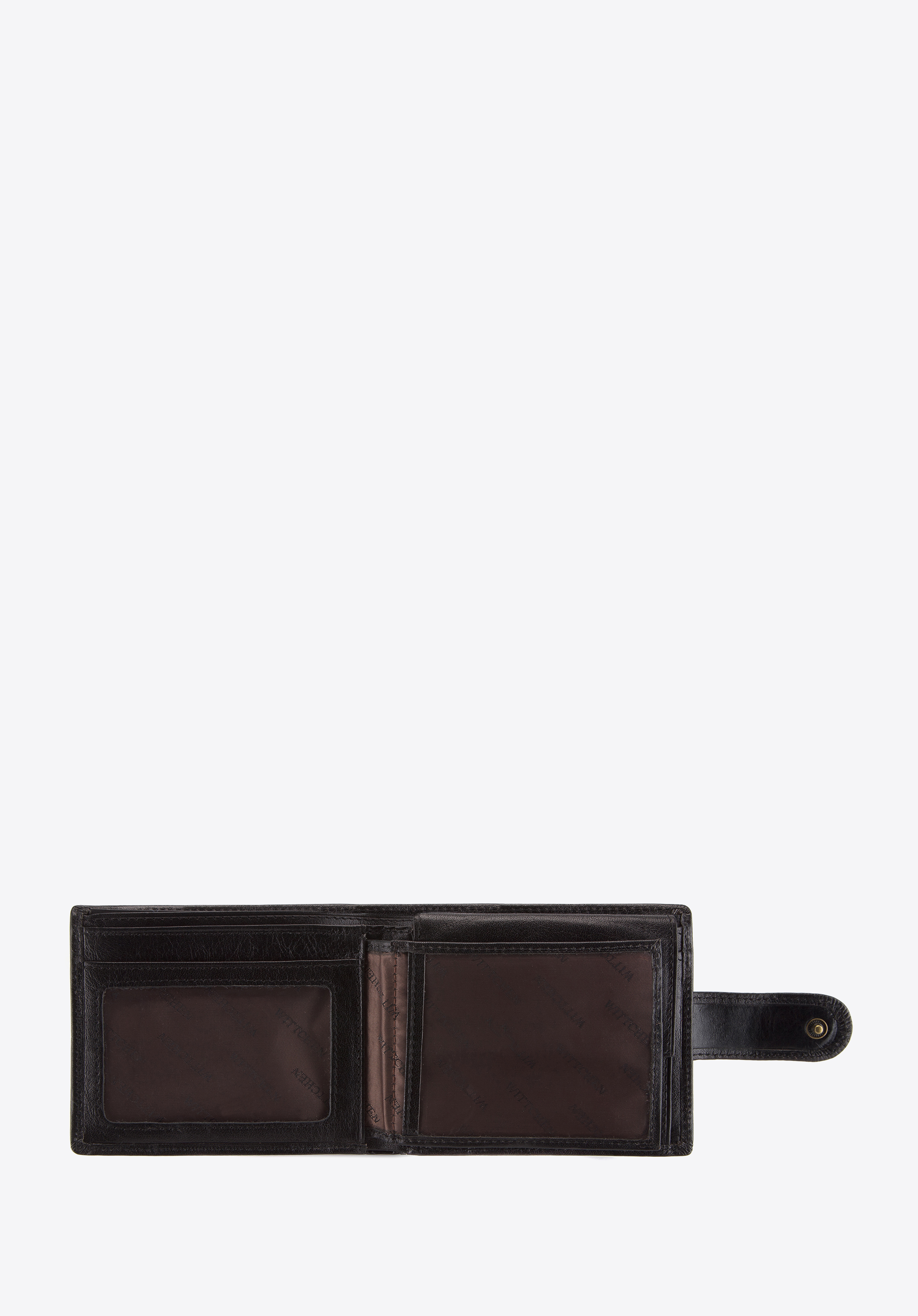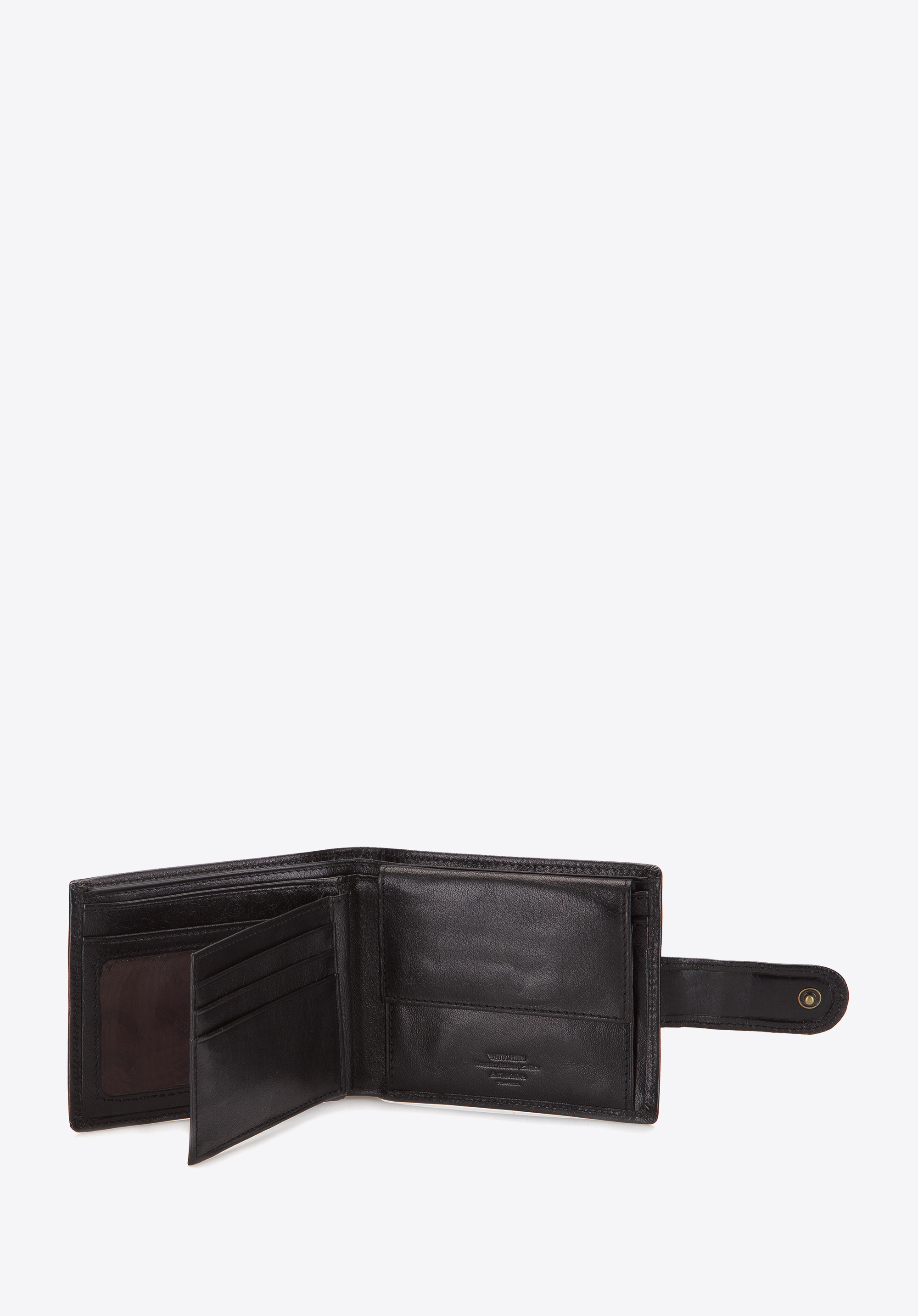 - Przemyślana organizacja: Dwie kieszenie na banknoty, kieszeń na bilon zamykana na napę, cztery kieszenie (w tym dwie przezroczyste) oraz trzy miejsca na karty kredytowe zapewniają łatwy dostęp do najważniejszych dokumentów i pieniędzy.