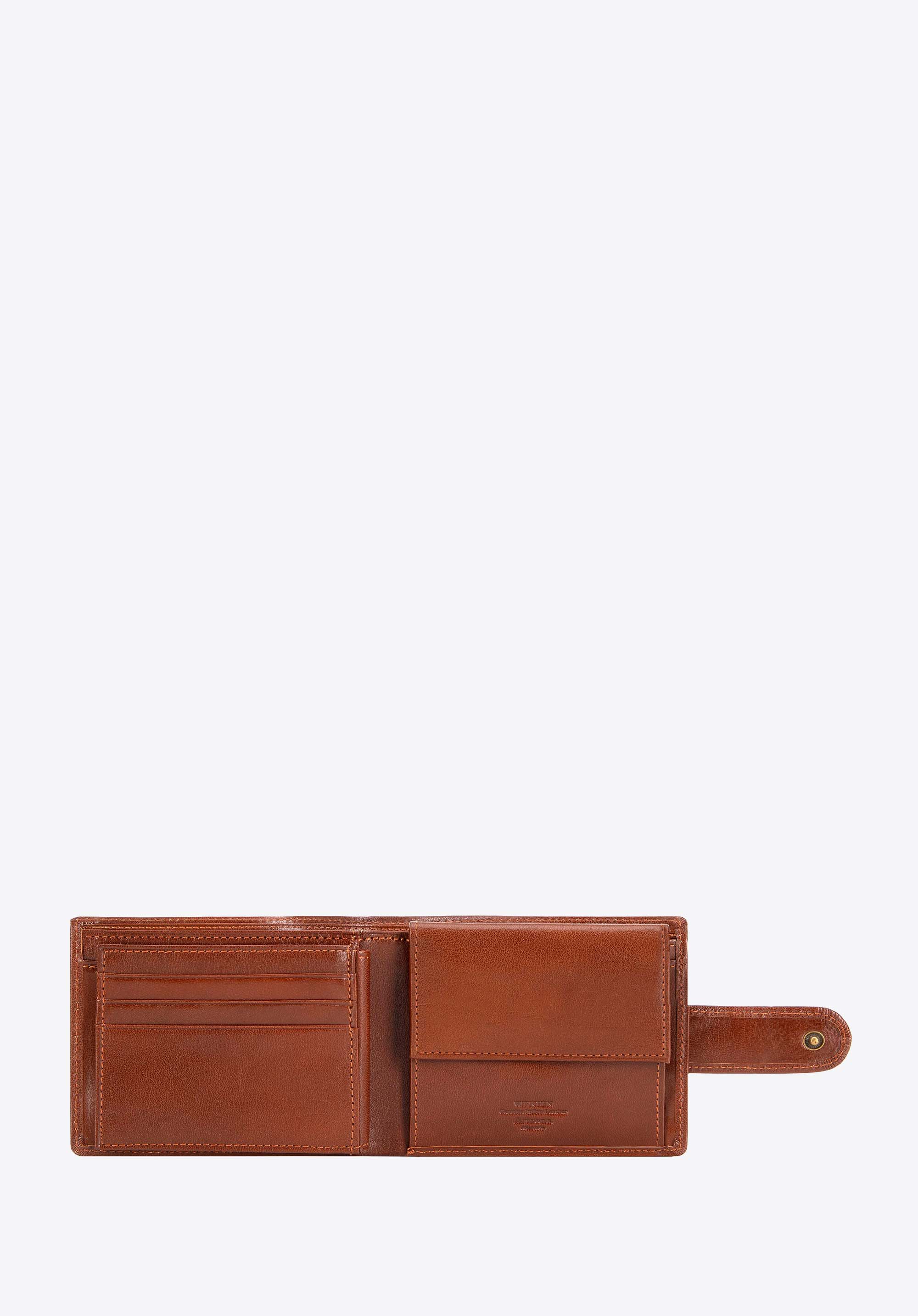 - Luksusowe detale: Metalowa blaszka z herbem WITTCHEN w kolorze starego złota oraz ekskluzywne opakowanie sygnowane logo WITTCHEN podkreślają luksusowy charakter portfela, czyniąc go idealnym prezentem na specjalne okazje.