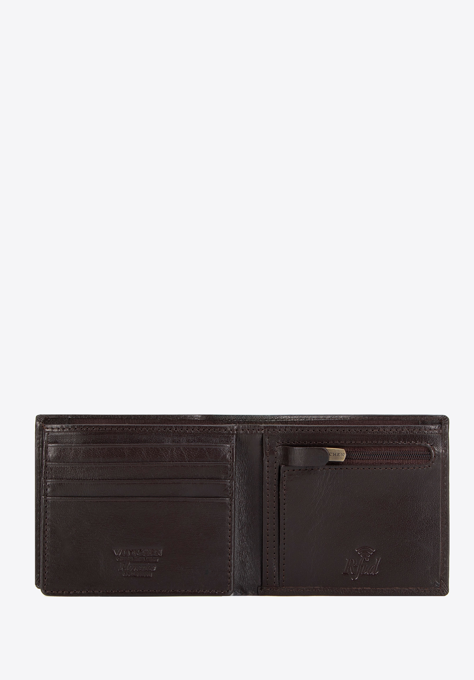 Męski portfel WITTCHEN to elegancki i funkcjonalny wybór, który łączy w sobie wysoką jakość materiałów z precyzyjnym wykonaniem. Został wykonany z miękkiej, ale bardzo trwałej skóry cielęcej, która jest odporna na zarysowania i codzienne zużycie. Portfel oferuje szeroką przestronność — dwie kieszenie na banknoty, w tym jedną zamykaną na suwak dla dodatkowego bezpieczeństwa, oraz kieszeń na bilon z zamknięciem na suwak.