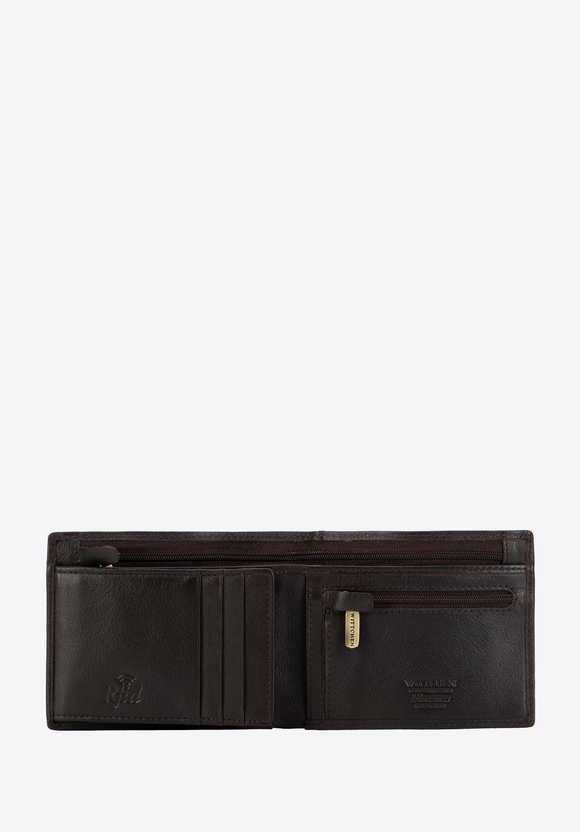 - Bezpieczne miejsce na bilon: Zamykana na suwak kieszeń na bilon zabezpiecza monety przed wypadaniem, zwiększając codzienną funkcjonalność portfela.