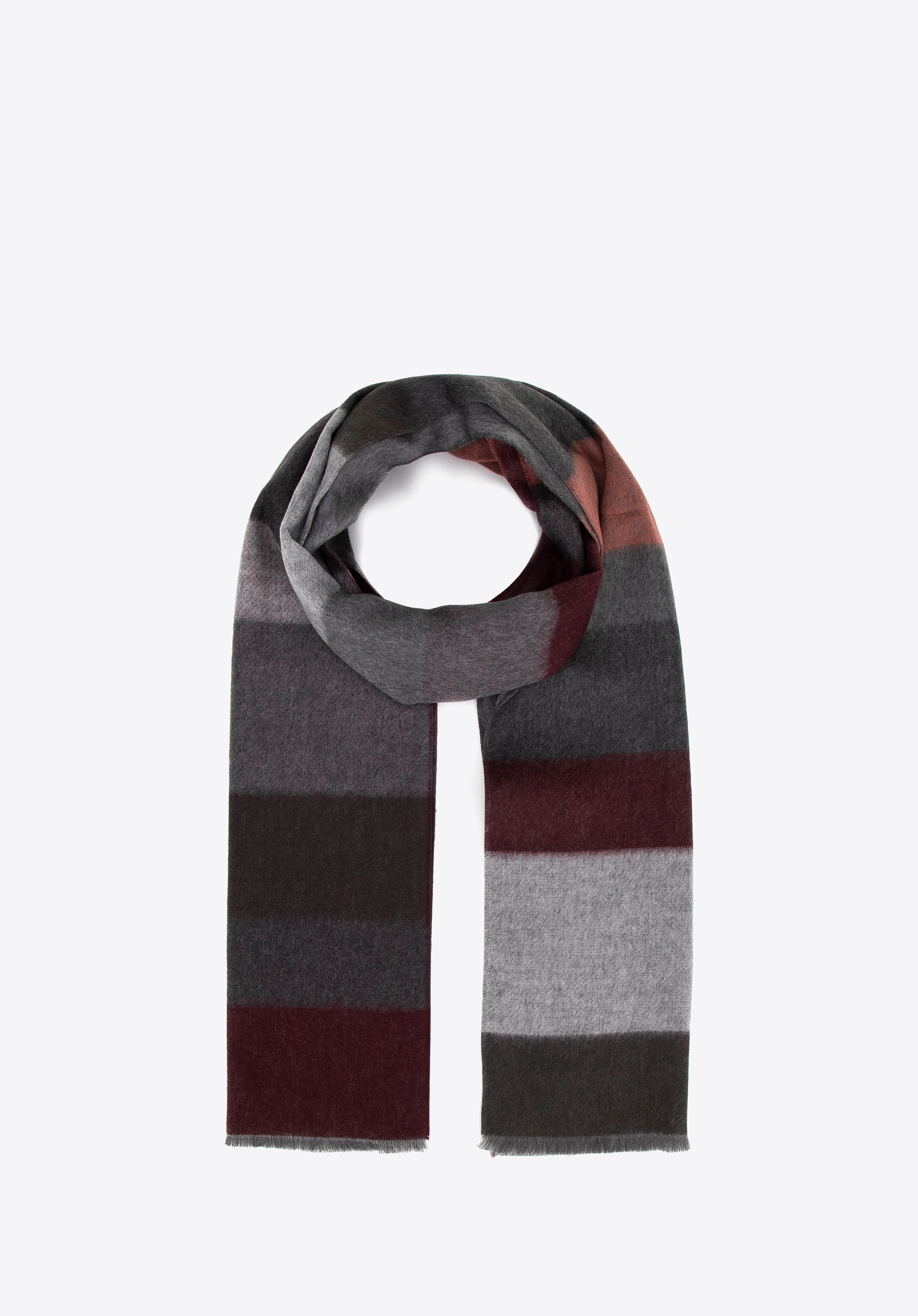 - Design: Klasyczny wzór w pasy, który nadaje elegancji i sprawia, że szal pasuje do różnych stylizacji – zarówno casualowych, jak i bardziej formalnych.
