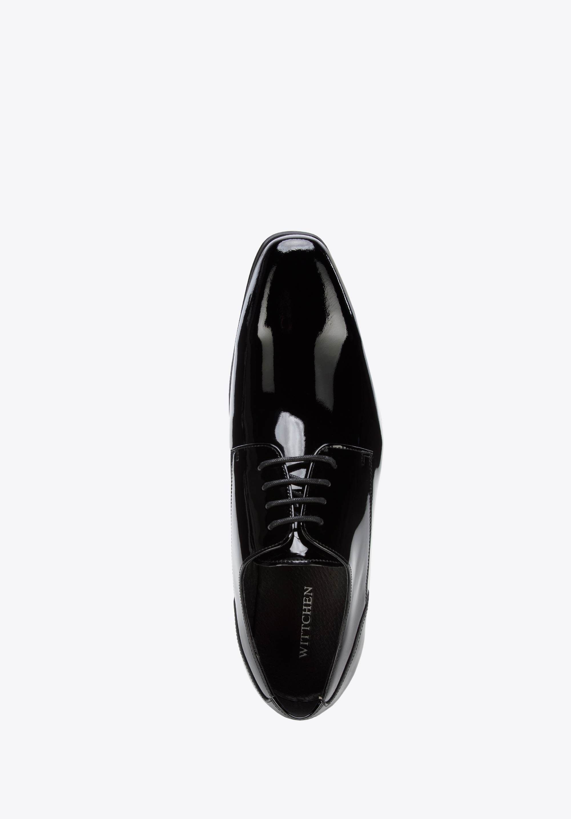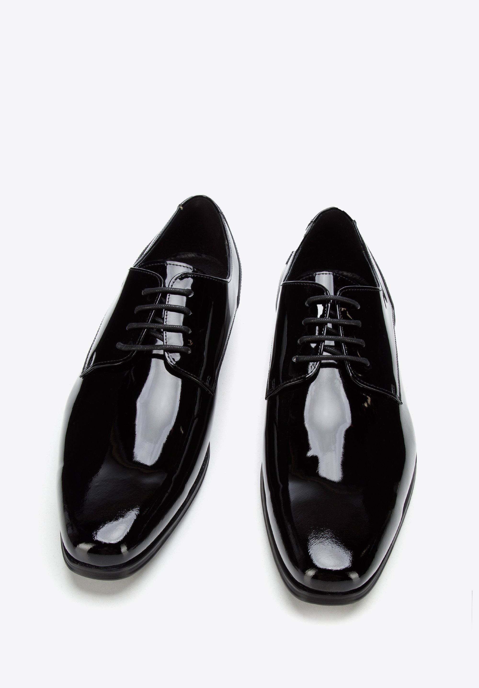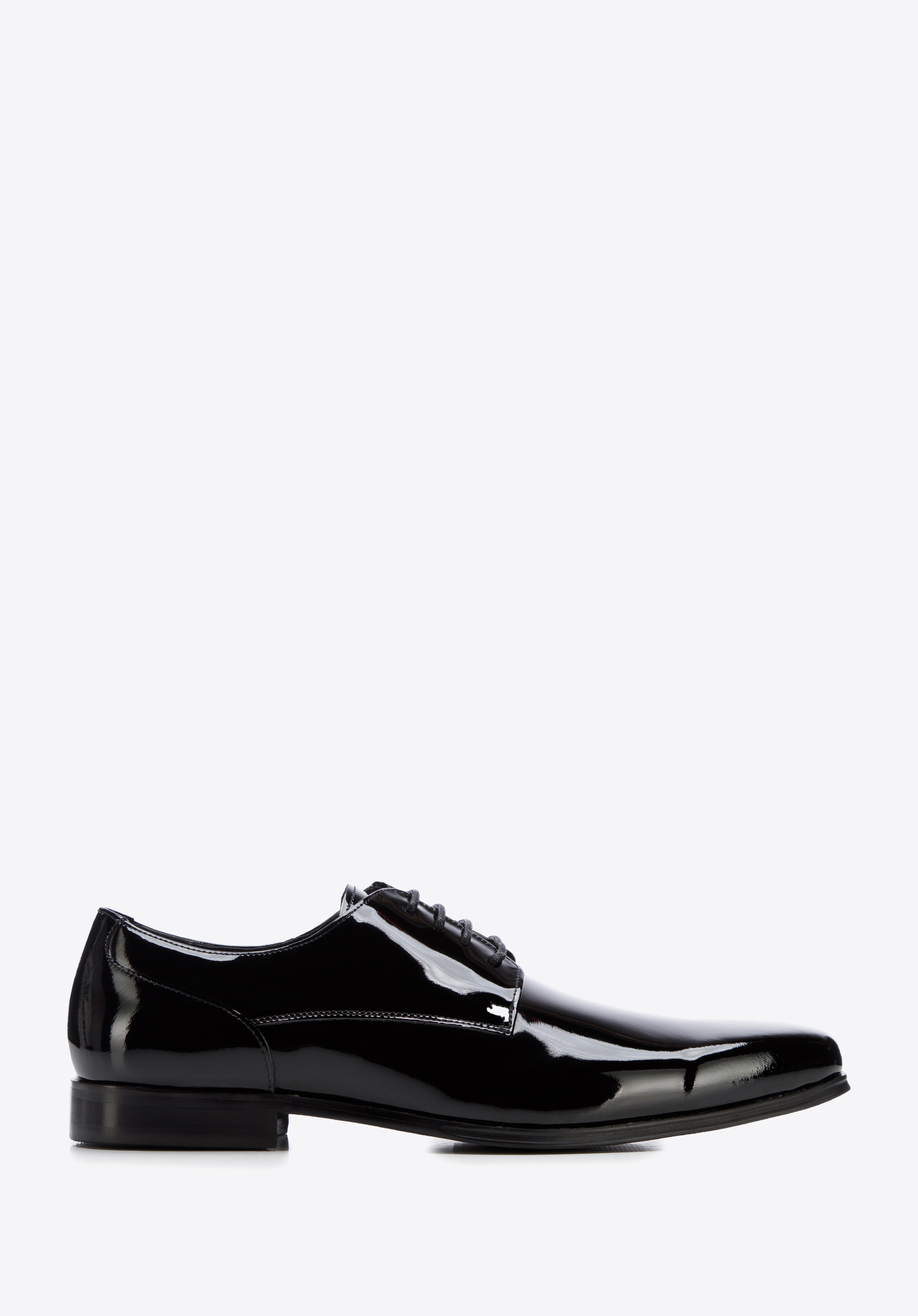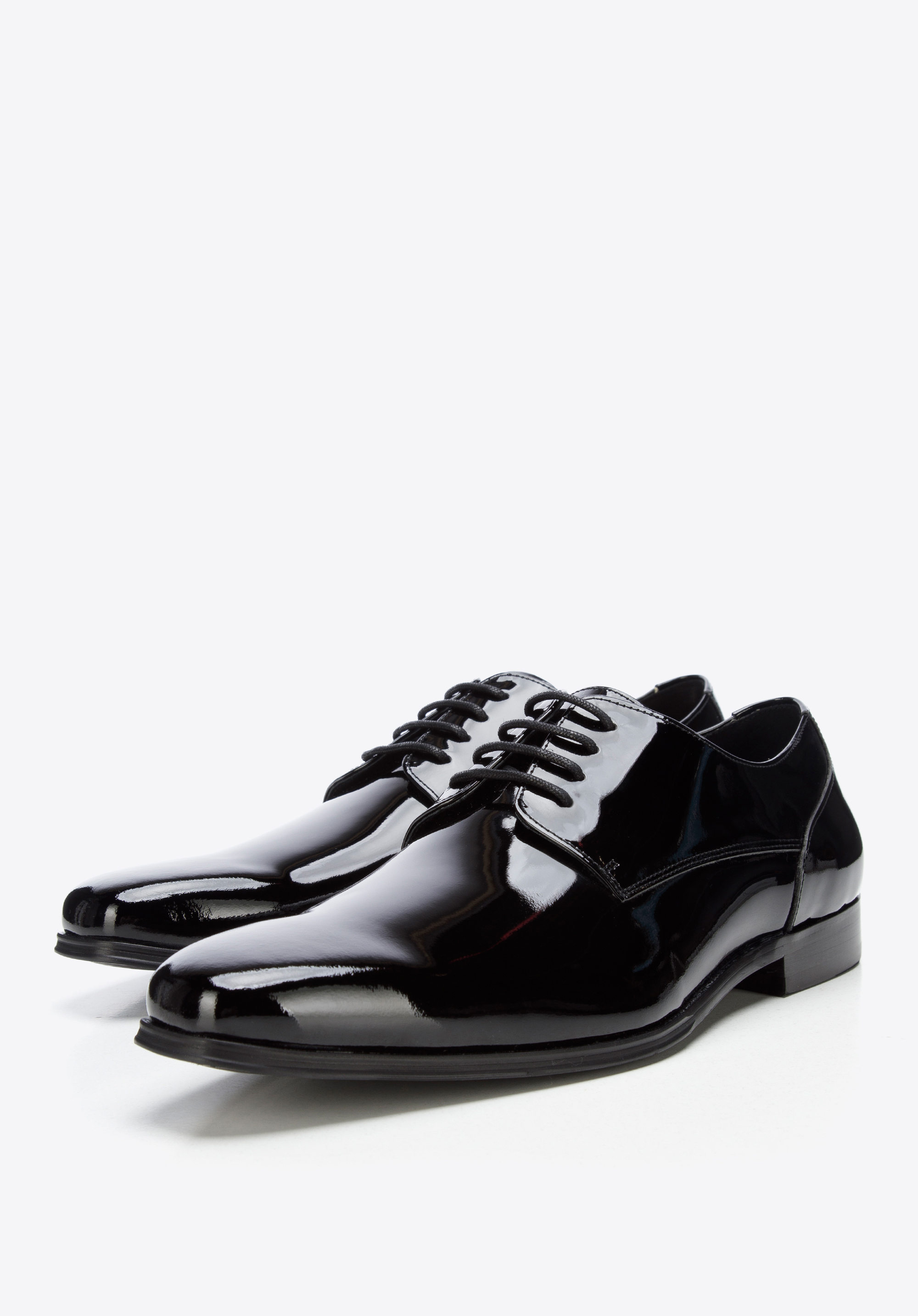 wydłużony nosek wysmukli stopę i nada sylwetce właściwych proporcji. Proste męskie derby lakierowane to ponadczasowy dodatek, który warto mieć w swojej szafie.