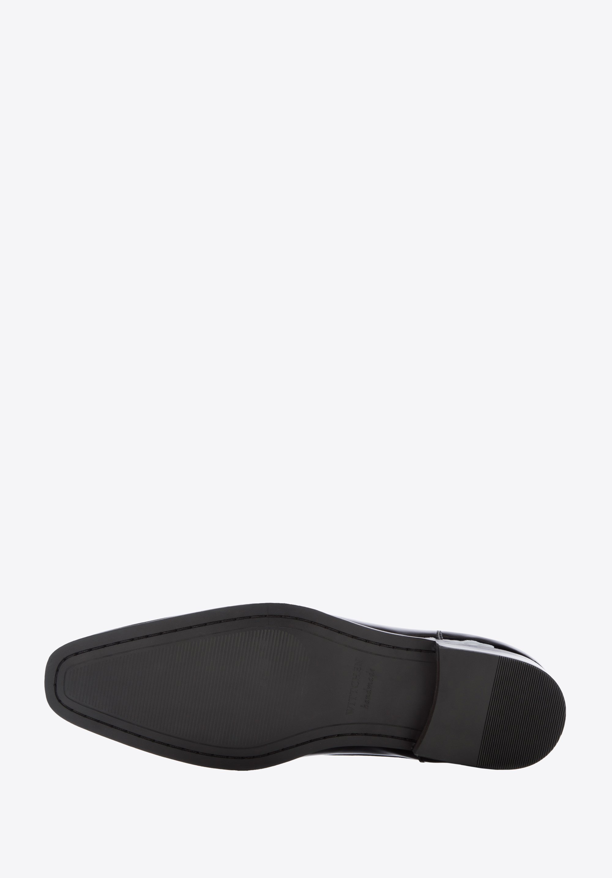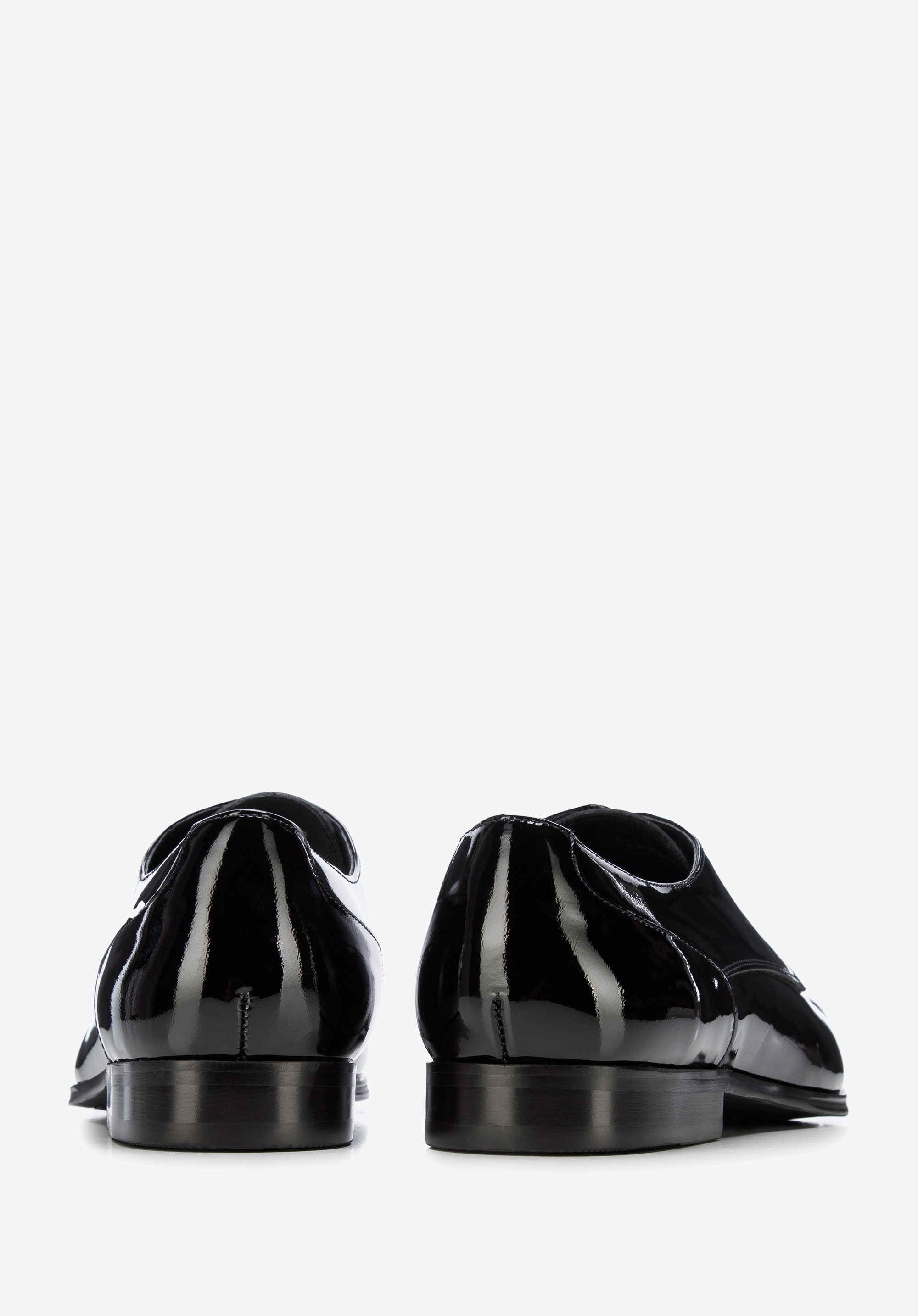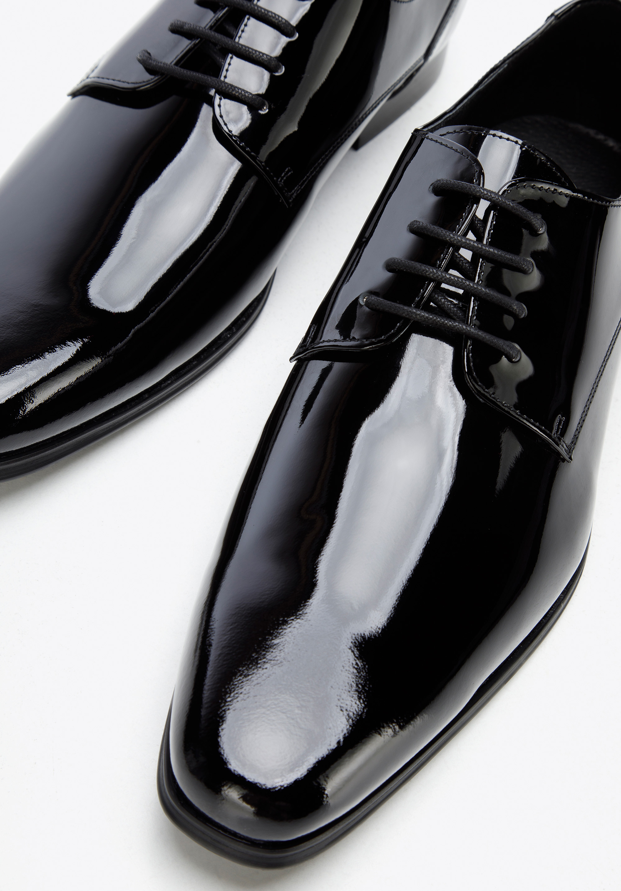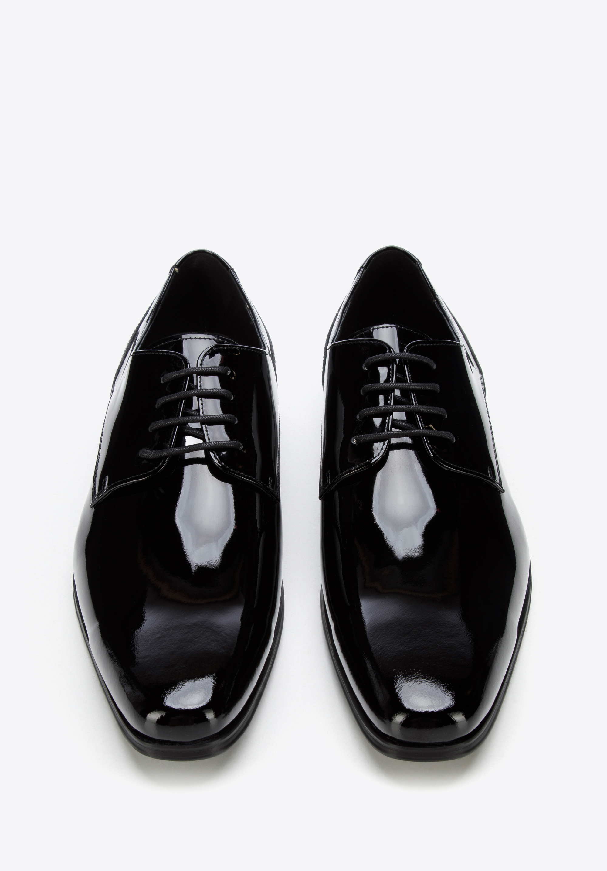 wydłużony nosek wysmukli stopę i nada sylwetce właściwych proporcji. Proste męskie derby lakierowane to ponadczasowy dodatek, który warto mieć w swojej szafie.