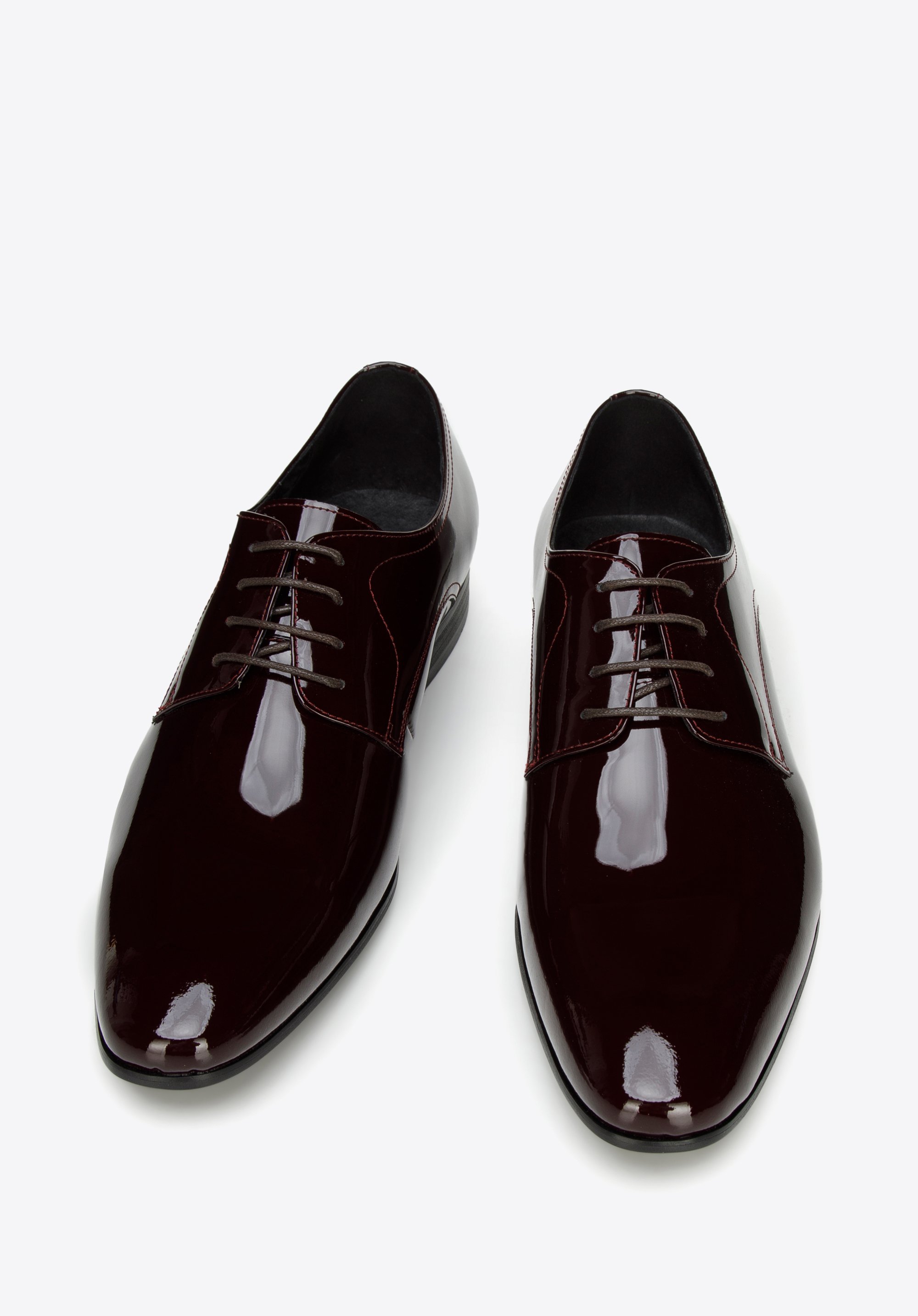 lekko wydłużony, migdałowy nosek i prosty fason, który wysmukla stopę. Dzięki skórzanej wkładce i miękkiej wyściółce komfortowo przechodzisz i przetańczysz w nich wiele godzin. Męskie buty derby z lakierowanej skóry będą świetnie wyglądały z garniturem, który założysz na wesele znajomych lub spotkanie biznesowe. Ten ponadczasowy model zawsze będzie na czasie.