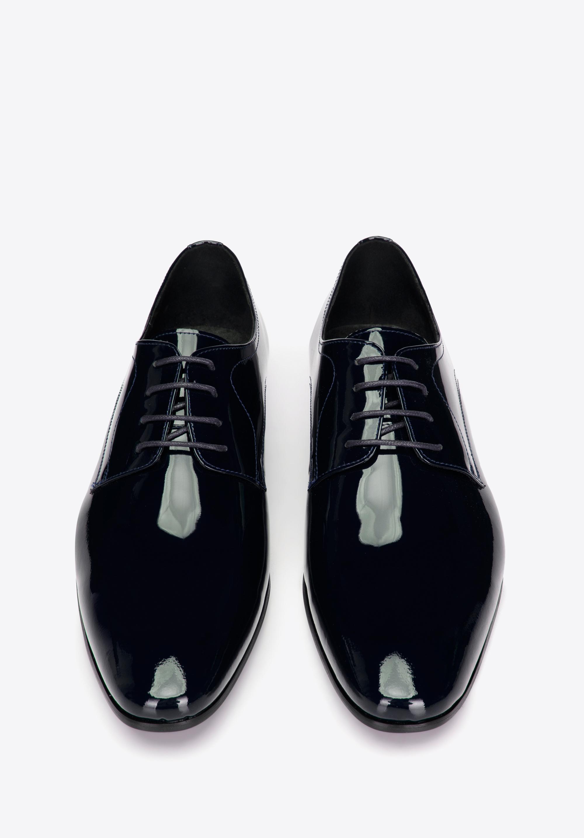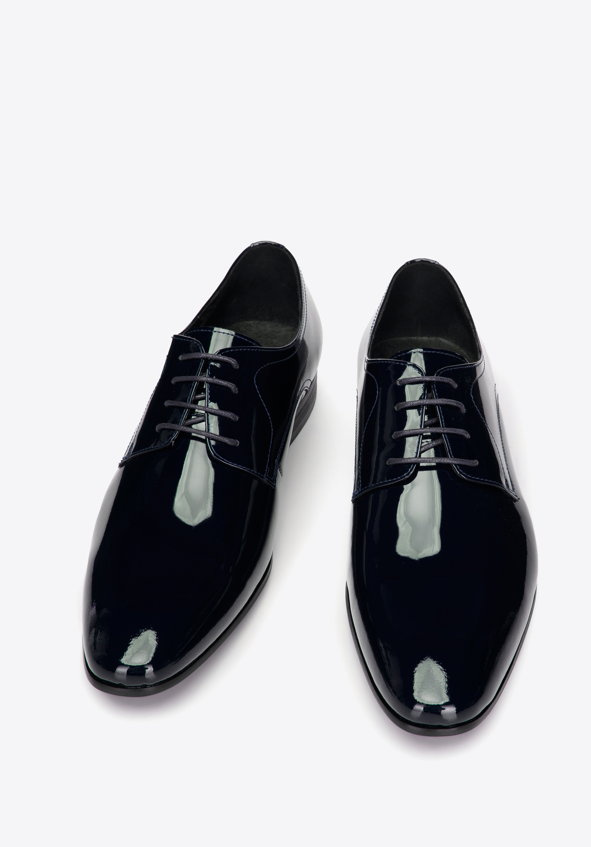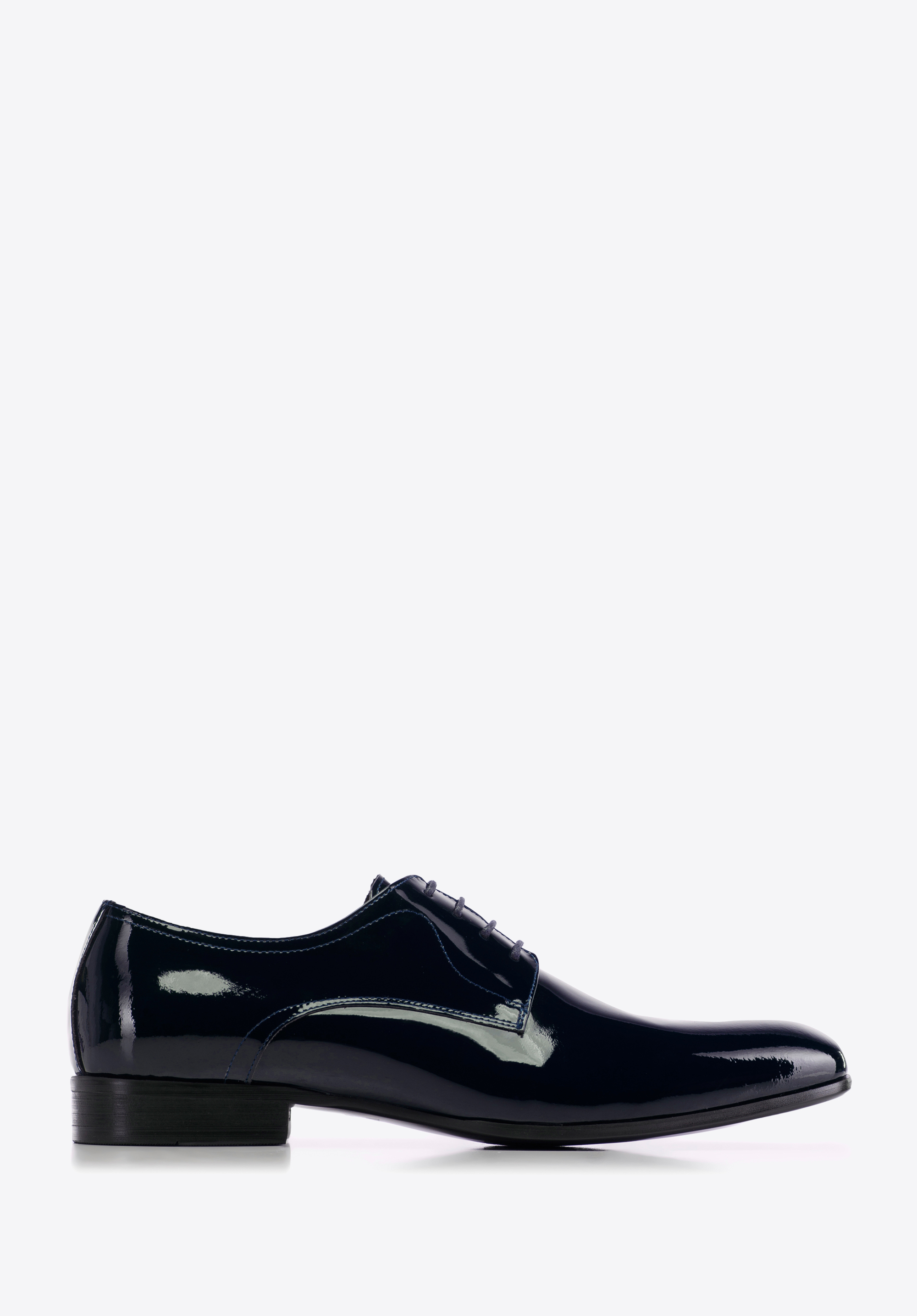 lekko wydłużony, migdałowy nosek i prosty fason, który wysmukla stopę. Dzięki skórzanej wkładce i miękkiej wyściółce komfortowo przechodzisz i przetańczysz w nich wiele godzin. Męskie buty derby z lakierowanej skóry będą świetnie wyglądały z garniturem, który założysz na wesele znajomych lub spotkanie biznesowe. Ten ponadczasowy model zawsze będzie na czasie.