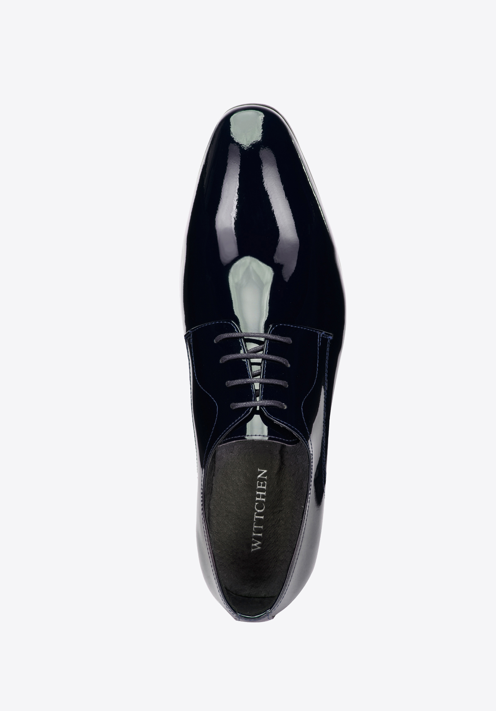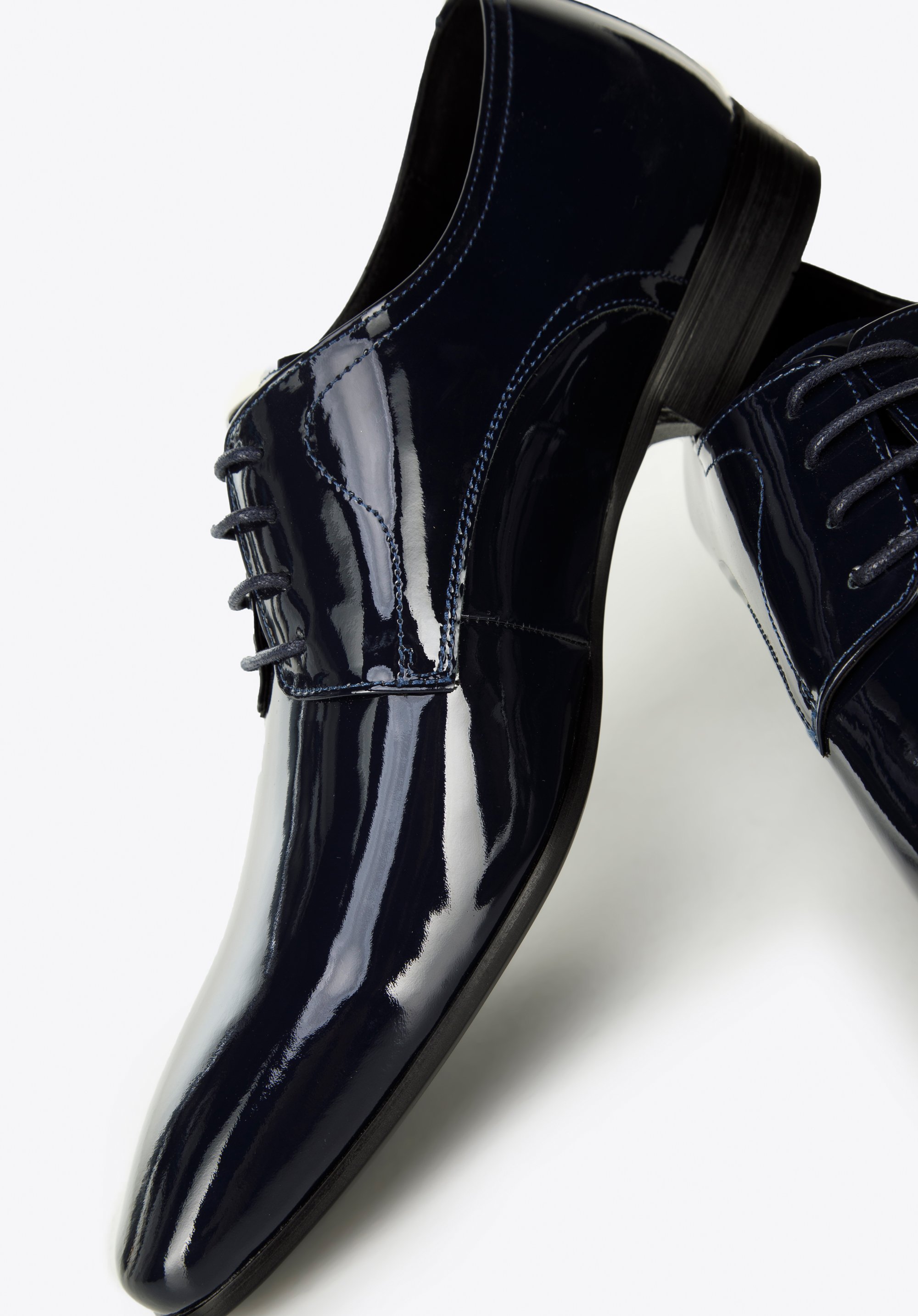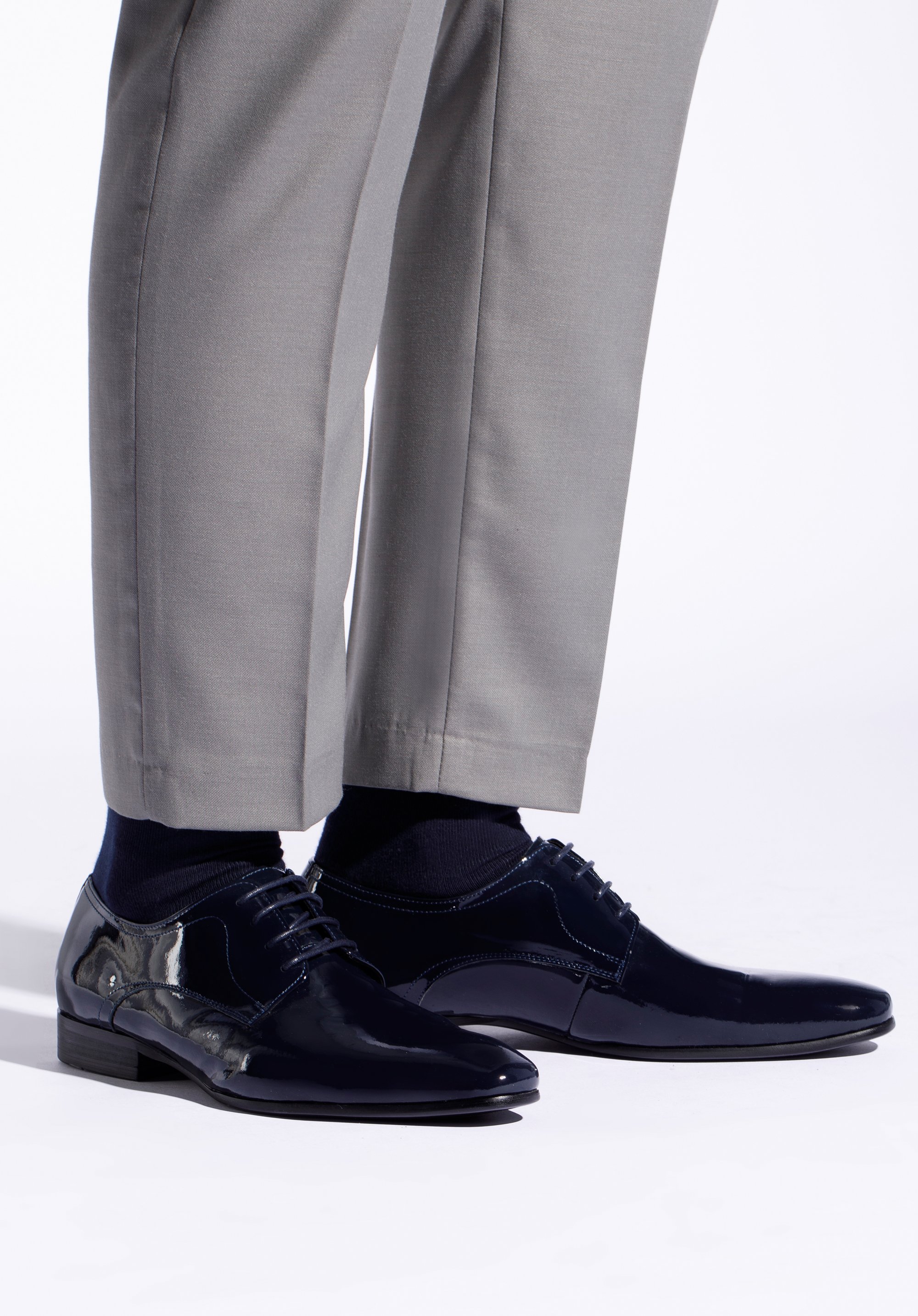 lekko wydłużony, migdałowy nosek i prosty fason, który wysmukla stopę. Dzięki skórzanej wkładce i miękkiej wyściółce komfortowo przechodzisz i przetańczysz w nich wiele godzin. Męskie buty derby z lakierowanej skóry będą świetnie wyglądały z garniturem, który założysz na wesele znajomych lub spotkanie biznesowe. Ten ponadczasowy model zawsze będzie na czasie.