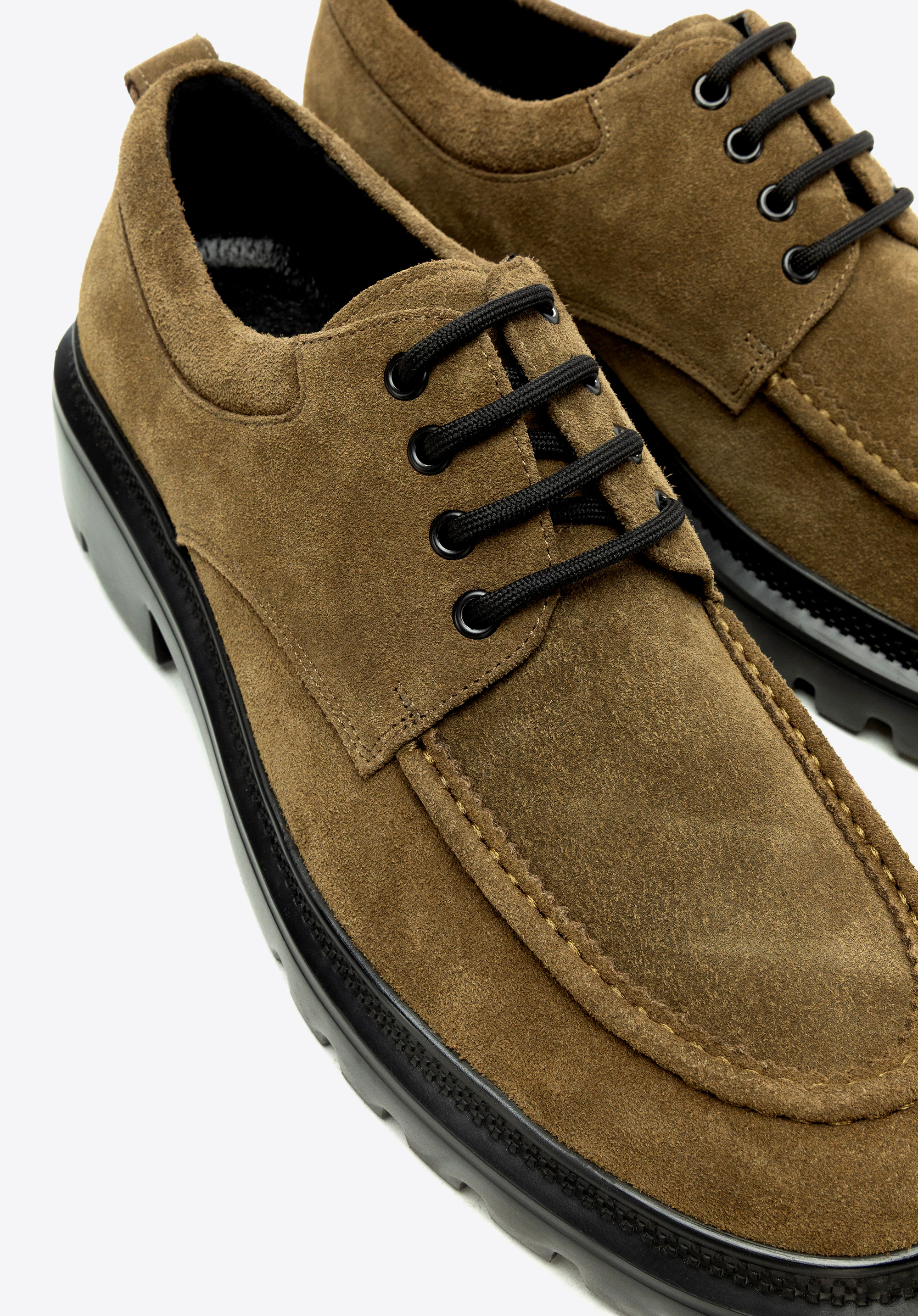 Męskie derby ze skóry zamszowej – elegancja i komfort w codziennym wydaniu