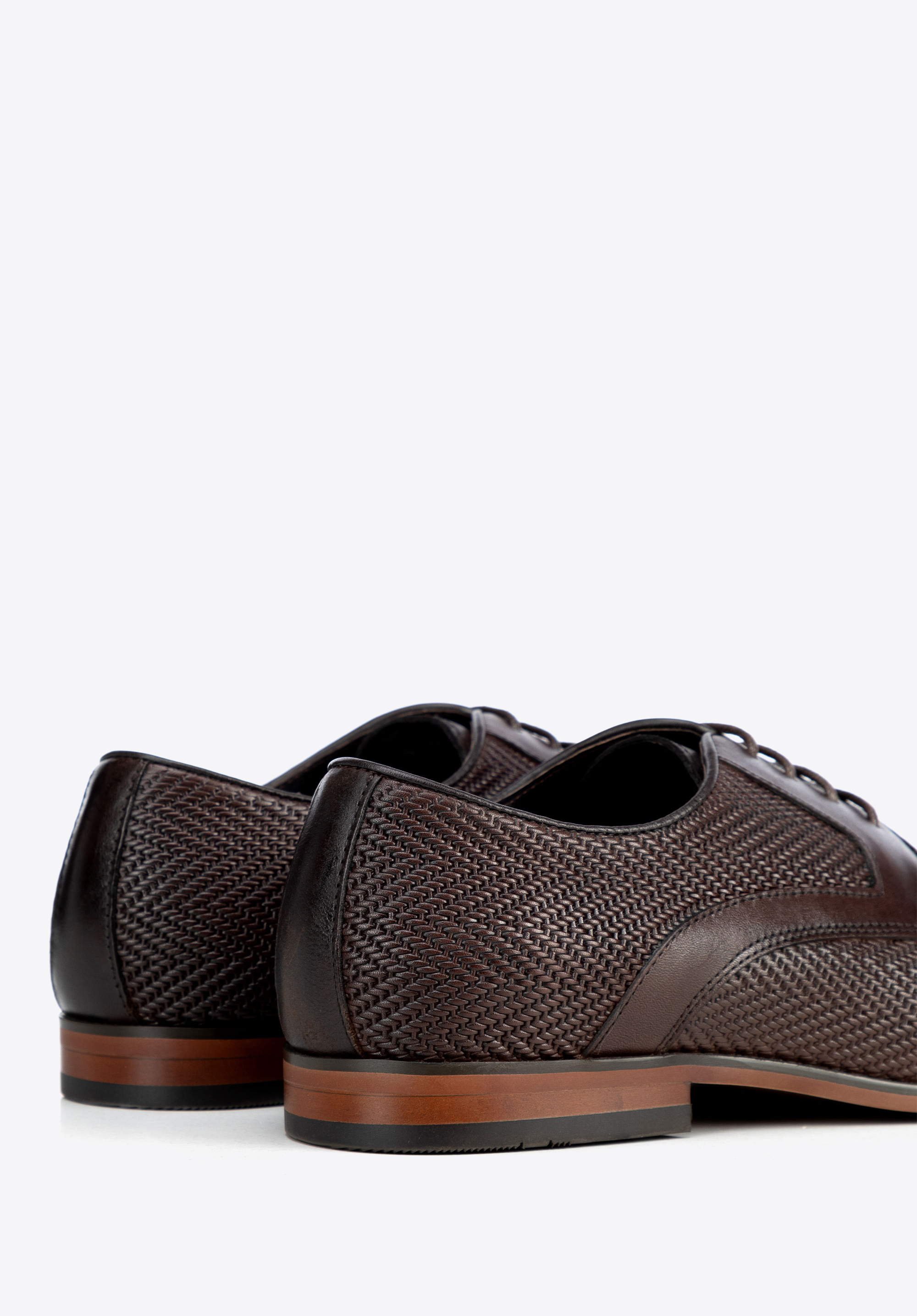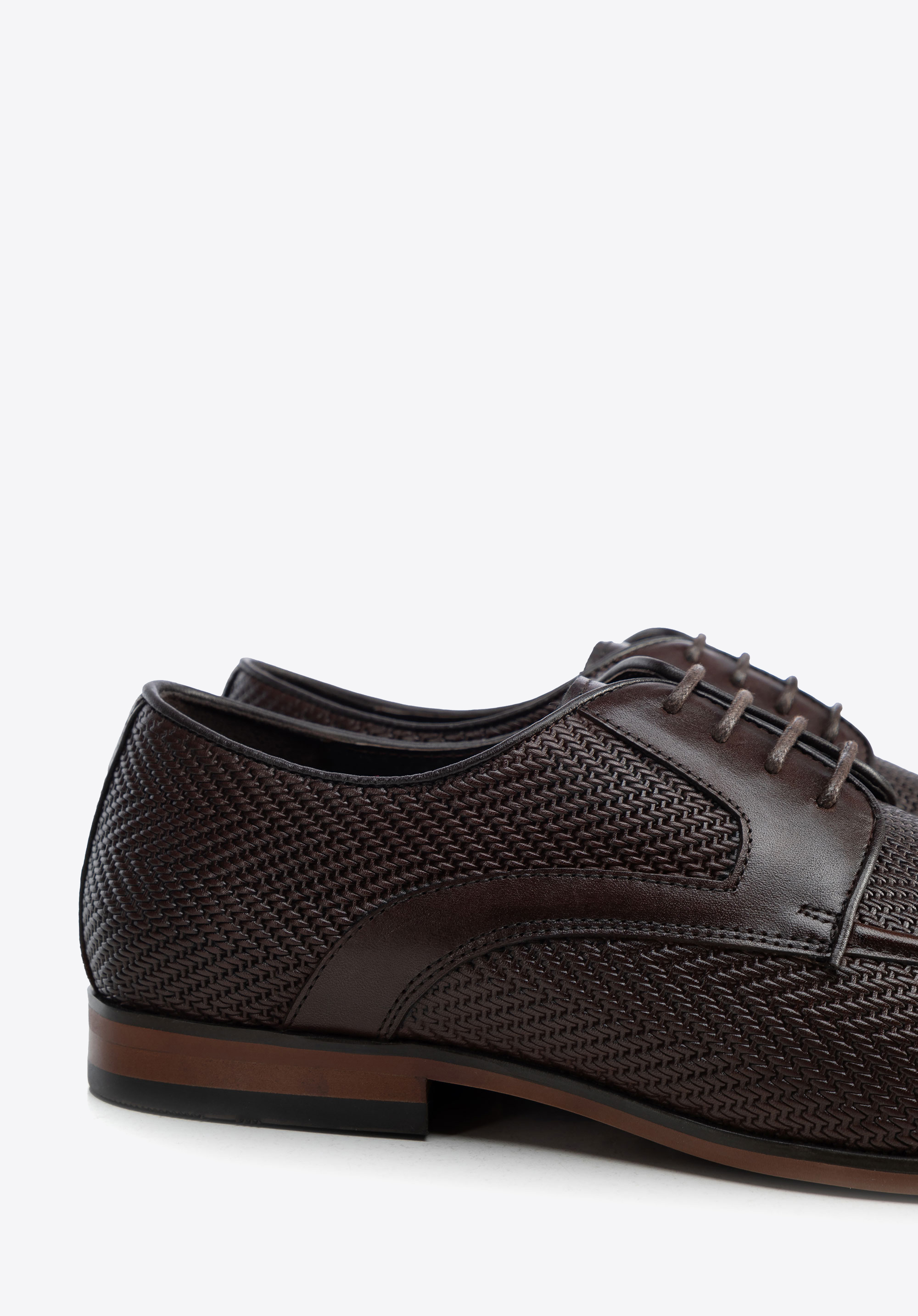 - Pleciony wzór w jodełkę: To akcent, który nadaje butom charakteru i unikalności, wyróżniając je na tle innych modeli.