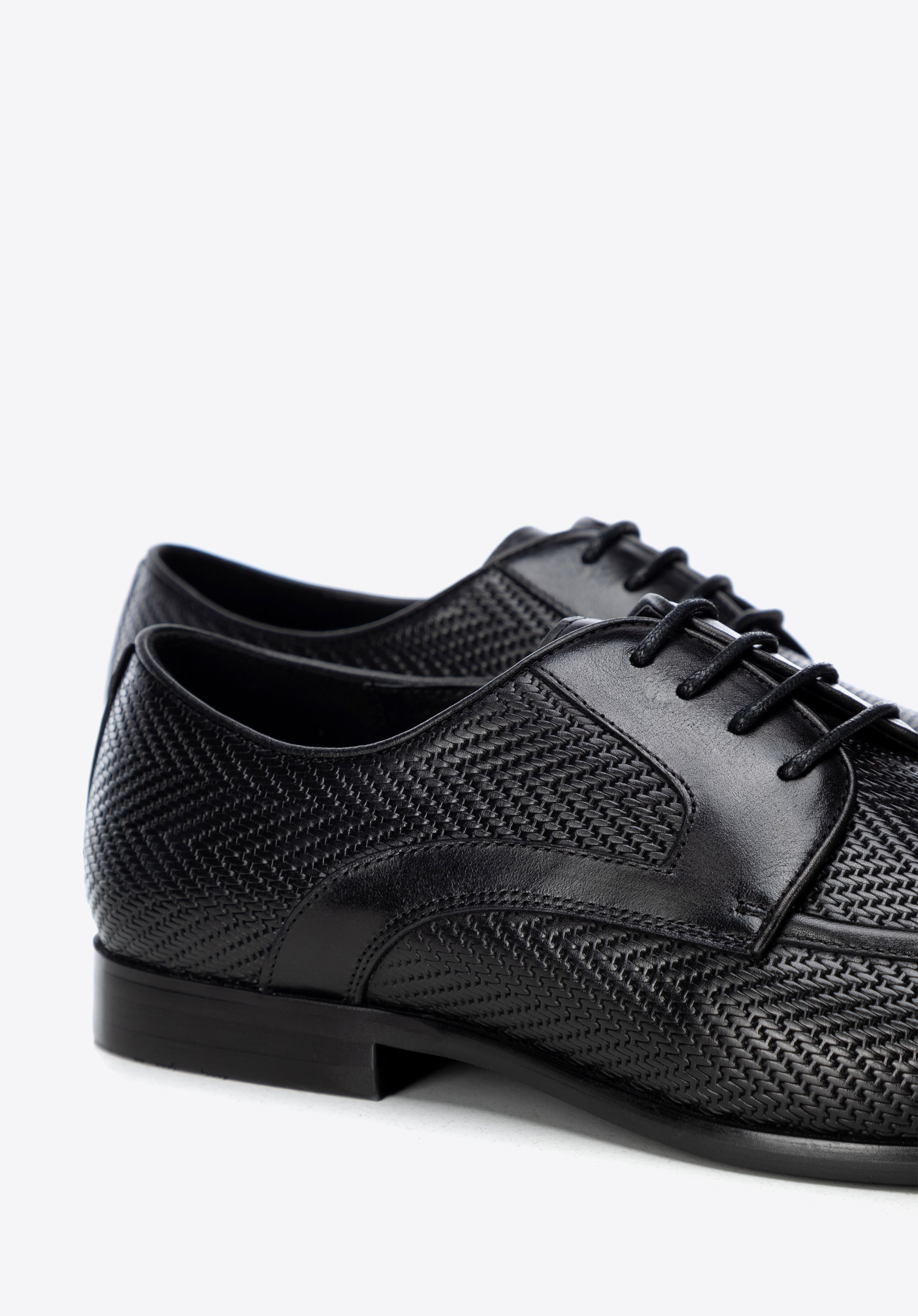 - Pleciony wzór w jodełkę: To akcent, który nadaje butom charakteru i unikalności, wyróżniając je na tle innych modeli.